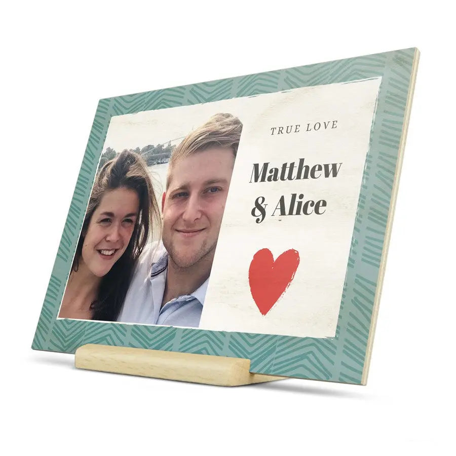 Ahşap üzerine özel olarak tasarlanmış bir Sevgililer Günü kartı. Süper dayanıklı kontrplak üzerine tam renkli baskı, pratik bir stand ile birlikte. Harika bir Sevgililer Günü geçirmenizi dileriz!