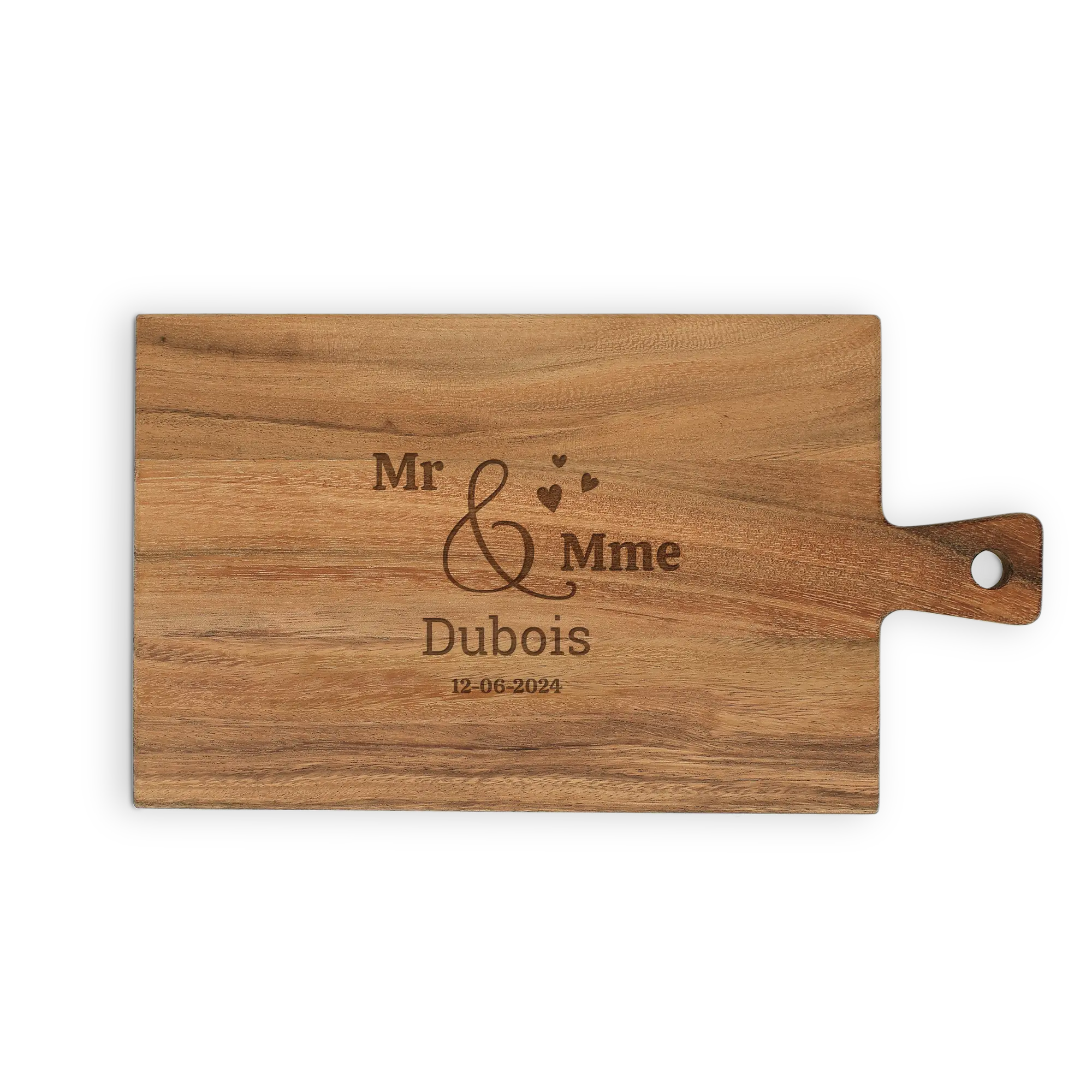 Eşsiz bir teak servis tahtası oluşturun. İsim, metin ve tasarımlarla kişisel bir hediye. Farklı boyutlarda!