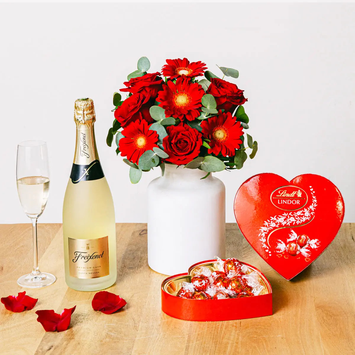 Bu kırmızı güller ve gerberalardan oluşan ışıltılı buket, aşkı ve mutluluğu simgeliyor; her bir çiçek, tutku ve neşenin zamansız bir bağını ifade ediyor. Zengin kırmızı tonlar derin duyguları uyandırırken, neşeli gerberalar eğlenceli bir dokunuş ekleyerek zarafet ve canlı enerjinin mükemmel bir uyumunu yaratıyor. Özel bir etkinlik, doğum günleri, yıldönümleri veya birinin gününü aydınlatmak için olsun, bu buket sıcaklık ve sevgi dolu bir mesaj iletiyor.