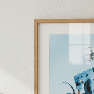 Yumuşak mavi tonlar arasında yürüyen bir kadının nazik bir çizimi, özgürlük ve sessiz bir güven uyandırıyor. Sakin anları takdir eden birine sunulabilecek düşünceli bir sanat eseri.