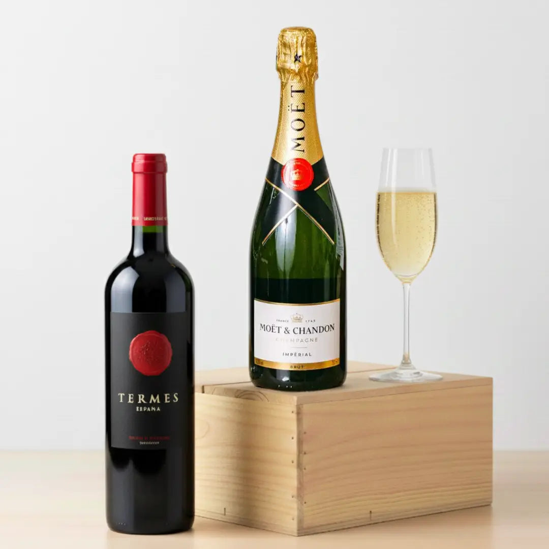 Moët & Chandon Impérial Brut Şampanya, dünya çapında tanınan bir kutlama sembolü, zengin karakteriyle bilinen seçkin bir Termes España Kırmızı Şarap ile eşleştirilmiştir.