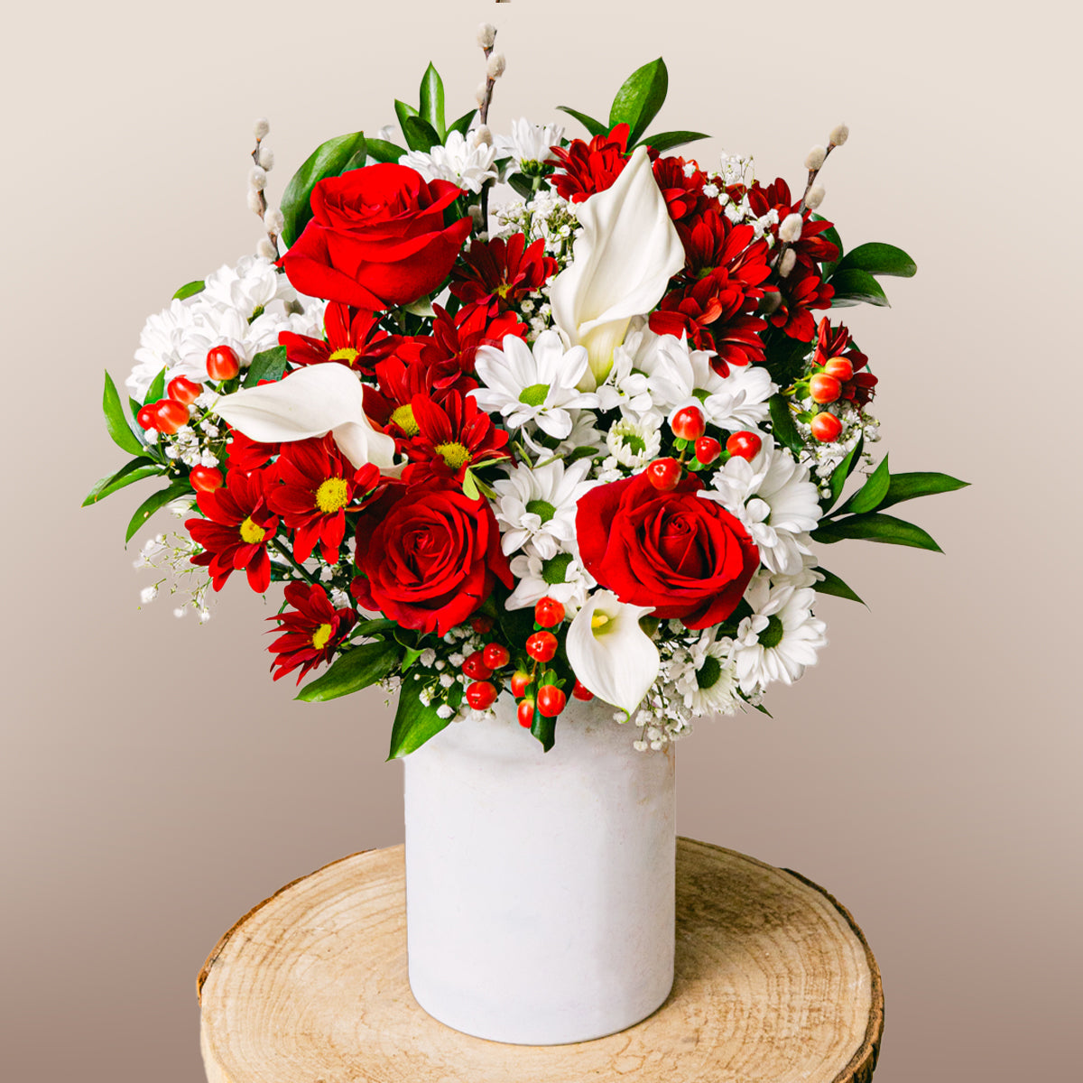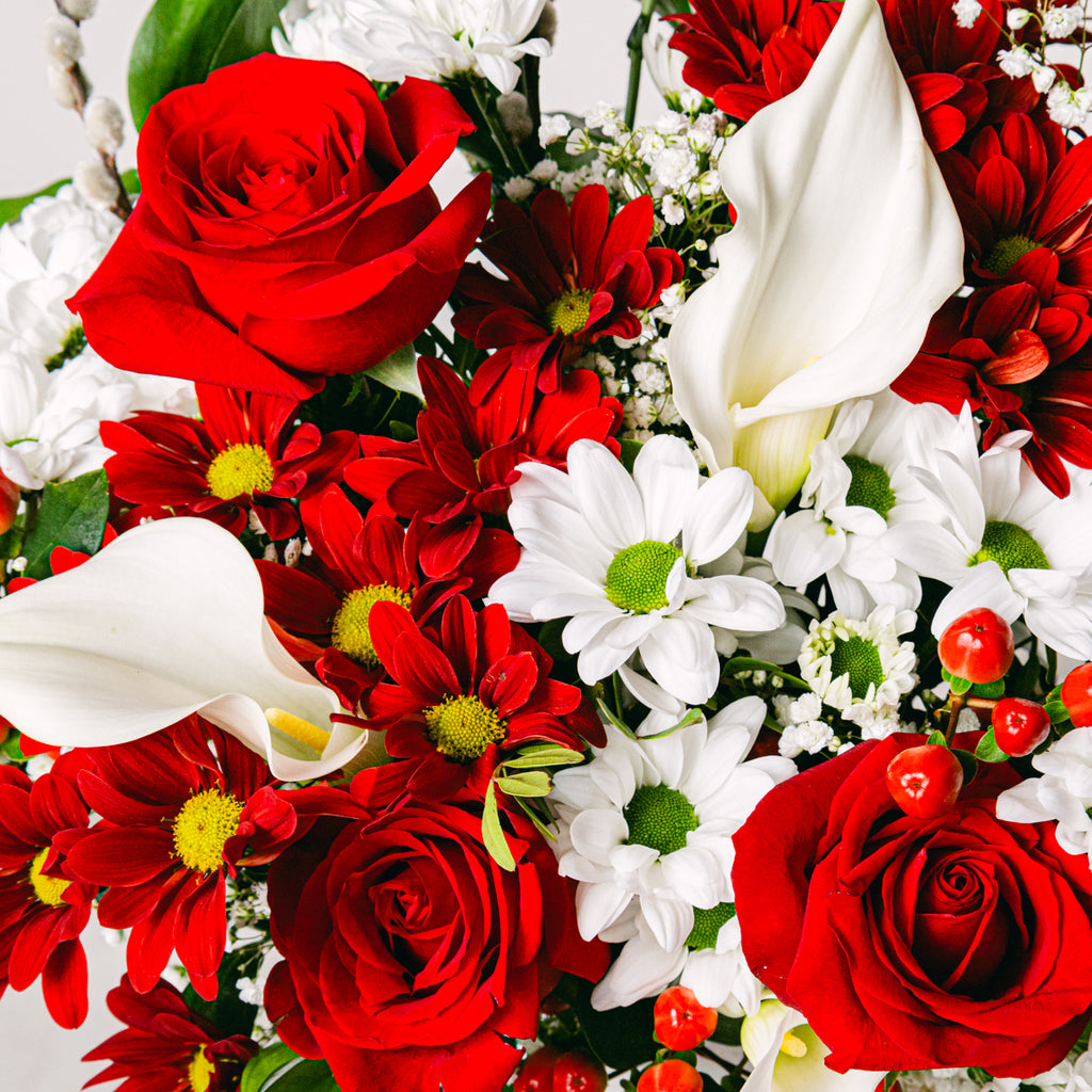 Kırmızı ve beyazın uyumu, denge ve huzurun sembolüdür. Bu buket, alıcısına sevgi dolu ve düşünceli bir mesaj iletir.