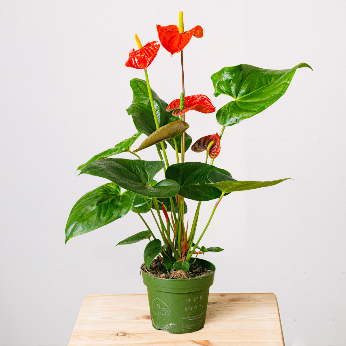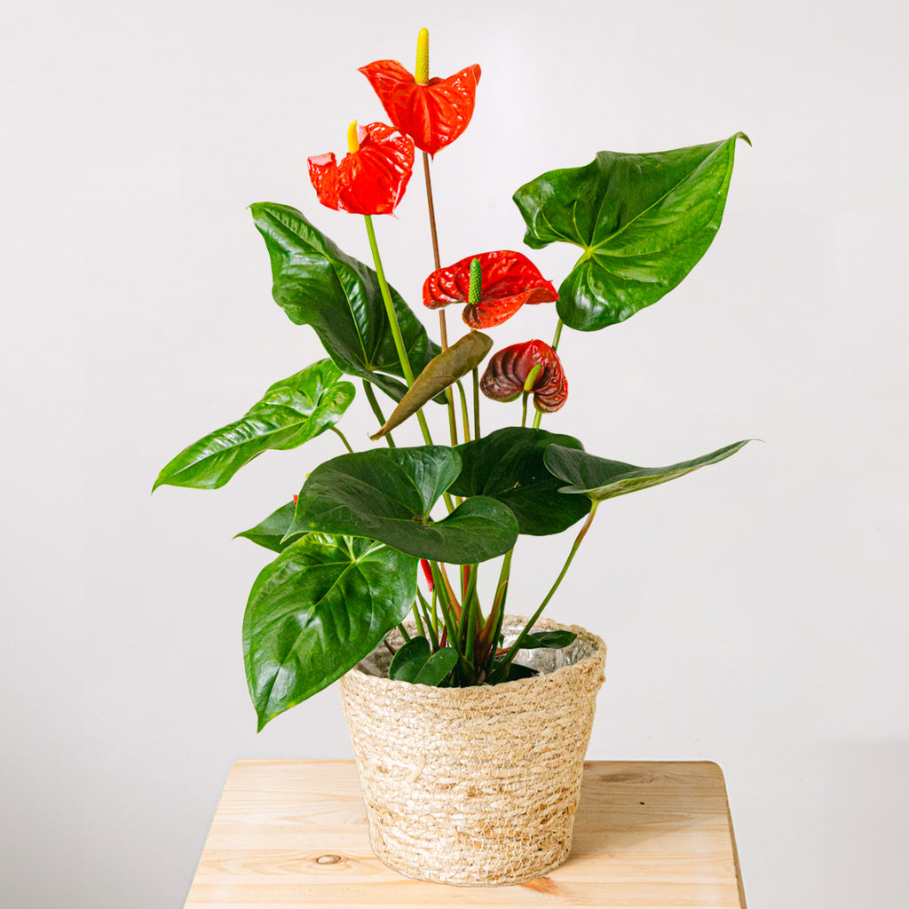 Kalp şeklindeki çiçekleriyle kırmızı anthurium, özel bir günde romantik bir jest için en sevilen bitkilerden biridir. Sağlıklı görünmesi için fazla bakıma ihtiyaç duymayan arındırıcı bir bitkidir.