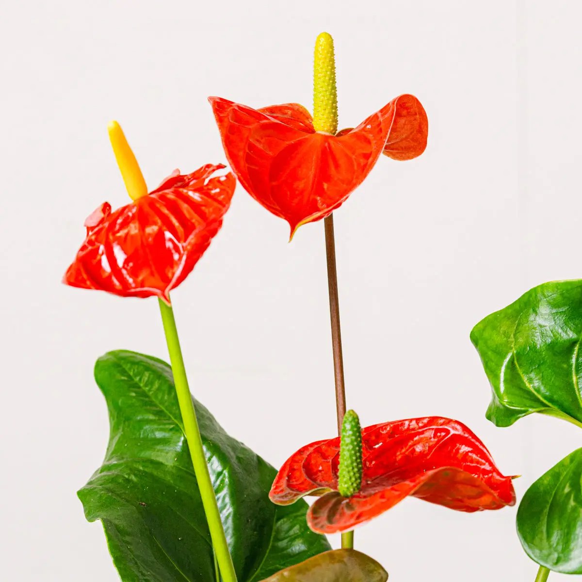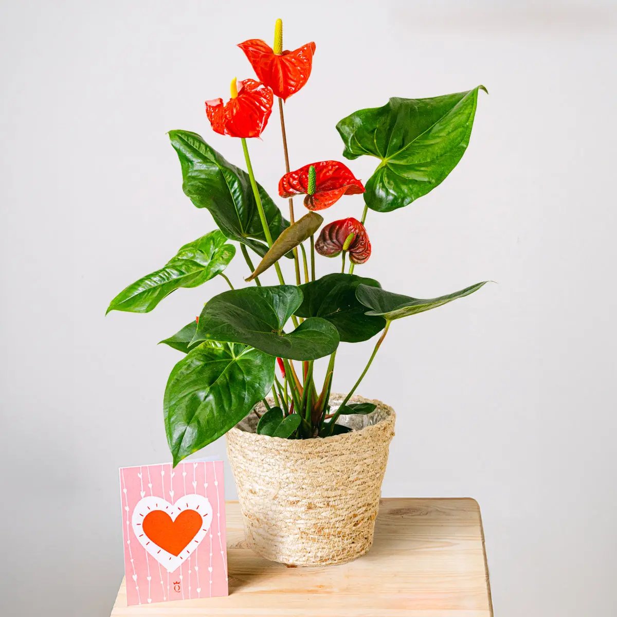 Kalp şeklindeki çiçekleriyle kırmızı anthurium, özel bir günde romantik bir jest için en sevilen bitkilerden biridir. Sağlıklı görünmesi için fazla bakıma ihtiyaç duymayan arındırıcı bir bitkidir.