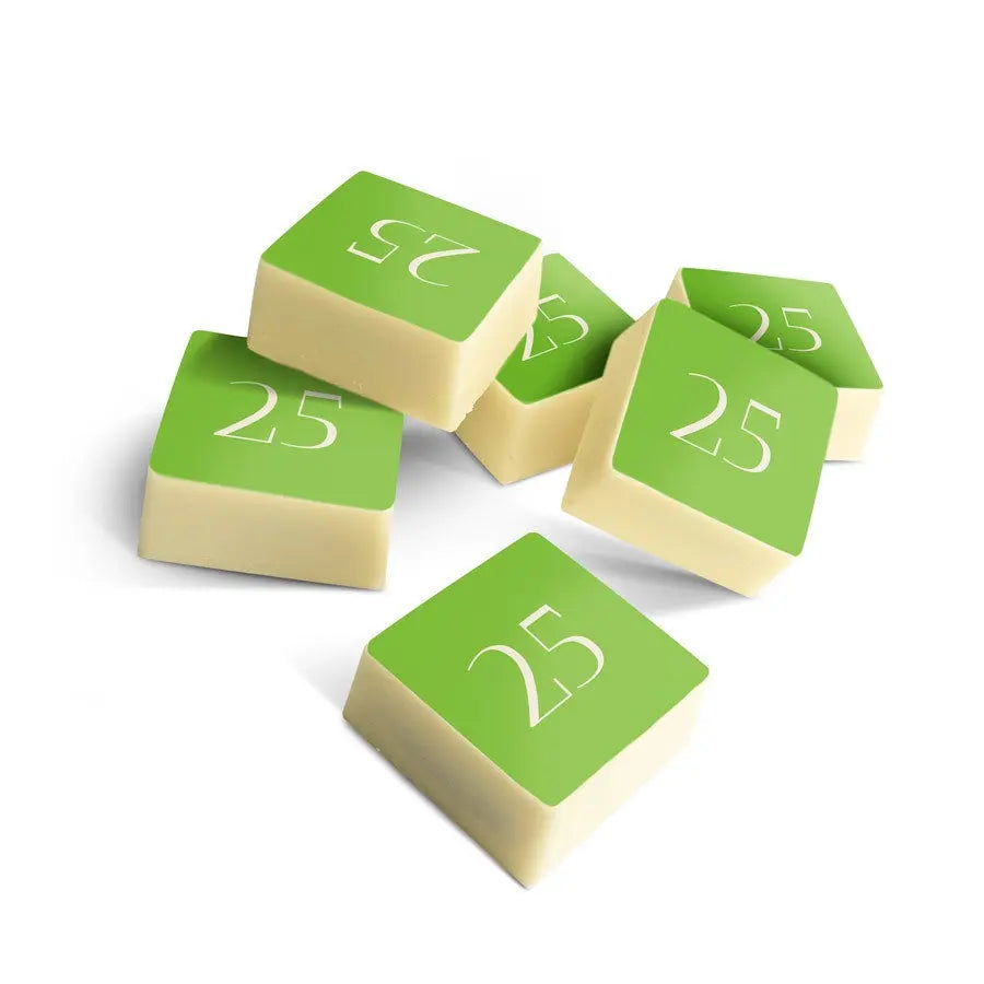 Kişiye özel çikolata pralini hakkında daha fazla bilgi: Miktar: 12, 24 veya 48 çikolata seti Boyut: her çikolata için 2,6 x 2,6 x 1,2 cm, çikolata başına hafif farklılık gösterebilir Çikolata: üstünde beyaz çikolata katmanı olan sütlü çikolata Şekil: kare İçerik: praline Kişiselleştirme: fotoğraf veya logo ile basılı Baskı: yenilebilir tam renkli baskı Dış sıcaklık 25 derece Celsius veya daha yüksek olduğunda çikolatanın kalitesini garanti edemeyeceğiz. Önemli: Her bir çikolata için farklı fotoğraflar kullanmak mümkün değildir. Saklama önerisi: 14-18°C arasında serin, karanlık bir yerde 10 haftaya kadar saklanabilir. Alerji bilgisi: soya, süt içerir ve fındık ile gluten izleri içerebilir. İçindekiler: Fındık dolgulu çikolata pralini ve yenilebilir baskı: şeker, fındık, kakao kitlesi, kakao yağı, tam yağlı süt tozu, emülgatör (soya lesitini), doğal vanilya aroması. Yenilebilir baskı: mısır nişastası, modifiye nişasta: E1422, patates nişastası, su, toz tavuk proteini, yağsız süt tozu, zeytinyağı, tuz, nem tutucu E422, emülgatör: E433, renklendirici: E102, E110, E122: çocuklarda aktivite veya konsantrasyonu olumsuz etkileyebilir, E133, E151 Kaplama: E904