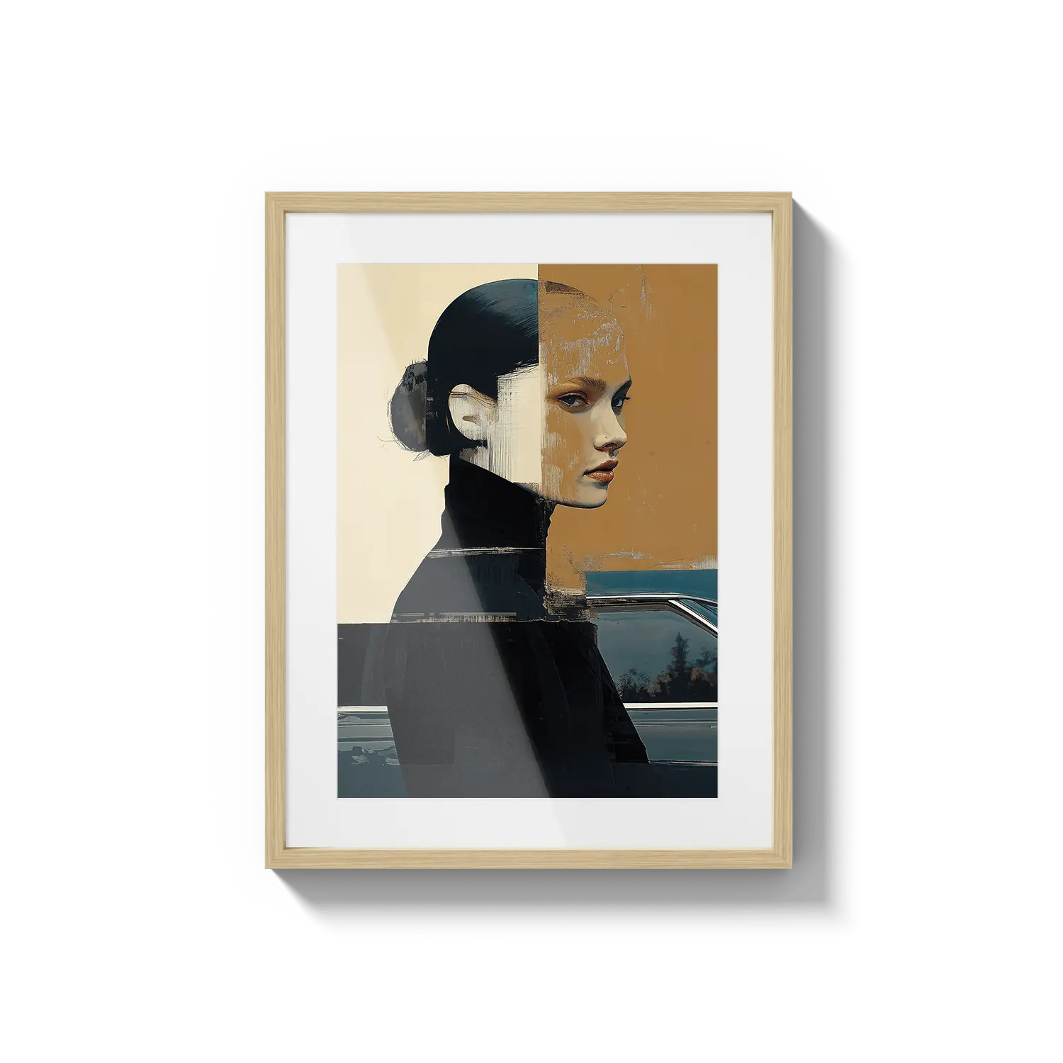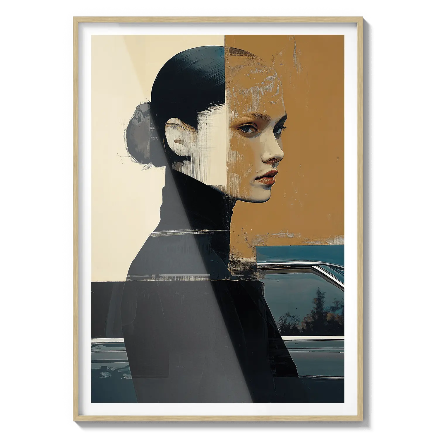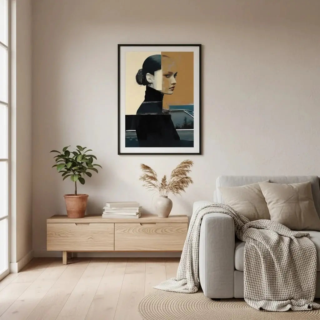 Cesur şekiller ve pastel tonlarla iç gözlemi ve sessiz gücü yansıtan modern bir portre. Sofistike ve anlamlı bir hediye.