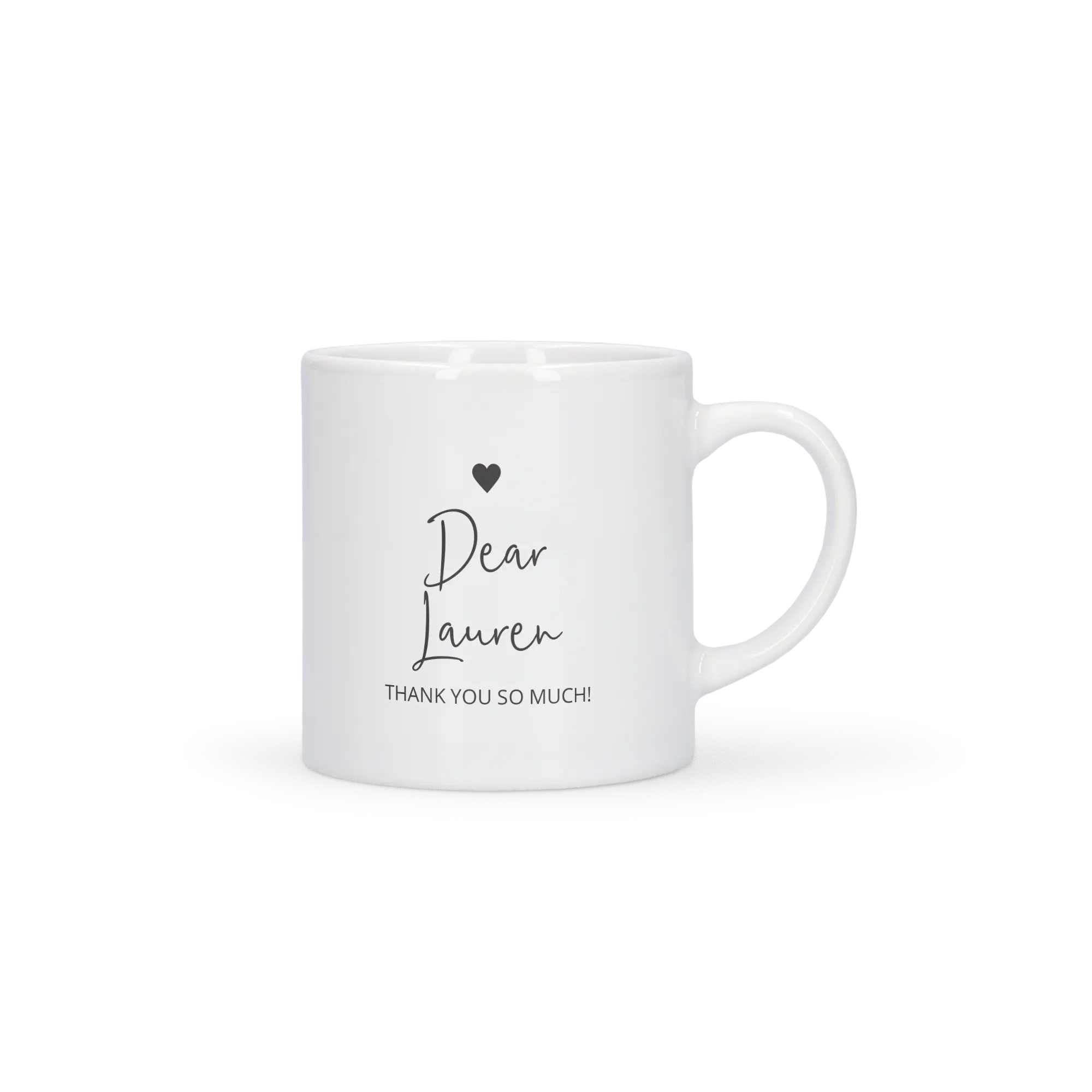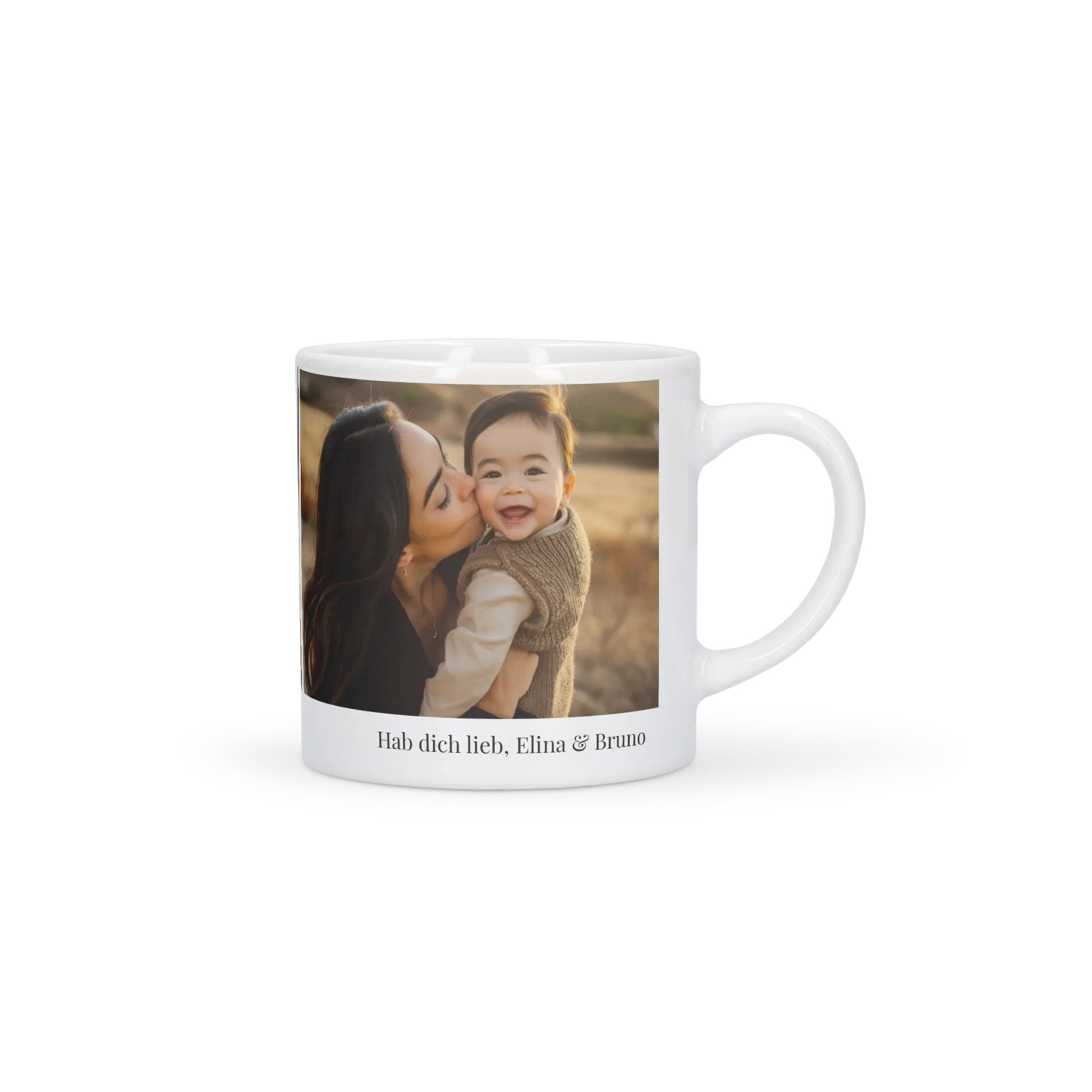 Kendi seçtiğiniz fotoğraf veya logo ile baskılı küçük bir kahve fincanı edinin. Minimum sipariş miktarı yok. Yüksek kaliteli seramik. %100 bulaşık makinesinde yıkanabilir.