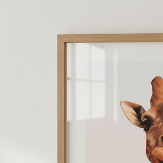 Sıcak tonlarda resmedilmiş nazik bir zürafa, yumuşak bir neşe ve nezaket hissi veriyor. Sevgi paylaşmak için keyifli bir sanat eseri.