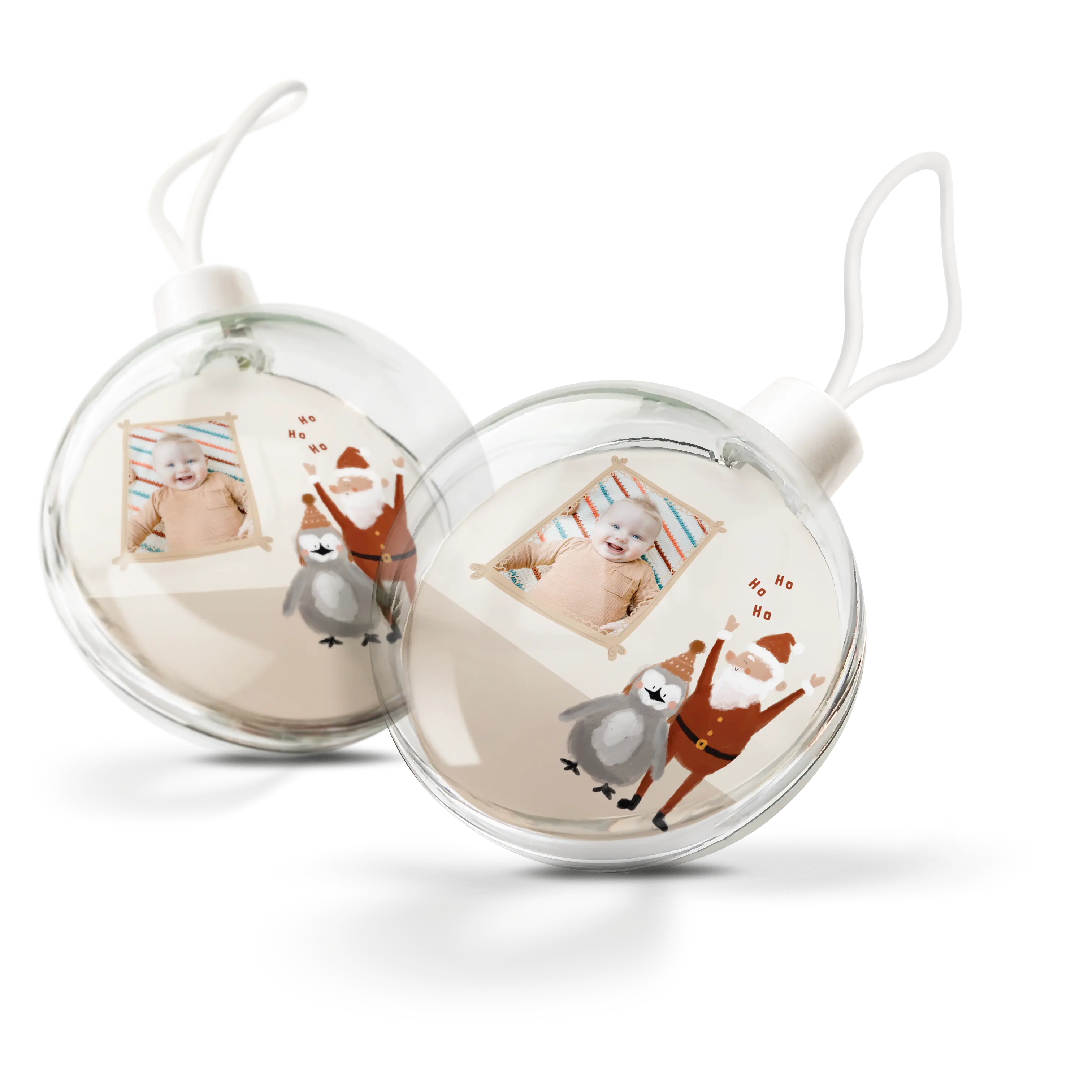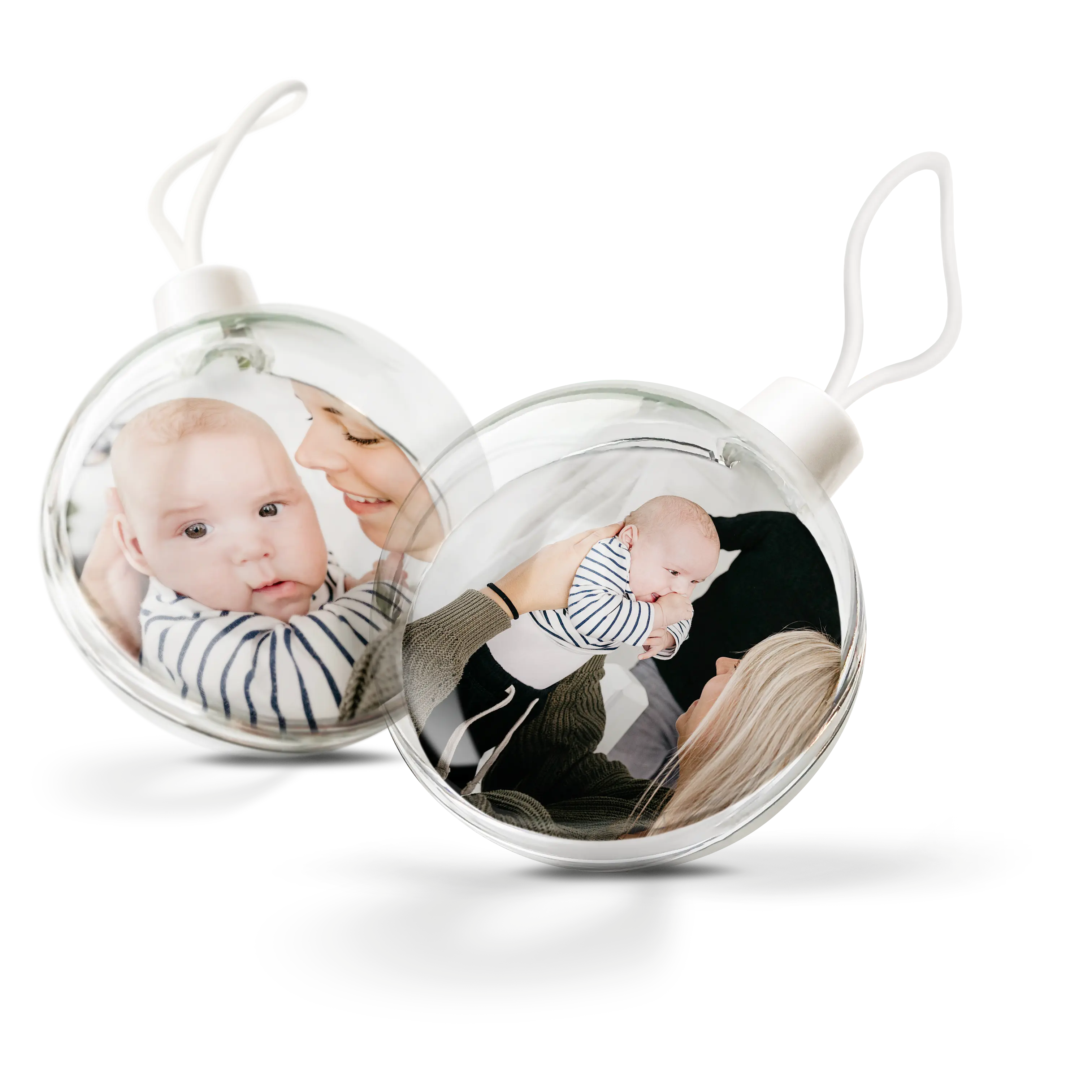 Şeffaf Noel süsleri hakkında daha fazla bilgi:Adet: 2'li setBoyut: Ø 8 cm Malzeme: yüksek kaliteli plastikRenk: şeffafKişiselleştirme: fotoğraf ve/veya metin ile Baskı: mükemmel görüntü ve tam renkPozisyon: süslemenin içinde çift taraflıHer süs, bireysel olarak kişiselleştirilebilir.