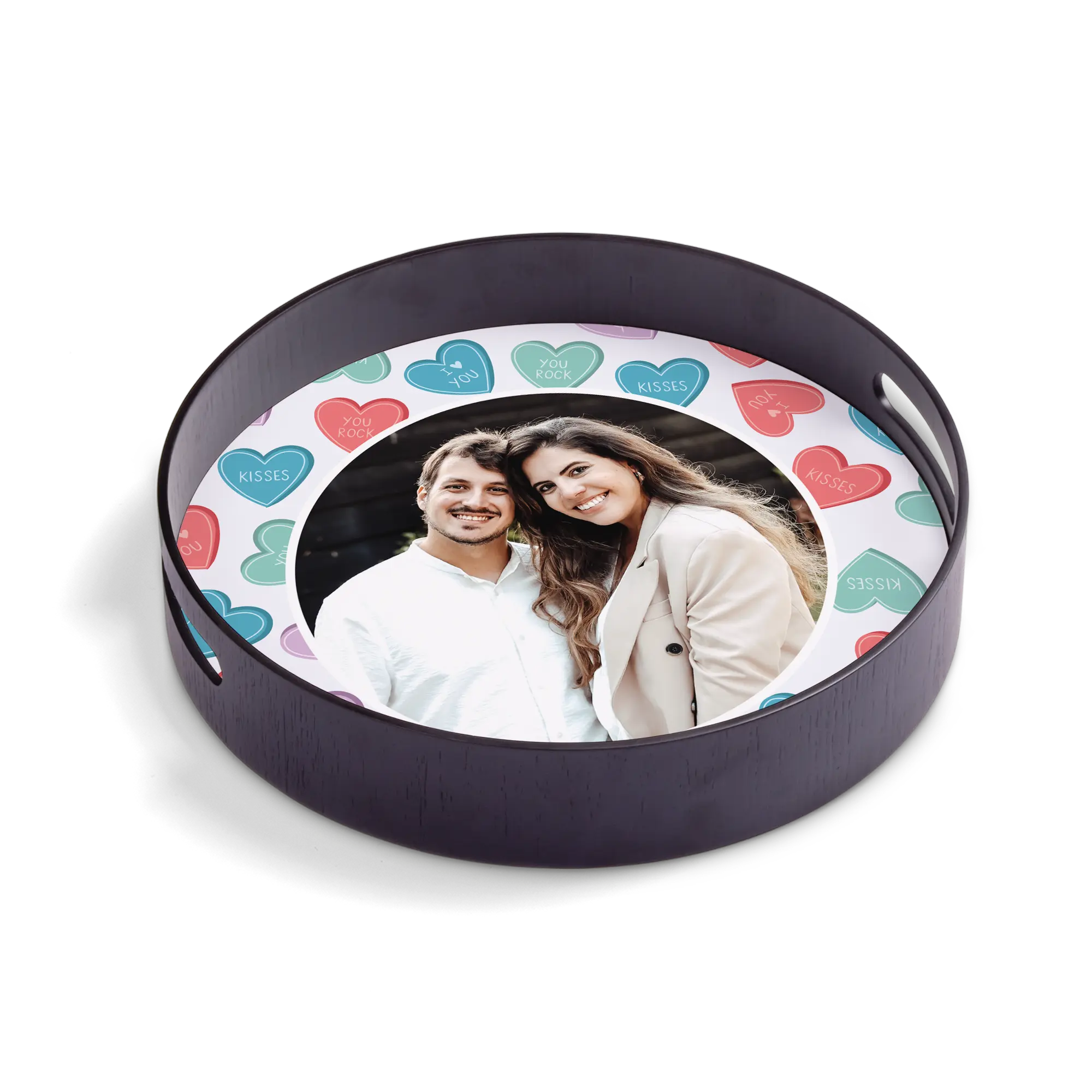 Kişiselleştirilmiş servis tepsisi hakkında daha fazla bilgi:Şekil: yuvarlakRenk: siyahMalzeme: lüks ahşap çerçeve (çam ağacı) ile yüksek kaliteli hardboard tabanSonuç: parlakBoyutlar: 30 x 30 x 5 cmKişiselleştirme: fotoğraf, isim, logo veya kolaj ileBaskı: mükemmel görüntü ve tam renkli