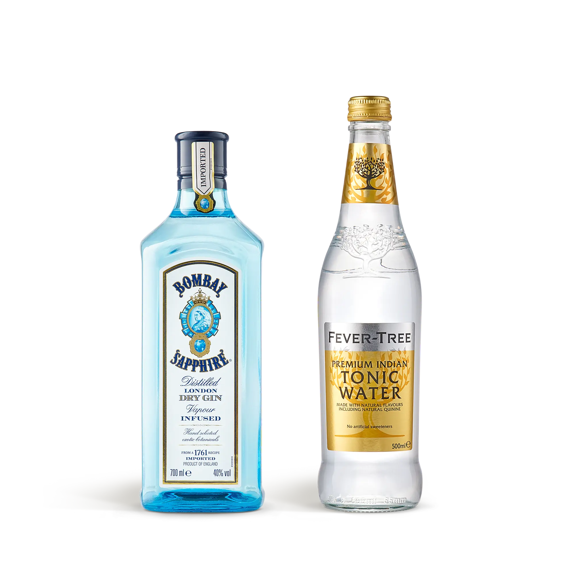 Tamamlayıcılar: Bombay Sapphire Londra Kuru Raki (700ml), Fever-Tree Premium Hindistan Tonic Su (500ml), özel fotoğraf basımı ile şık ahşap kutu.
