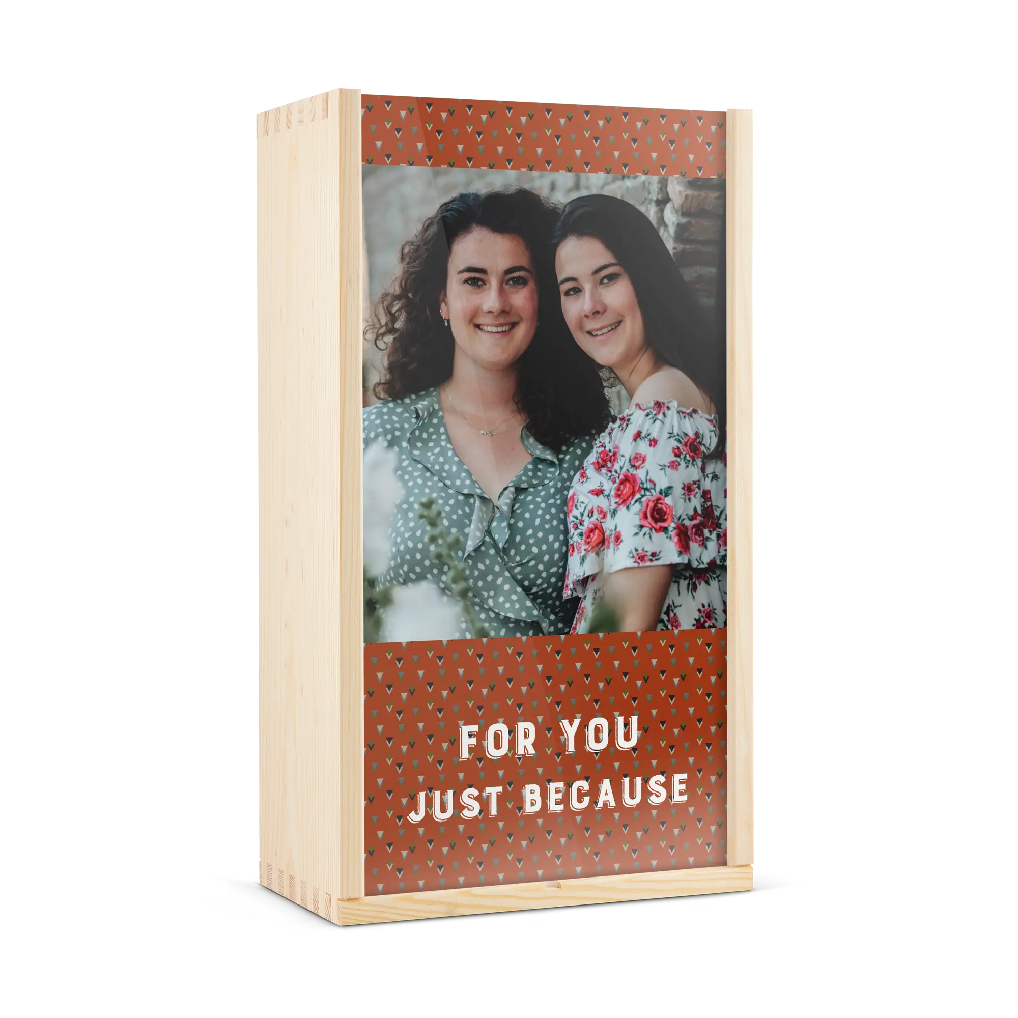 Kişiselleştirme hakkında daha fazla bilgi: Kişiselleştirme: lüks kutuda Baskı: kapağa kristal netliğinde HD fotoğraf kalitesinde baskı Kutu boyutları: 36.5 x 20.6 x 11 cm Kapağın boyutları: 35.6 x 18.9 x 0.3 cm Ekstra: FSC sertifikalı ahşap kutu Cin hakkında daha fazla bilgi: İsim: Bombay Sapphire Ülke: İngiltere Karakter: karmaşık bir karaktere sahip yumuşak bir gin. Hafif meyvemsi tat ve güçlü aromalar Tonik hakkında daha fazla bilgi: İsim: Fever Tree Indian Tonic Water İçerik: 500 ml Bu tonik, yapay tatlandırıcılar, koruyucular veya aroma içermez.