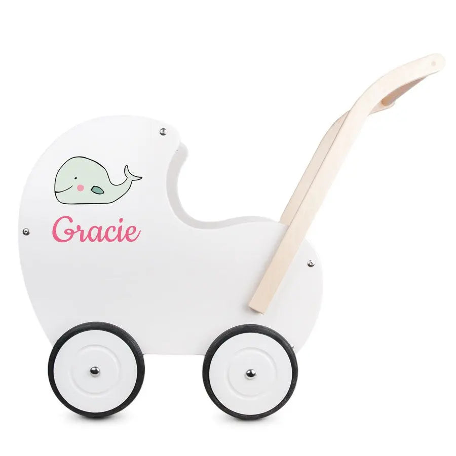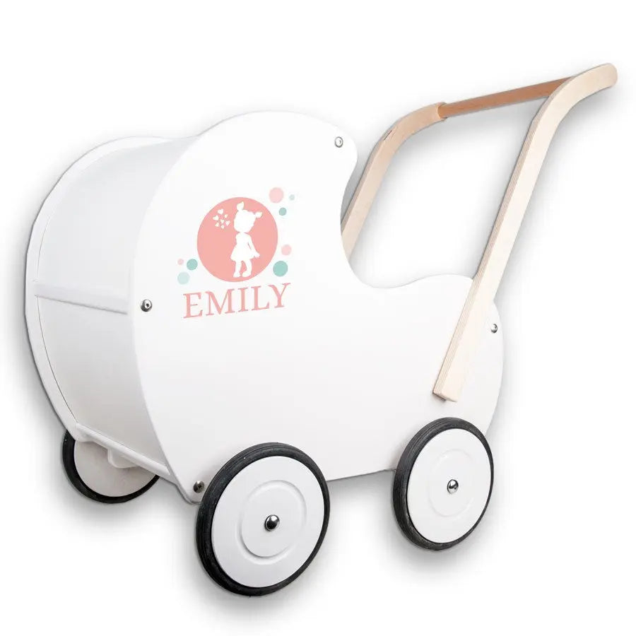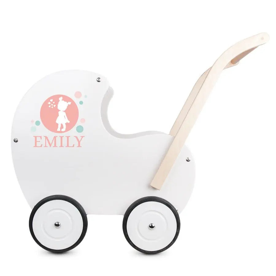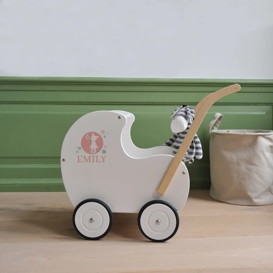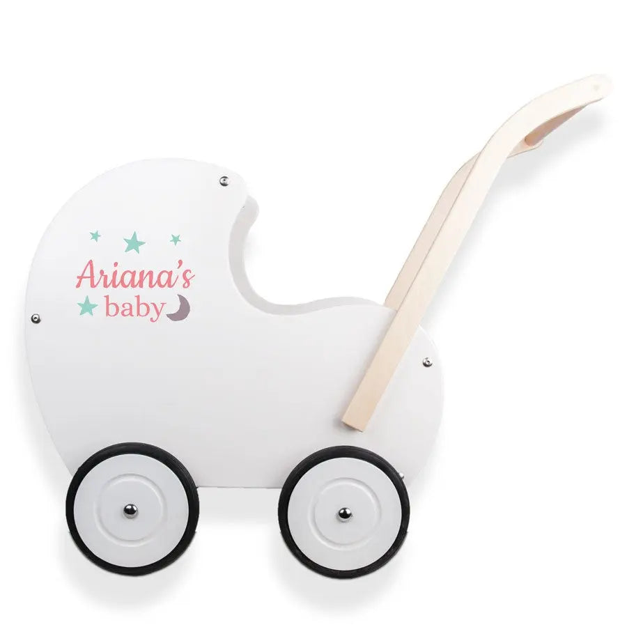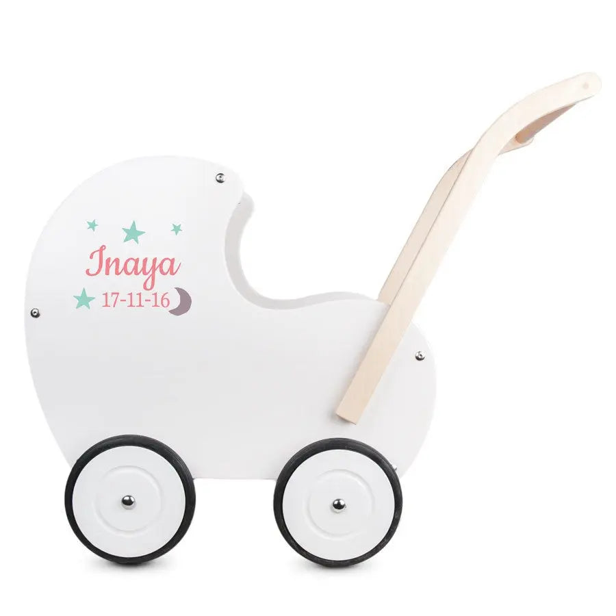 Kişiselleştirilmiş Ahşap Bebek Arabası, yeni bir bebeği veya özel bir çocuğa kutlamak için sevimli ve benzersiz bir hediye.