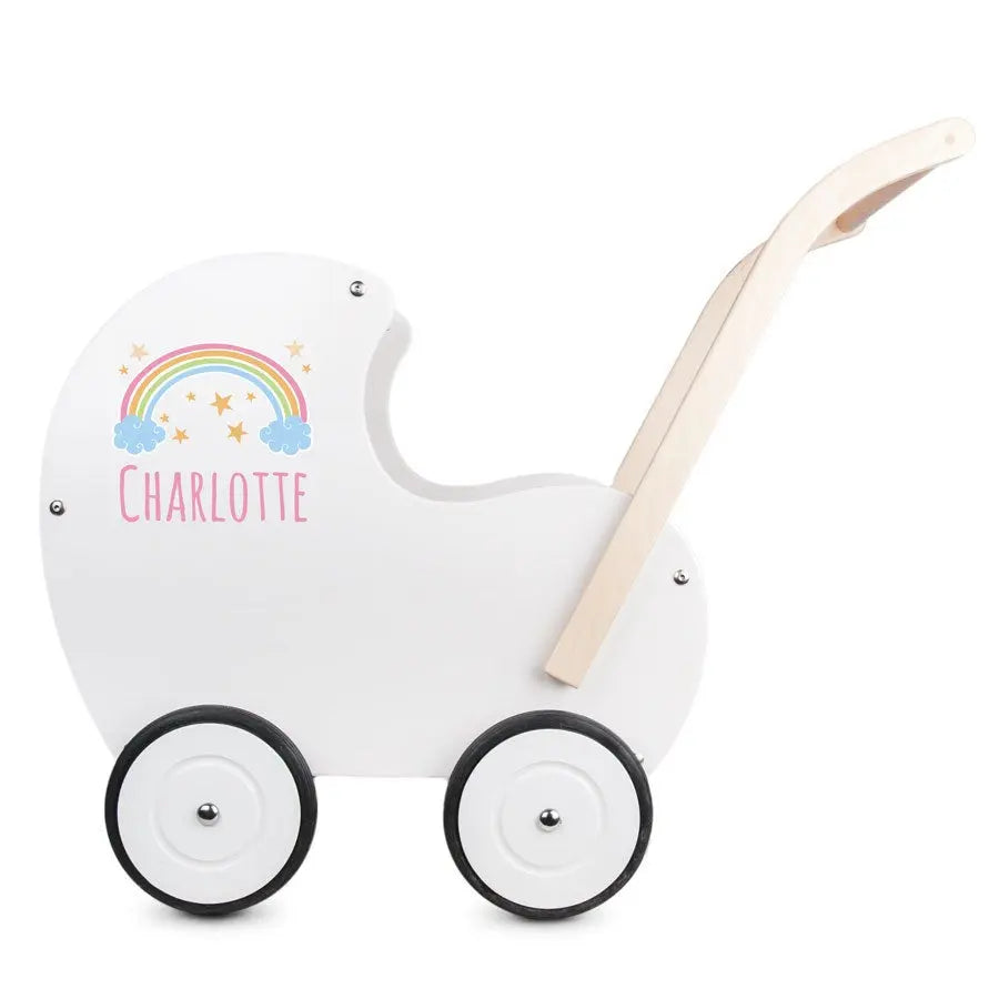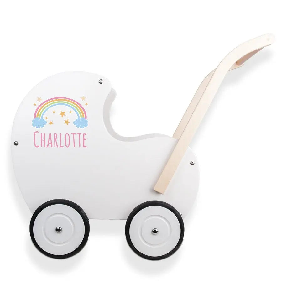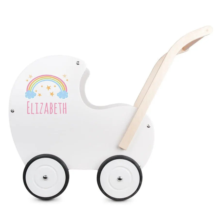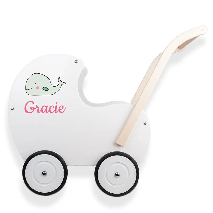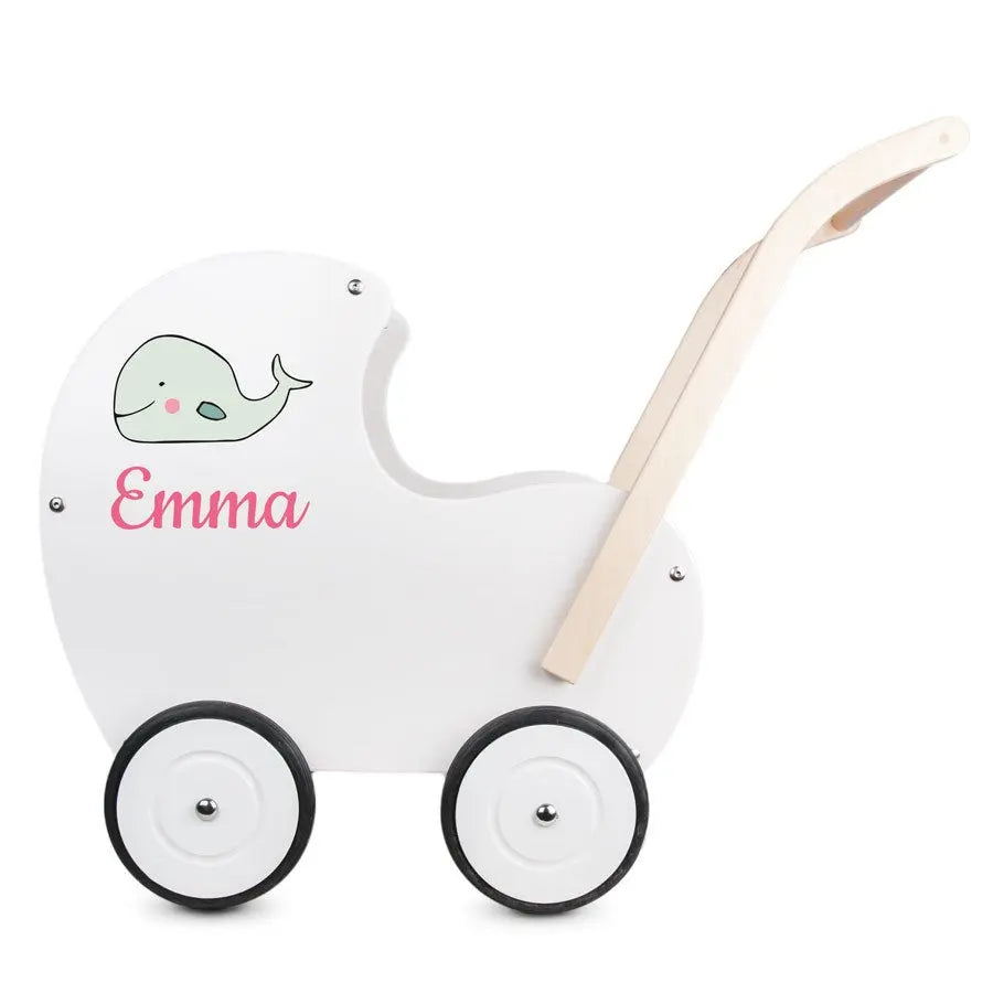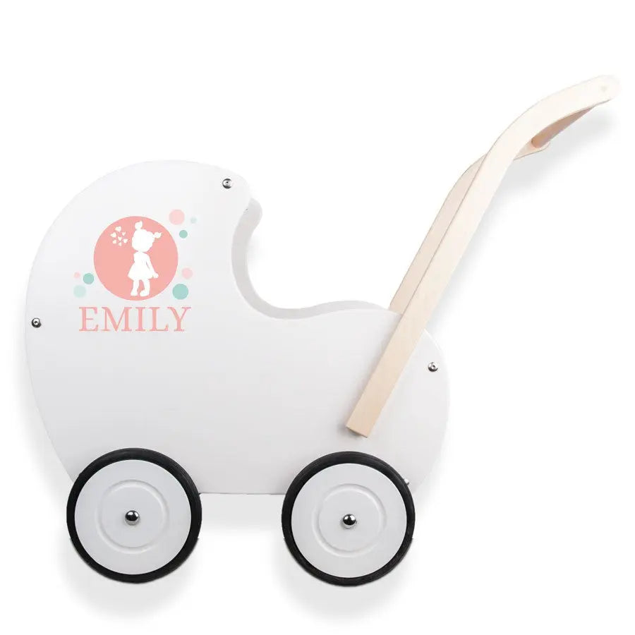 Kişiselleştirilmiş Ahşap Bebek Arabası, yeni bir bebeği veya özel bir çocuğa kutlamak için sevimli ve benzersiz bir hediye.
