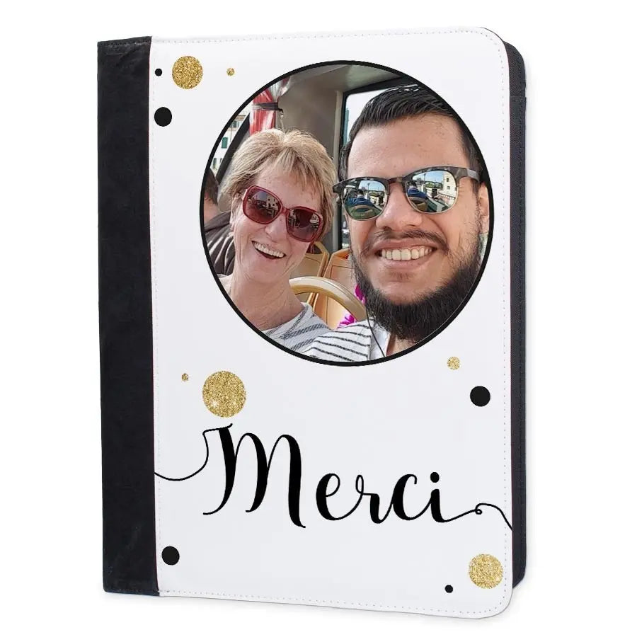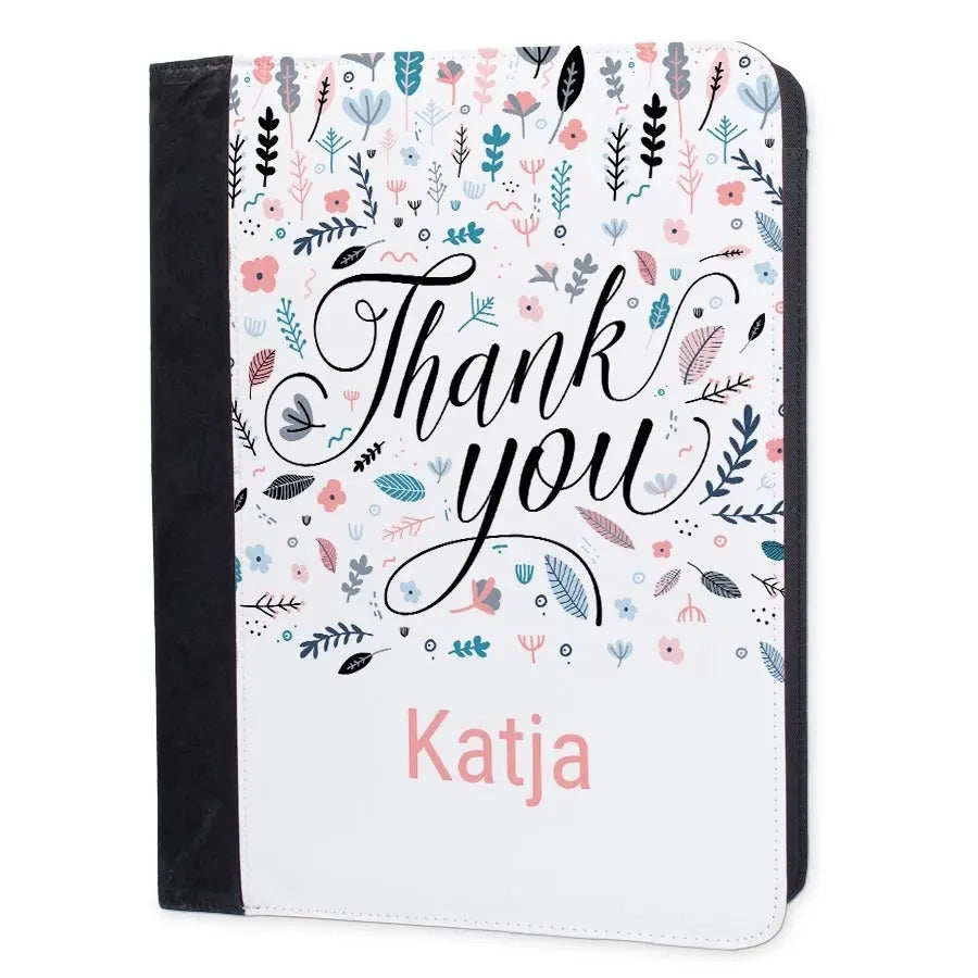 Yazılı klasör hakkında daha fazla bilgi: Renk: siyah Malzeme: yumuşak süet görünümü Boyutlar: 25 x 32,5 cm Kişiselleştirme: isim, fotoğraf ve/veya logo Baskı: keskin ve tam renkli Ekstralar: kalem halkası, iç cep ve A4 not defteri Yazı klasörü yeniden doldurulabilir, böylece yıllarca kullanabilirsiniz!