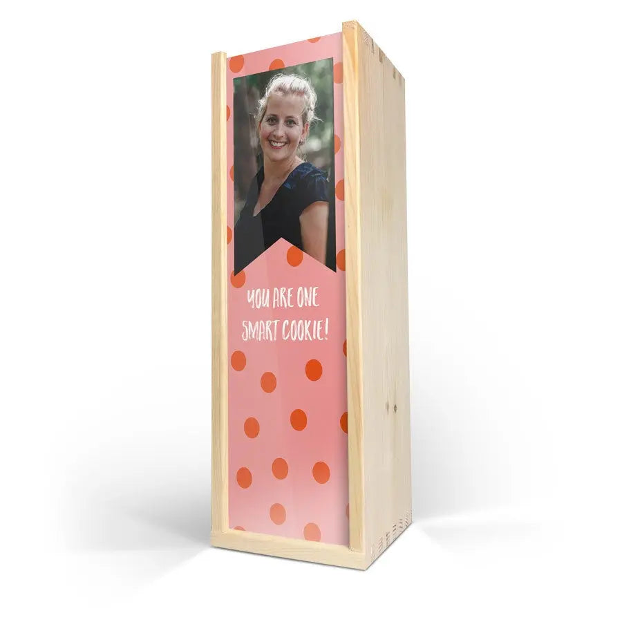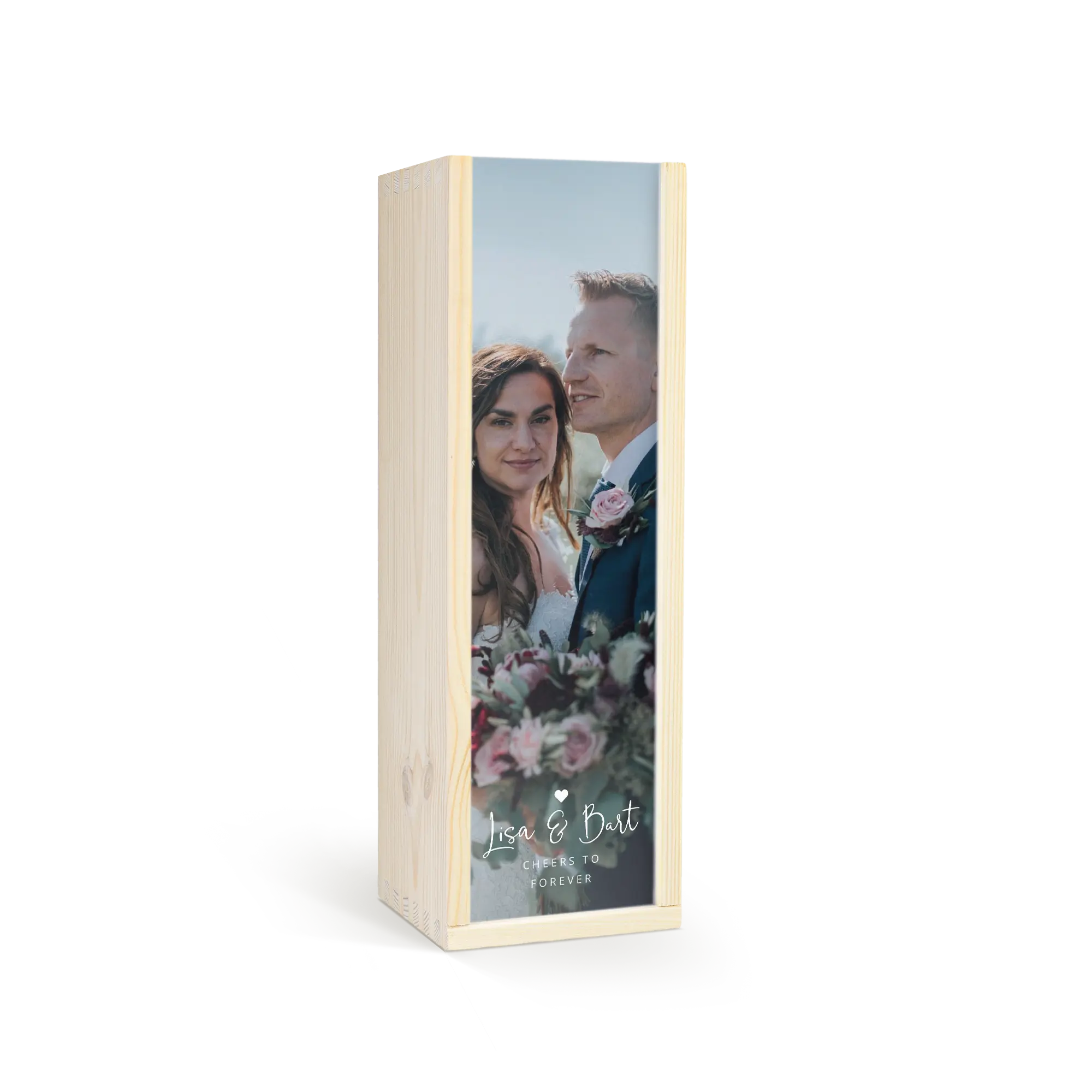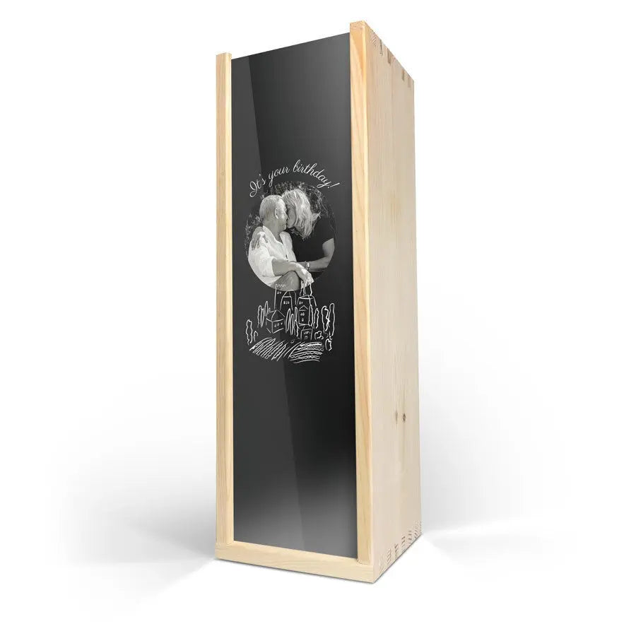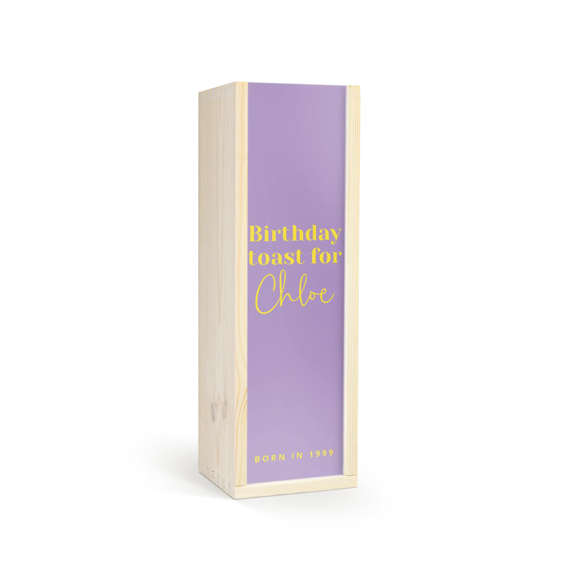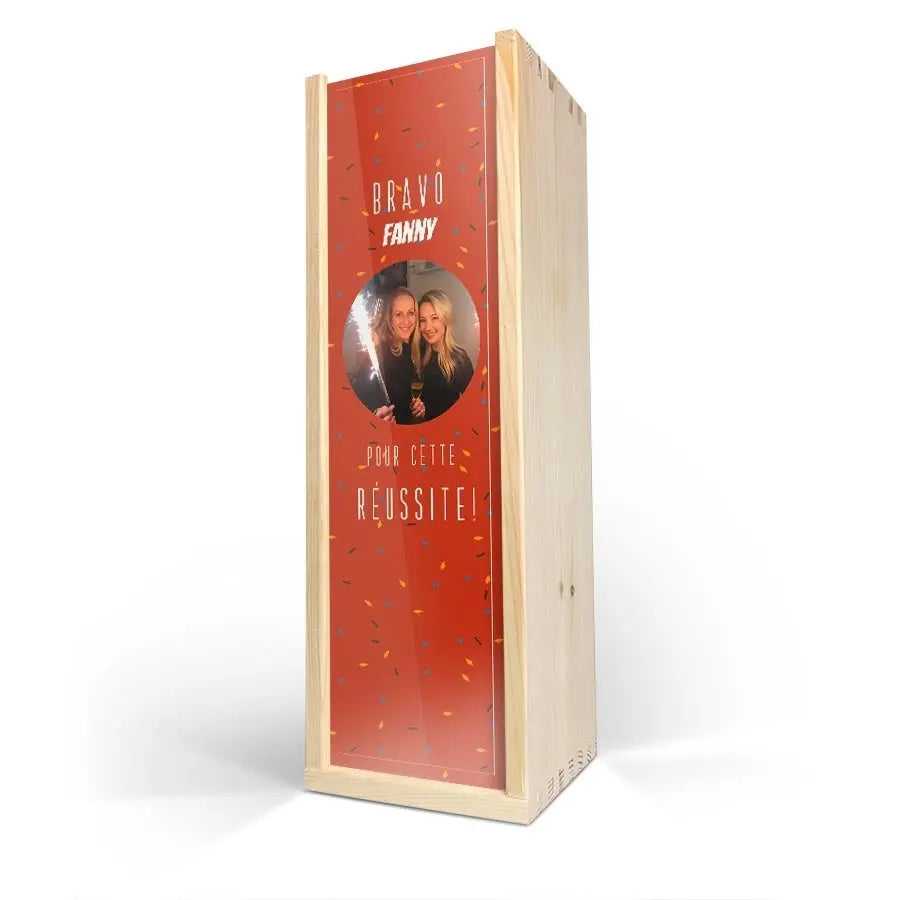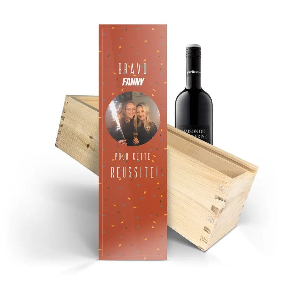Lezzetli Maison de la Surprise şarabı, seçtiğiniz fotoğraf, logo ve/veya metin ile kişiselleştirilmiş lüks ahşap kutuda. Şimdi kendi tasarımınızı oluşturun!