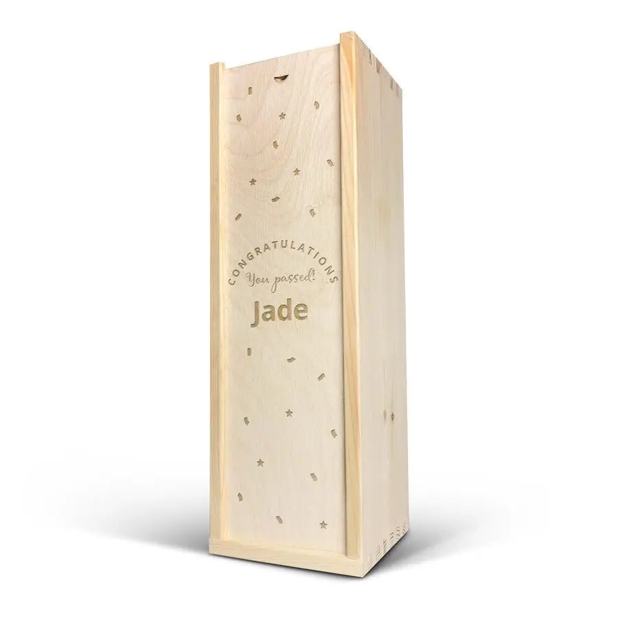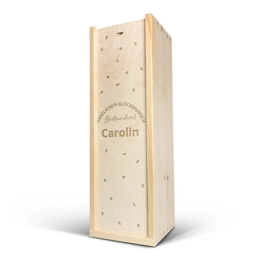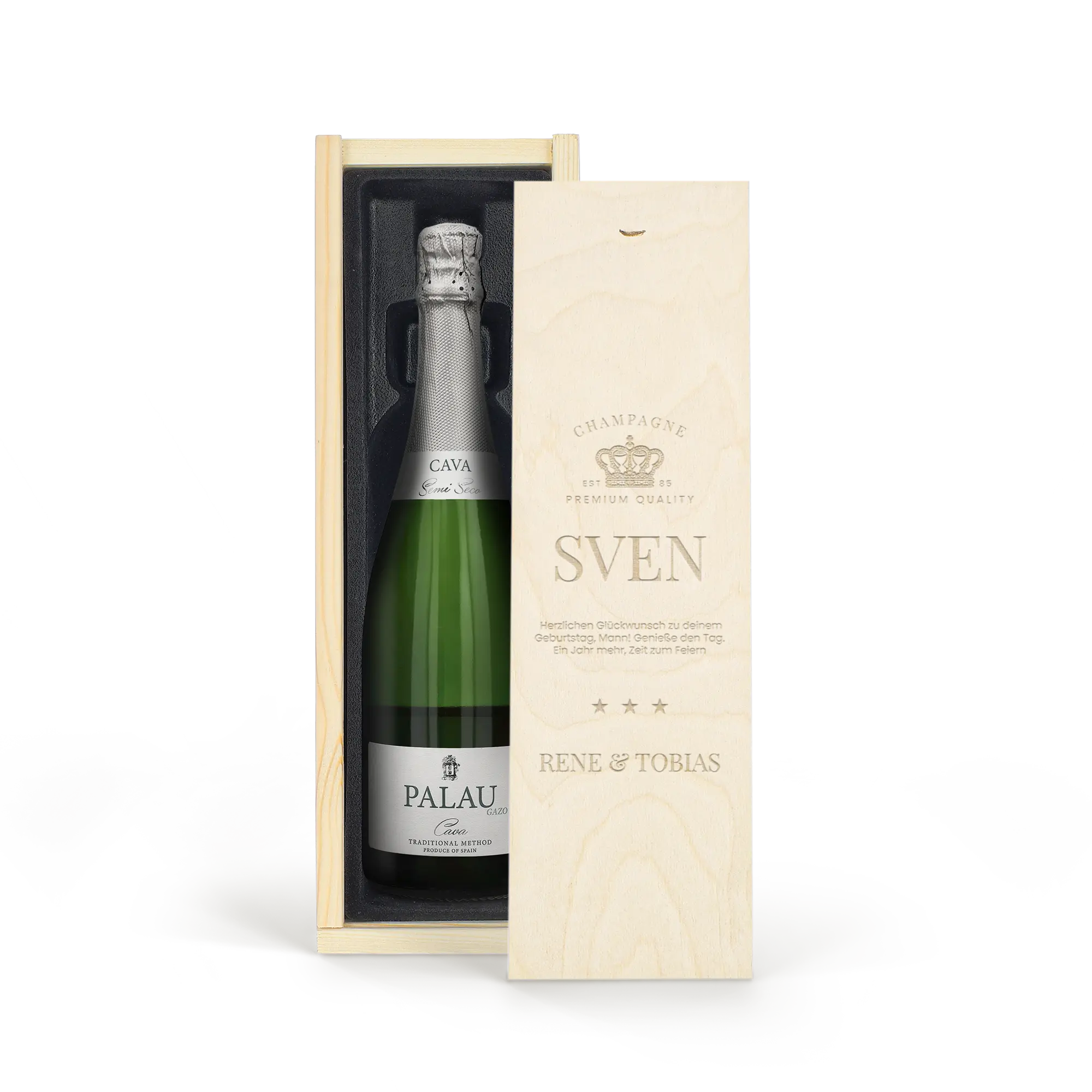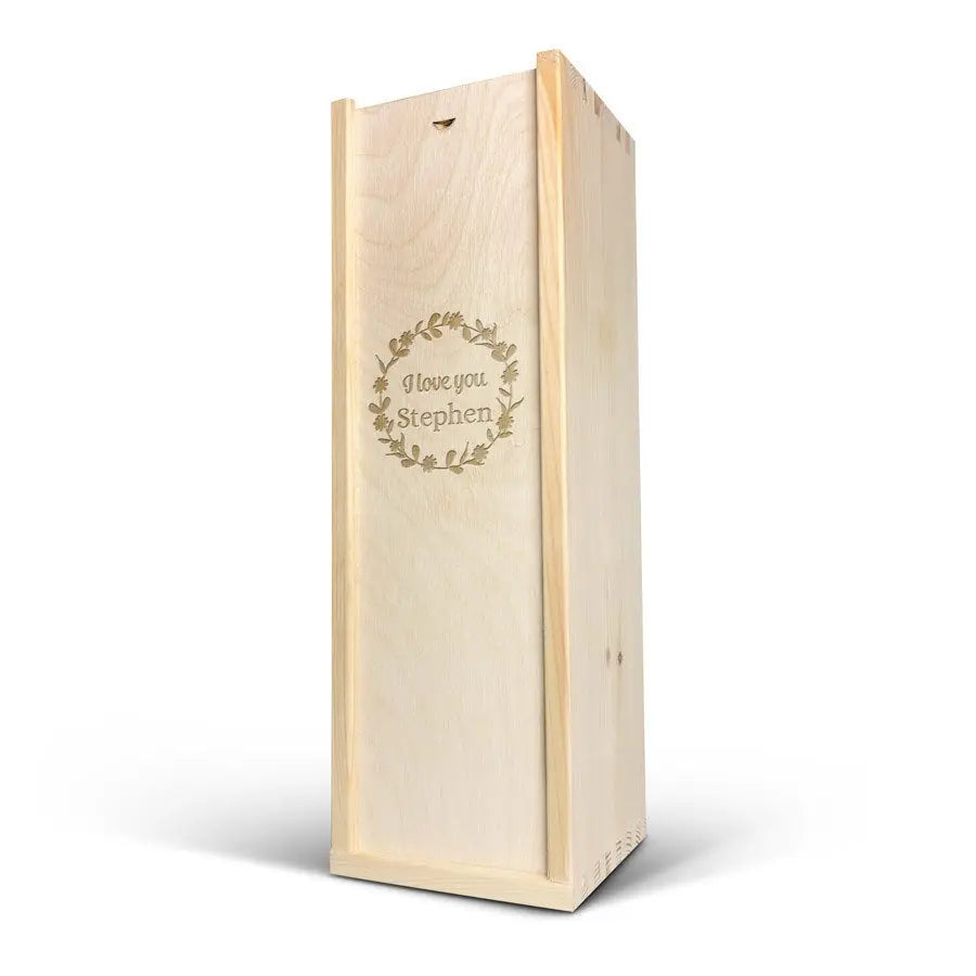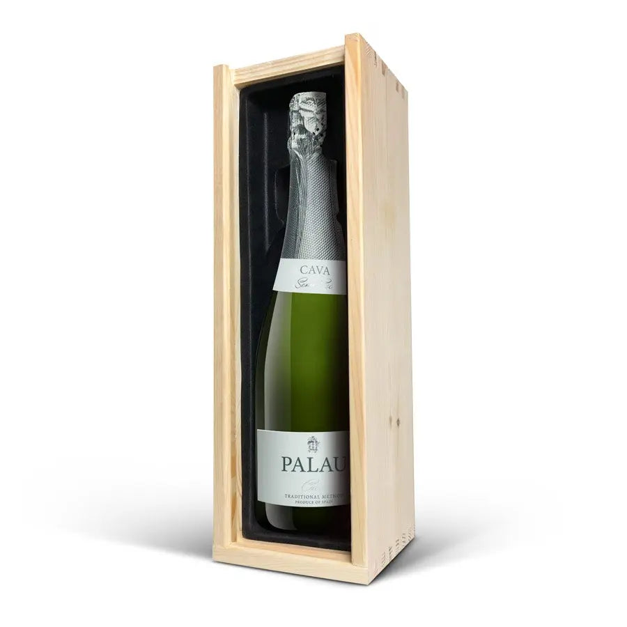 Adınız ve/veya metninizle oyulmuş lüks bir ahşap kutuda sunulan lezzetli bir Palau Semi-Seco cava şişesi. Orijinal hediye!