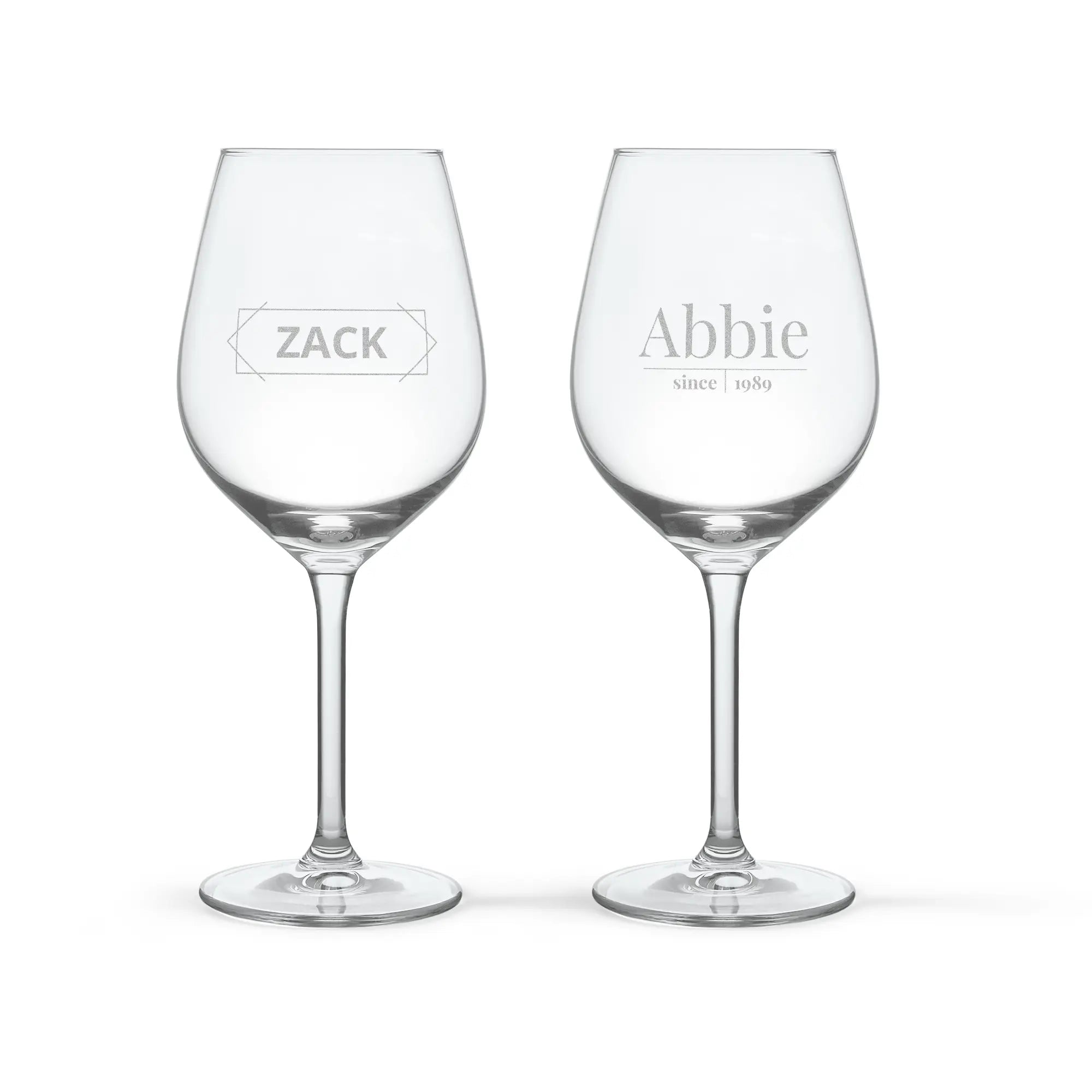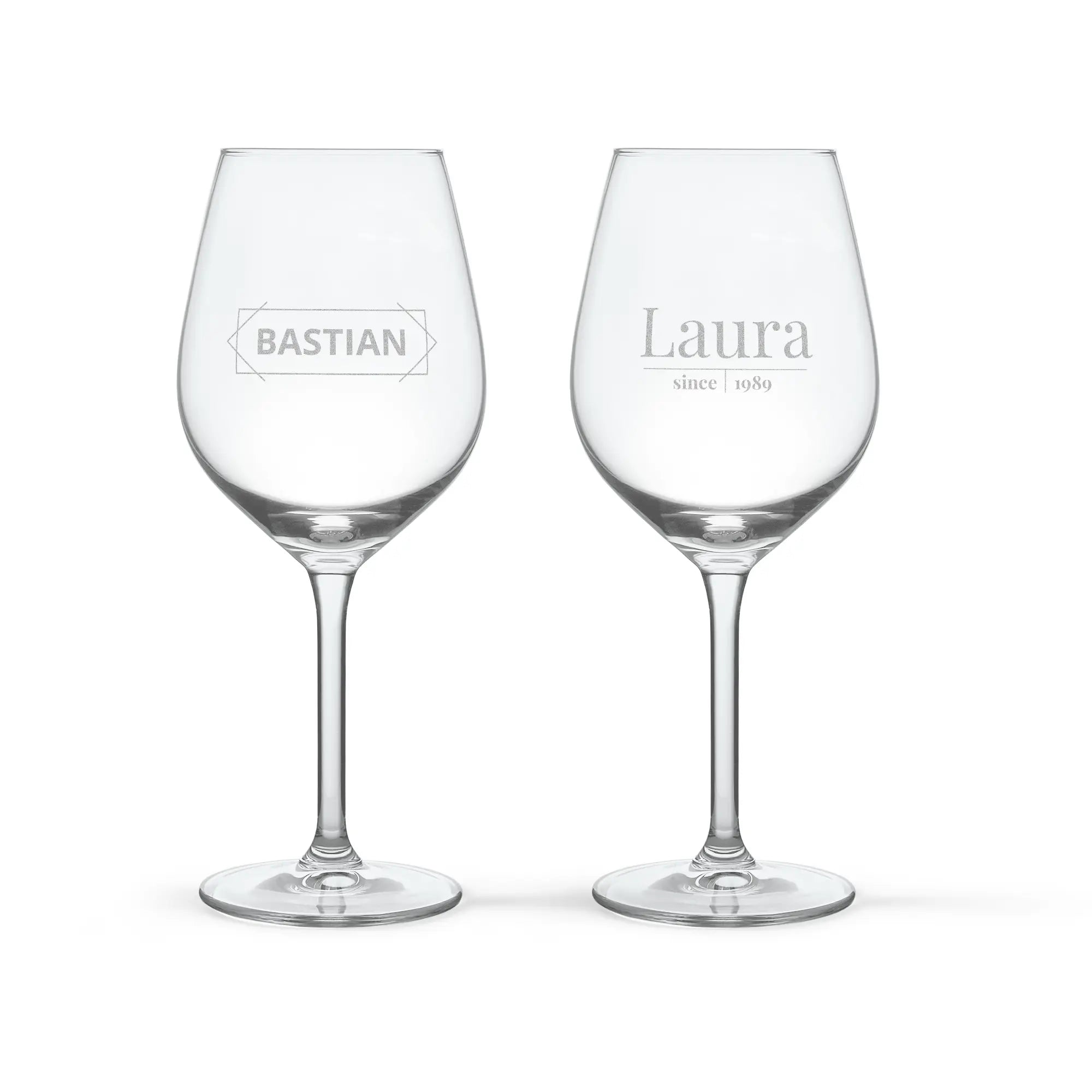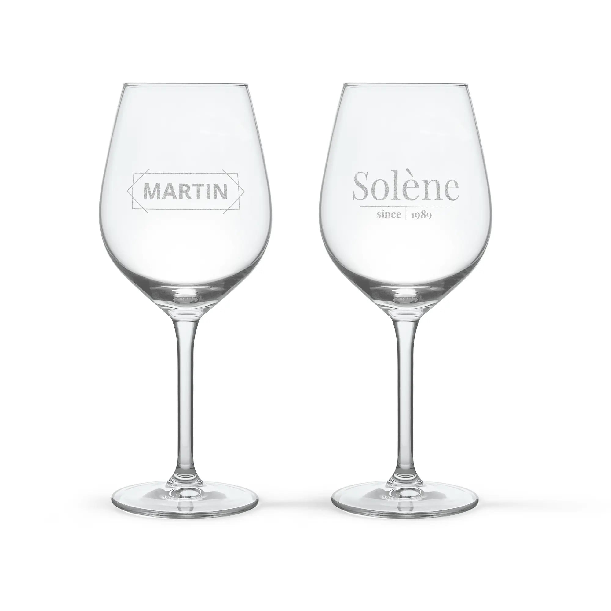 Şarap hediye seti ile kadehler - Maison de la Surprise Chardonnay - Gravürlü kadehler