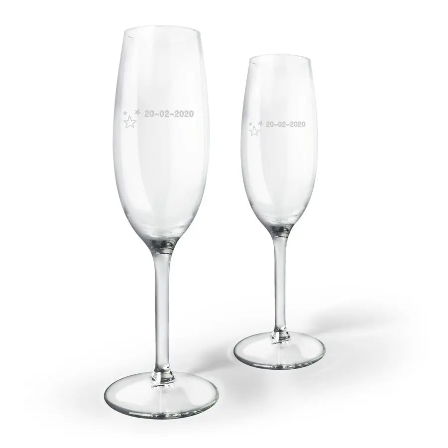 Tamamlayıcılar: Özel isim kazıma ile iki kristal şampanya bardağı, Moët & Chandon Imperial Brut Şampanyası olan bir şişe, modaya uygun ahşap sunum kutusu.