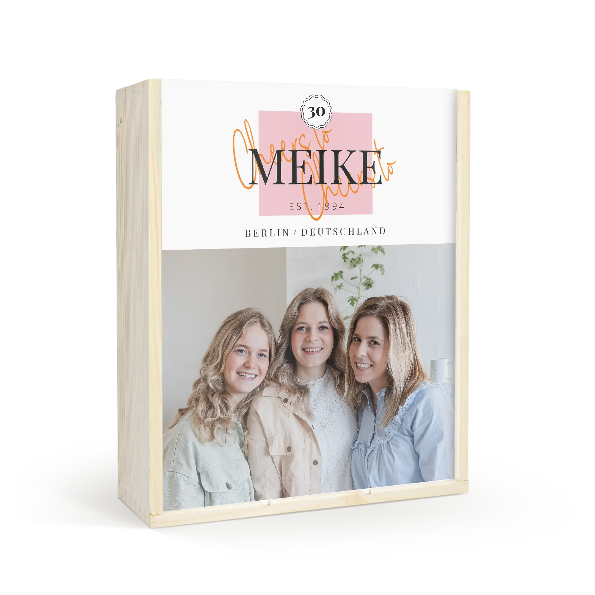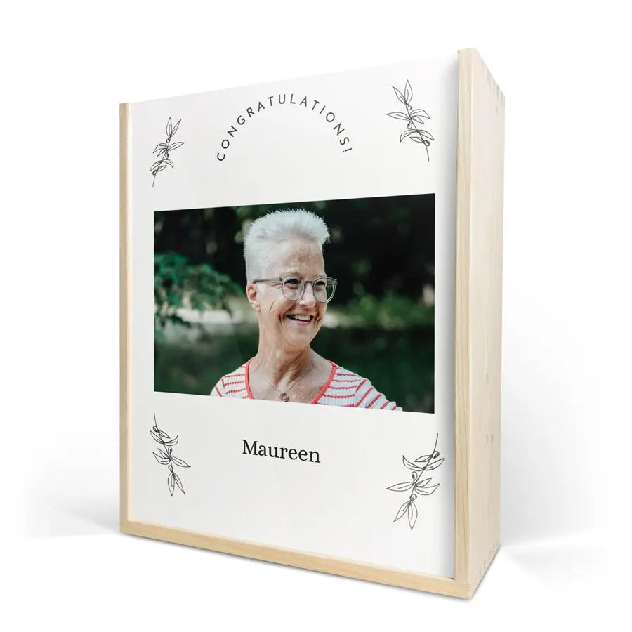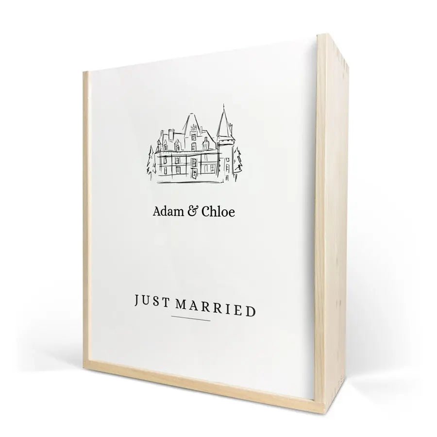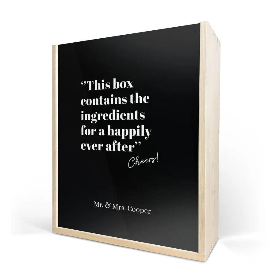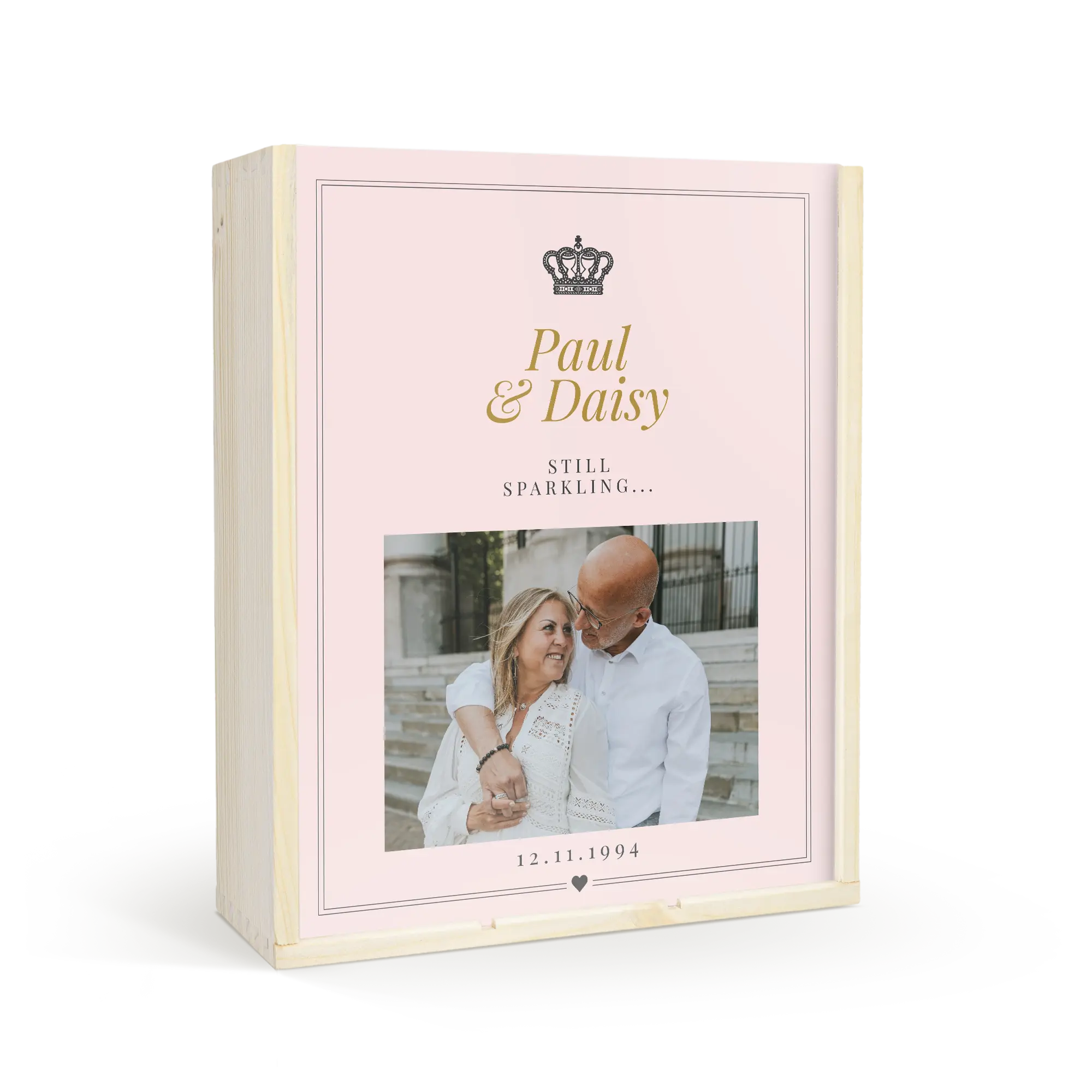 İki kadehli şık bir Moët & Chandon şampanya şişesi. Kendi tasarımınızla kişiselleştirilmiş lüks bir ahşap kutuda. Şerefe!