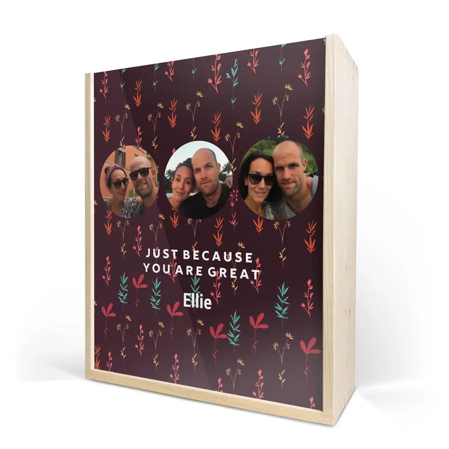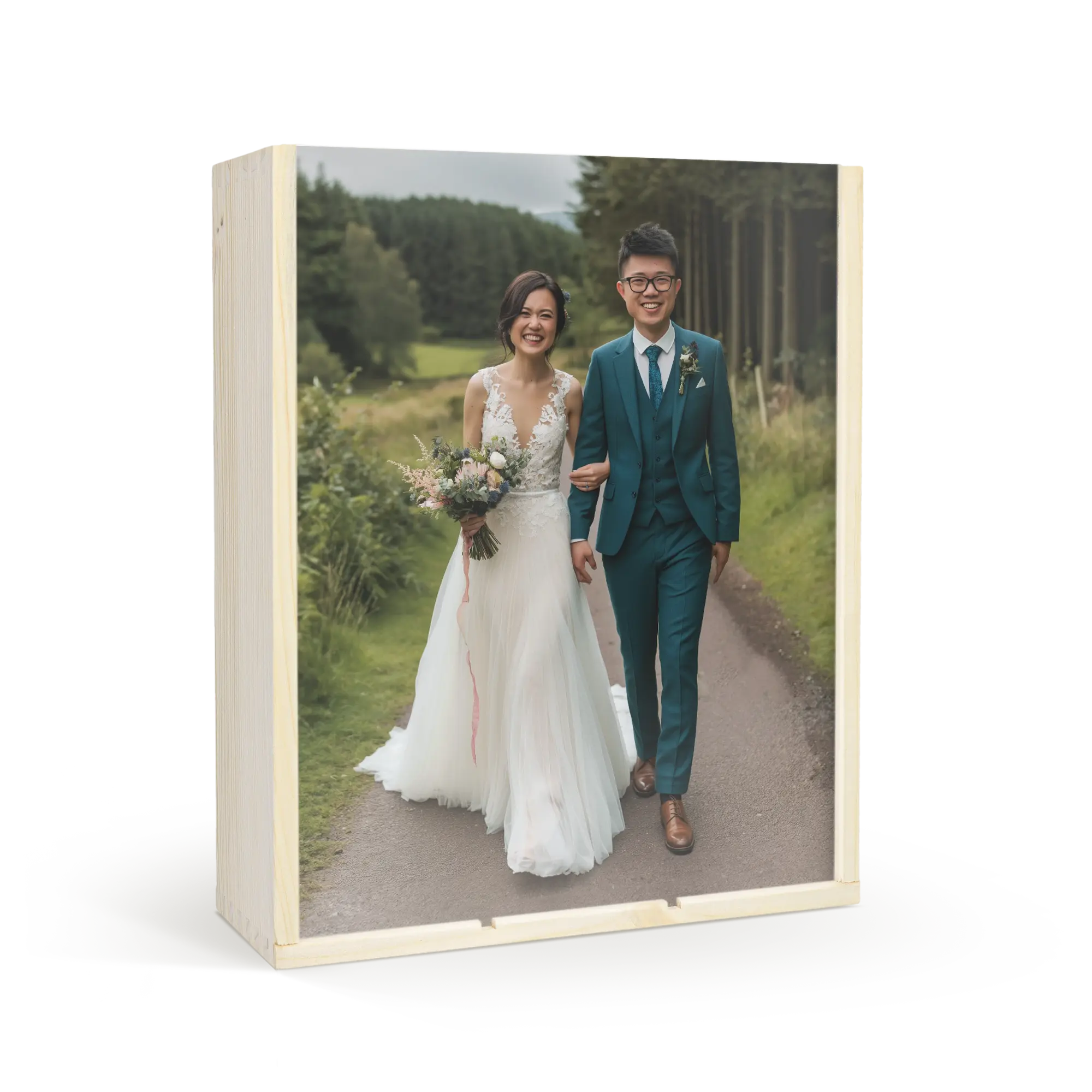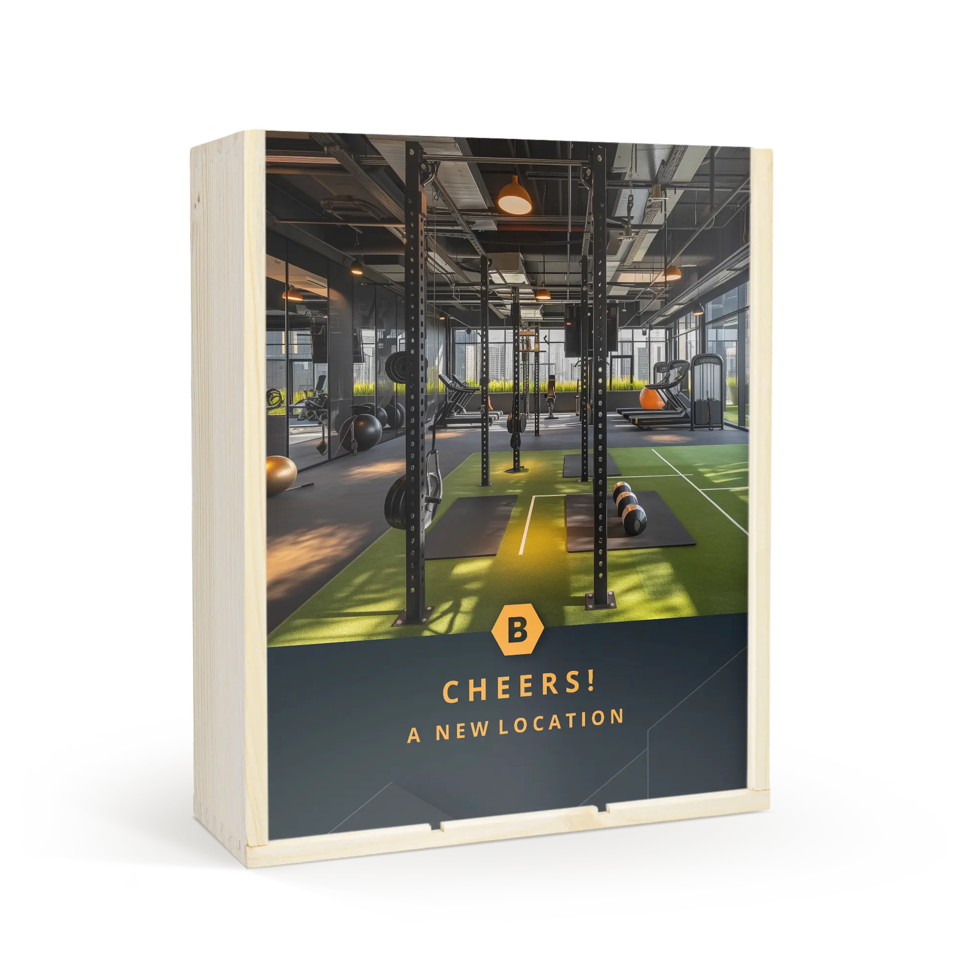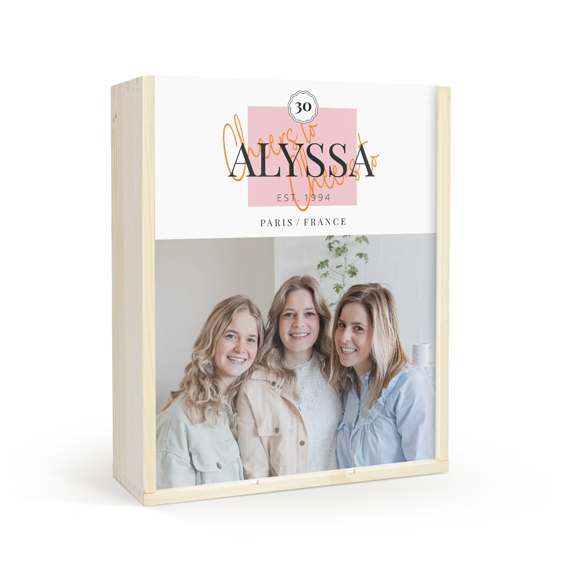 İki kadehli şık bir Moët & Chandon şampanya şişesi. Kendi tasarımınızla kişiselleştirilmiş lüks bir ahşap kutuda. Şerefe!
