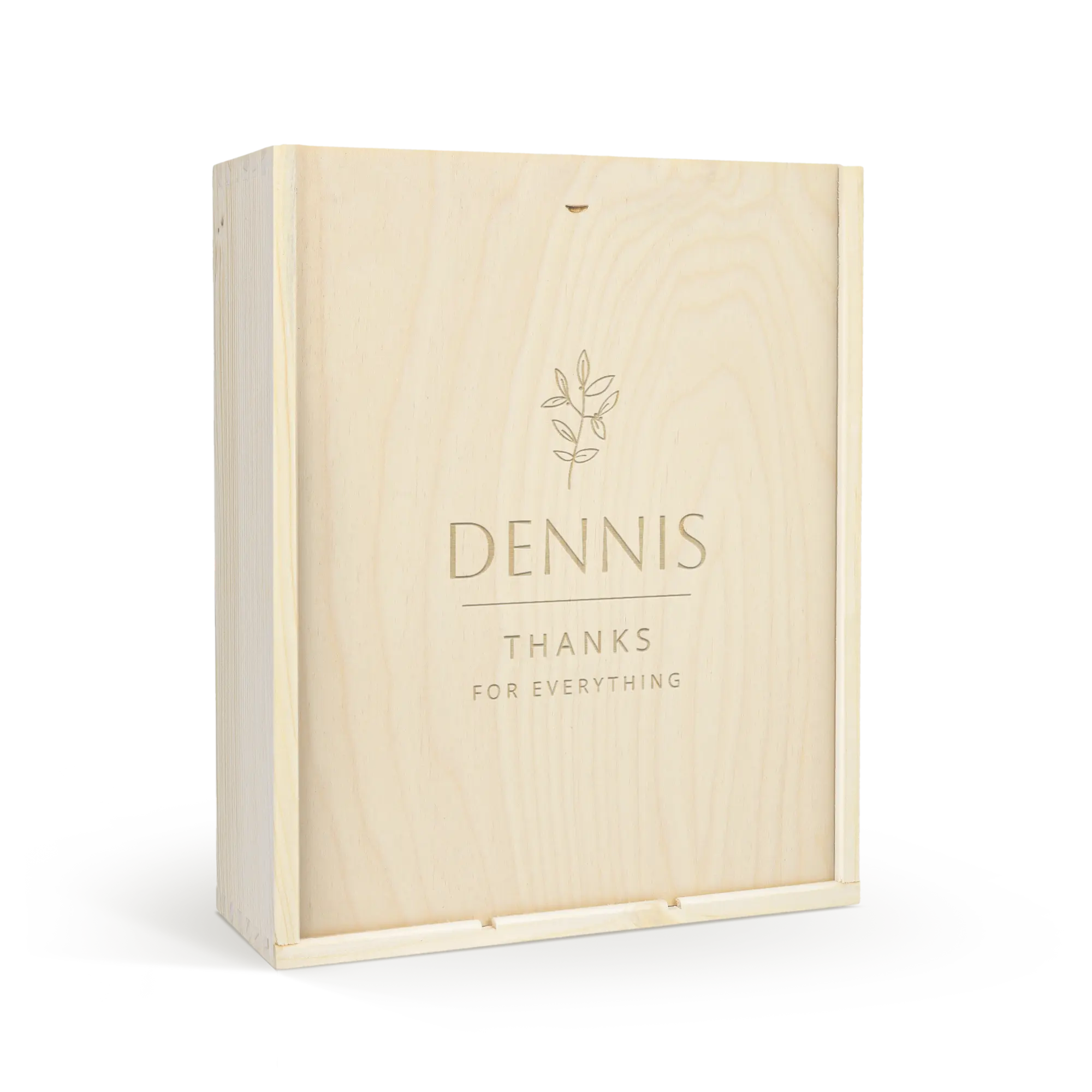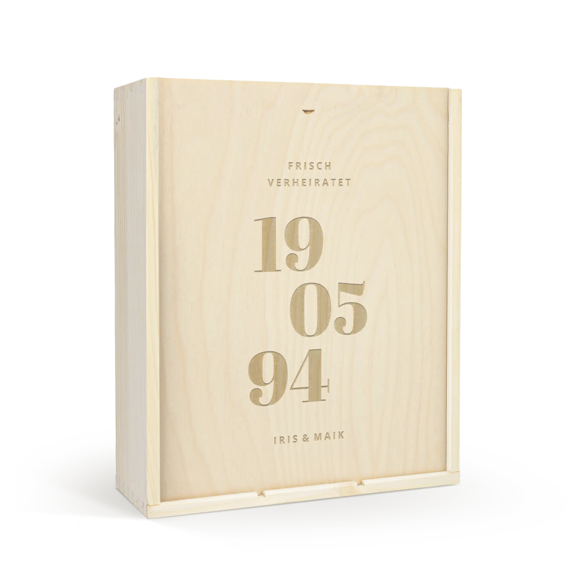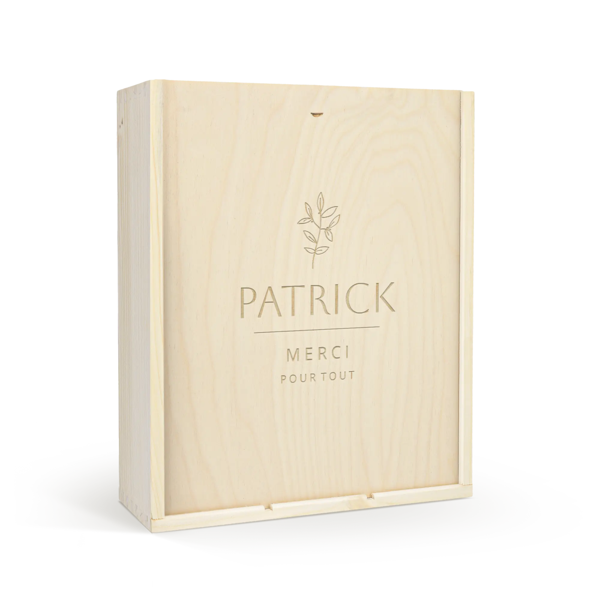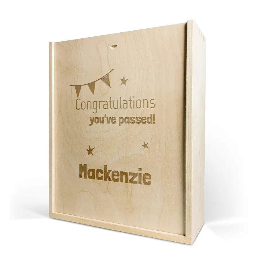 Lezzetli bir Moët & Chandon şampanyası ve iki kadeh. Kendi tasarımınızla süslenmiş lüks, oyma ahşap kutuda. Şerefe!