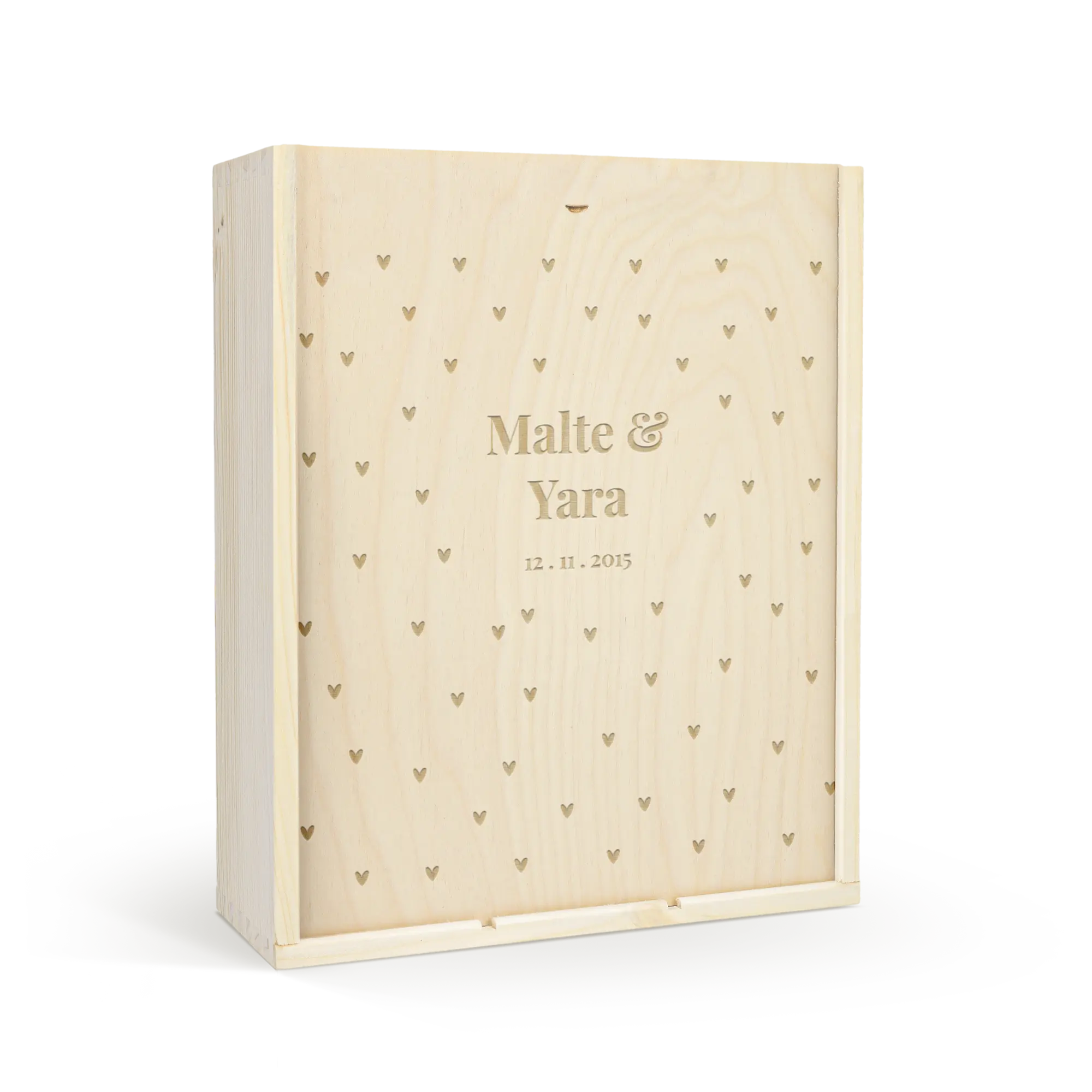Sadece bir kutu değil, anılar için bir sığınak, ahşaba kazınmış sevginin somut ifadesi. Kişiselleştirilmiş hediye kutusu, sevgi belirtisi olan eşyalar, mektuplar veya küçük hazinelerle doldurmanıza davet eder ve zamanla daha zenginleşen kişisel bir hikâye oluşturur. Kalbi dokunan mesajdan ince kalpler kadar her kazınlı detay, basit bir nesneyi bağlanma ve kalıcı duyguların derin bir simgesine dönüştürür. Paylaşılan bir hikâyenin en sevilen parçalarını barındırırken bir alanı dekore eden bir hediye budur.
