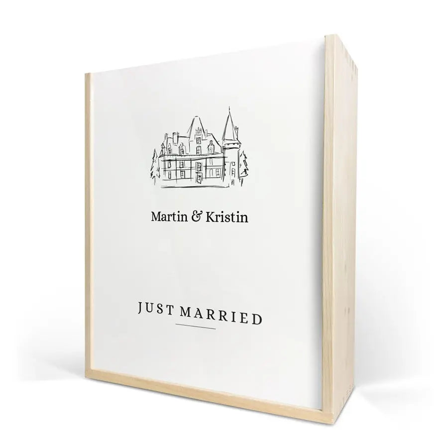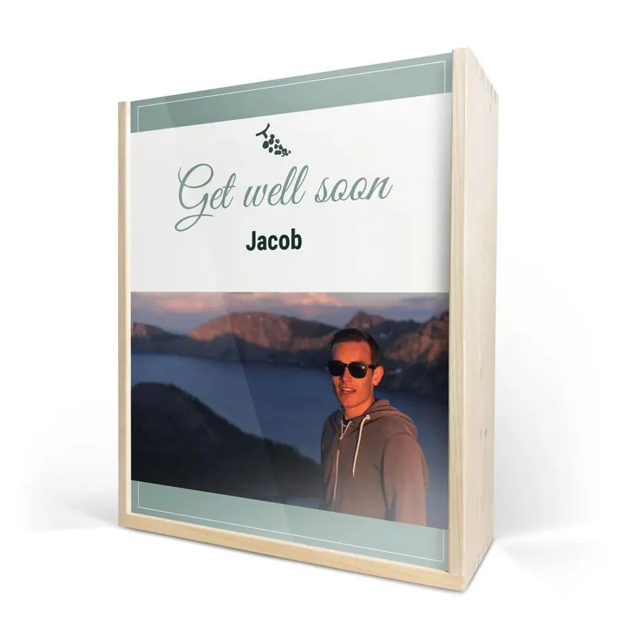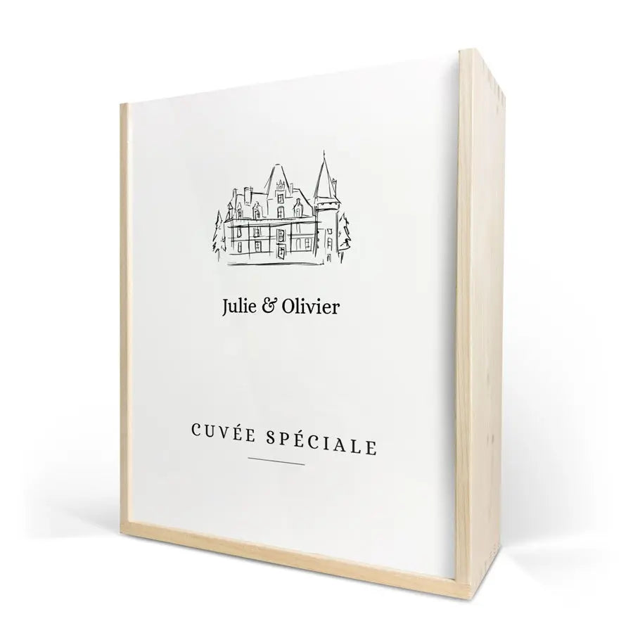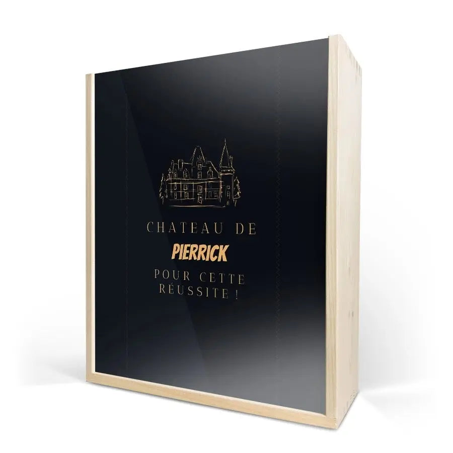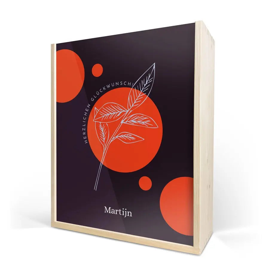 Lüks kişiye özel kutuda lezzetli bir şişe şarap. Seçiminize göre fotoğraf, logo, kolaj, isim ve/veya metin ile kişiselleştirilmiş!