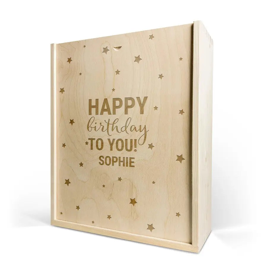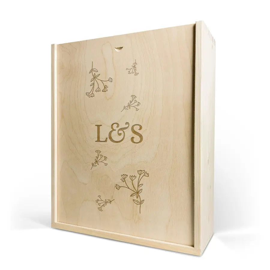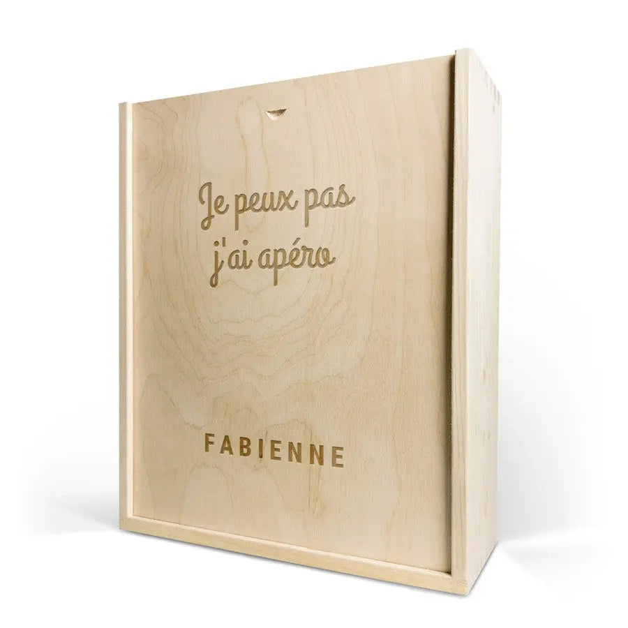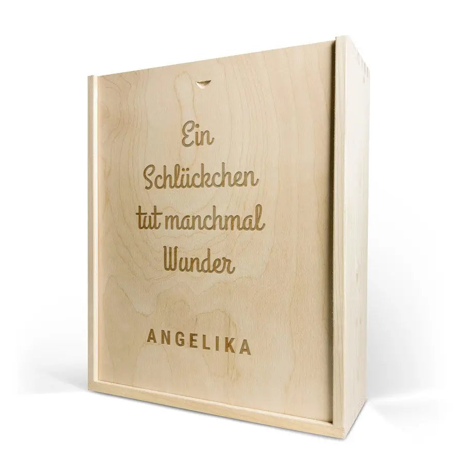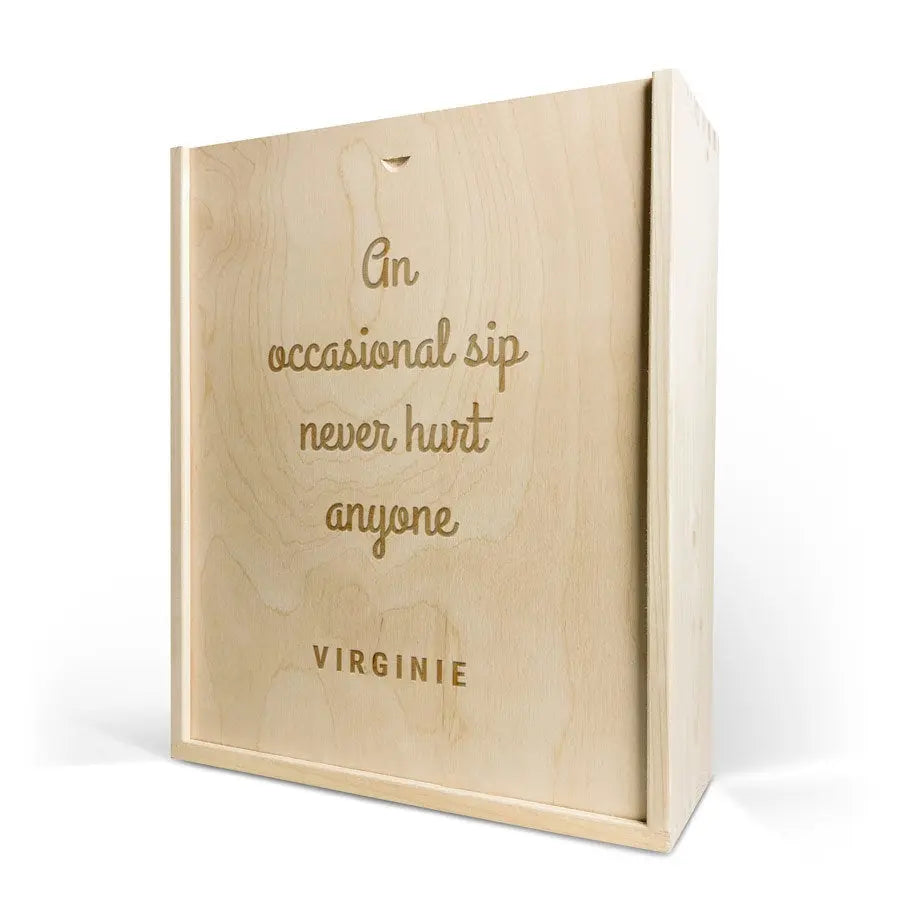 Lüks gravürlü kutuda lezzetli bir şişe şarap. Seçtiğiniz isim ve/veya metin ile kişiselleştirilmiş!