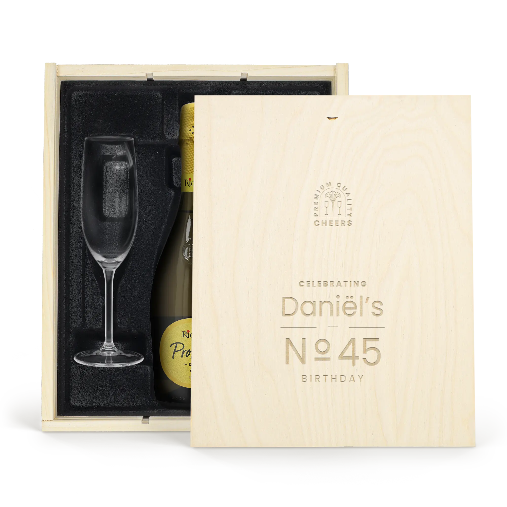Kişiselleştirilmiş Prosecco Kutusu, hayatın en değerli anlarını kutlamak için zarif bir set.
