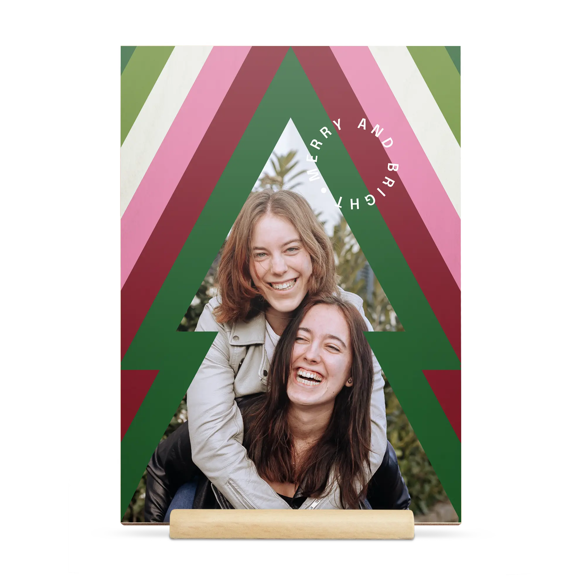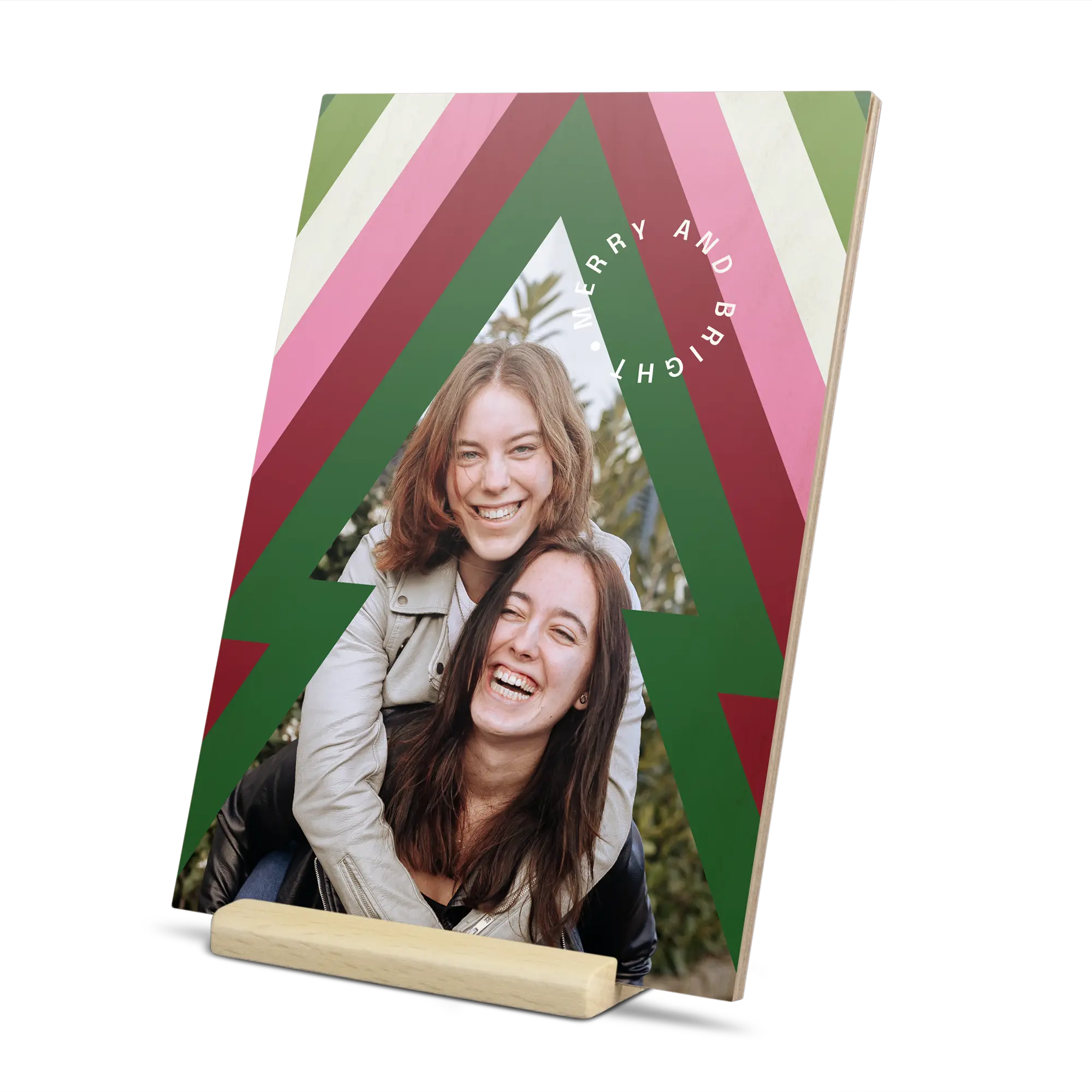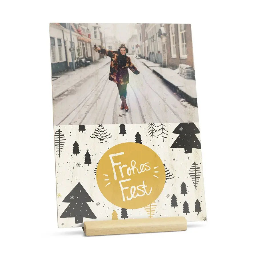 Özel olarak sizin için tasarlanmış ahşap bir Noel kartı. Süper dayanıklı kontrplak üzerine tam renkli baskı, pratik bir stand ile birlikte. Mutlu Noeller!