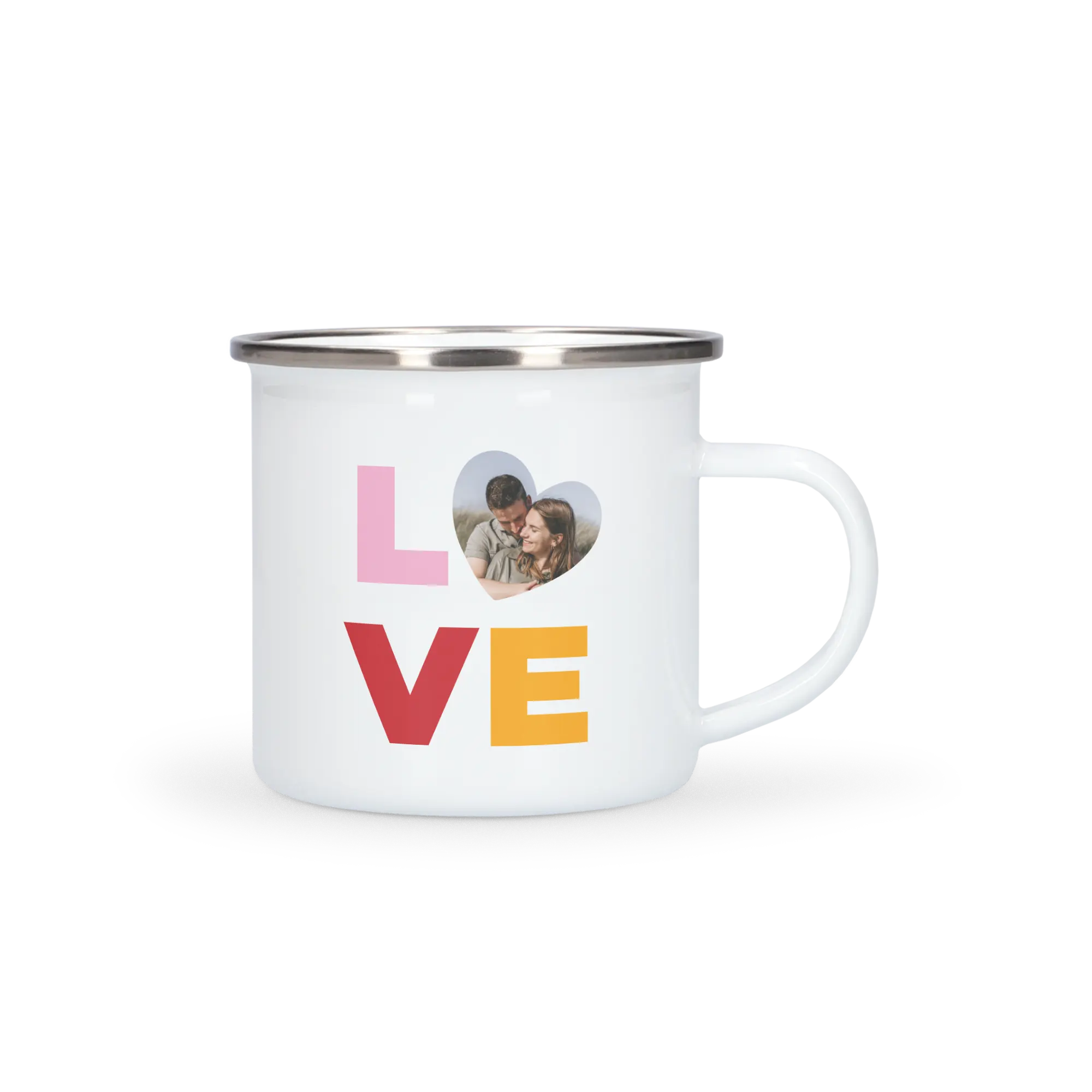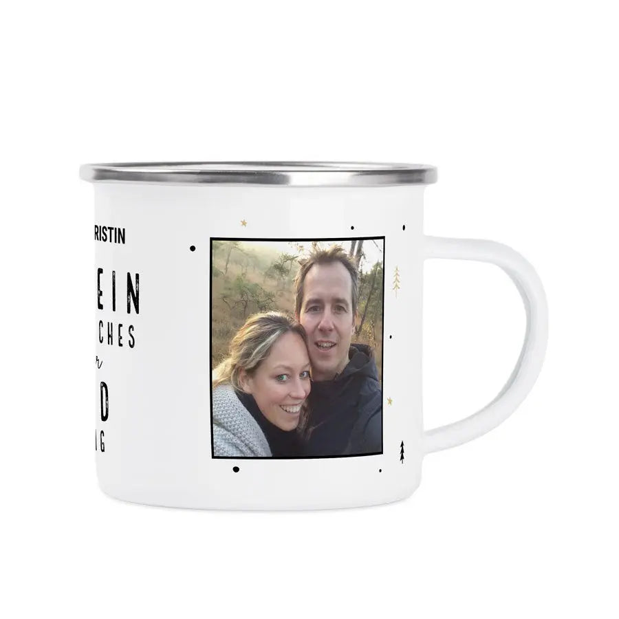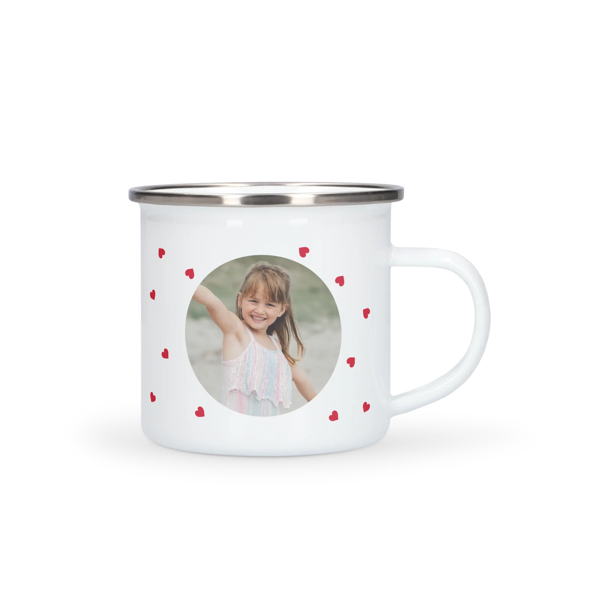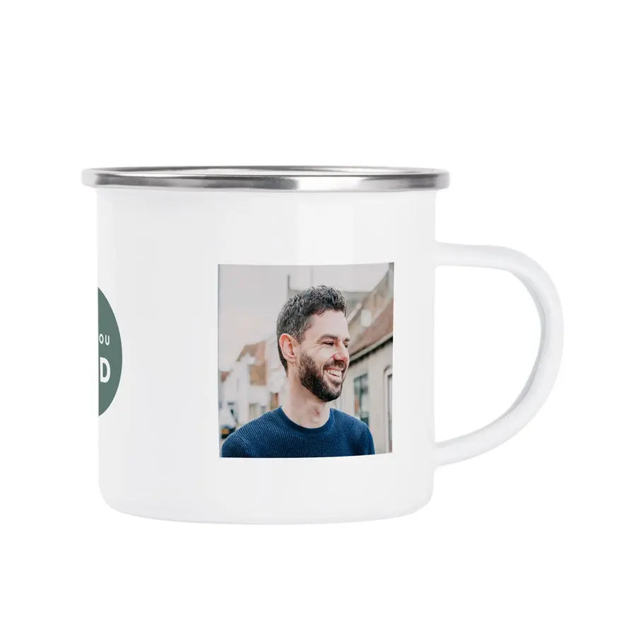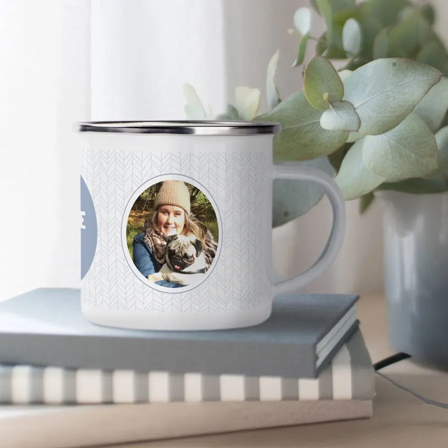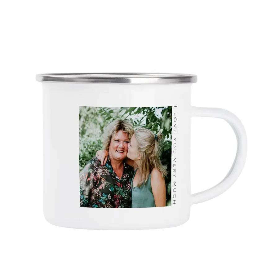 Tamamen şık ve retro bir görünüm için baskılı emaye kupa. Fotoğraf, isim ve/veya metin ile kişiselleştirin. Herkes için en çok yönlü hediye!
