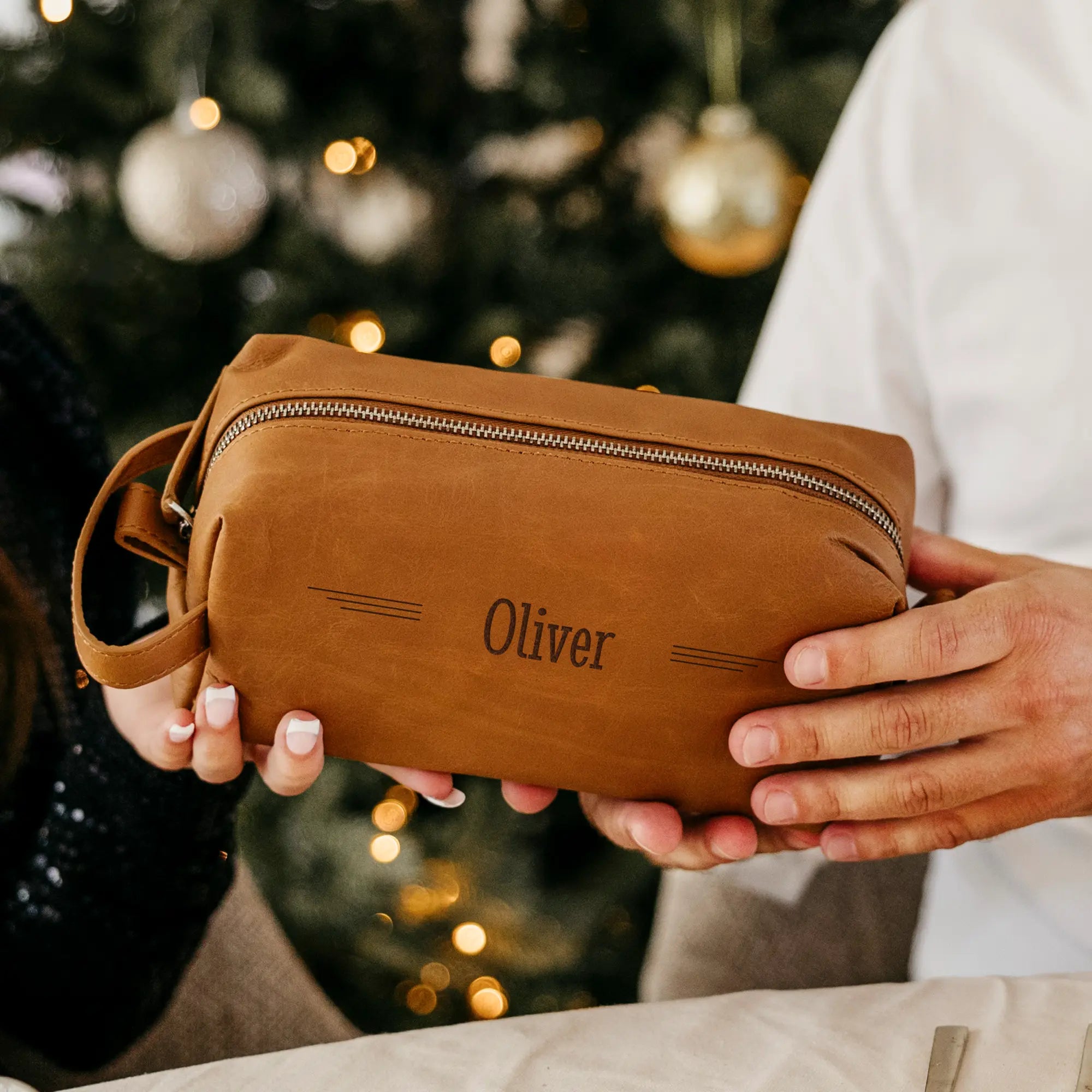 Tüm favori aksesuarlarınızı bu güzel lüks deri makyaj çantasında saklayın. İsim veya metin ile kişisel gravür.