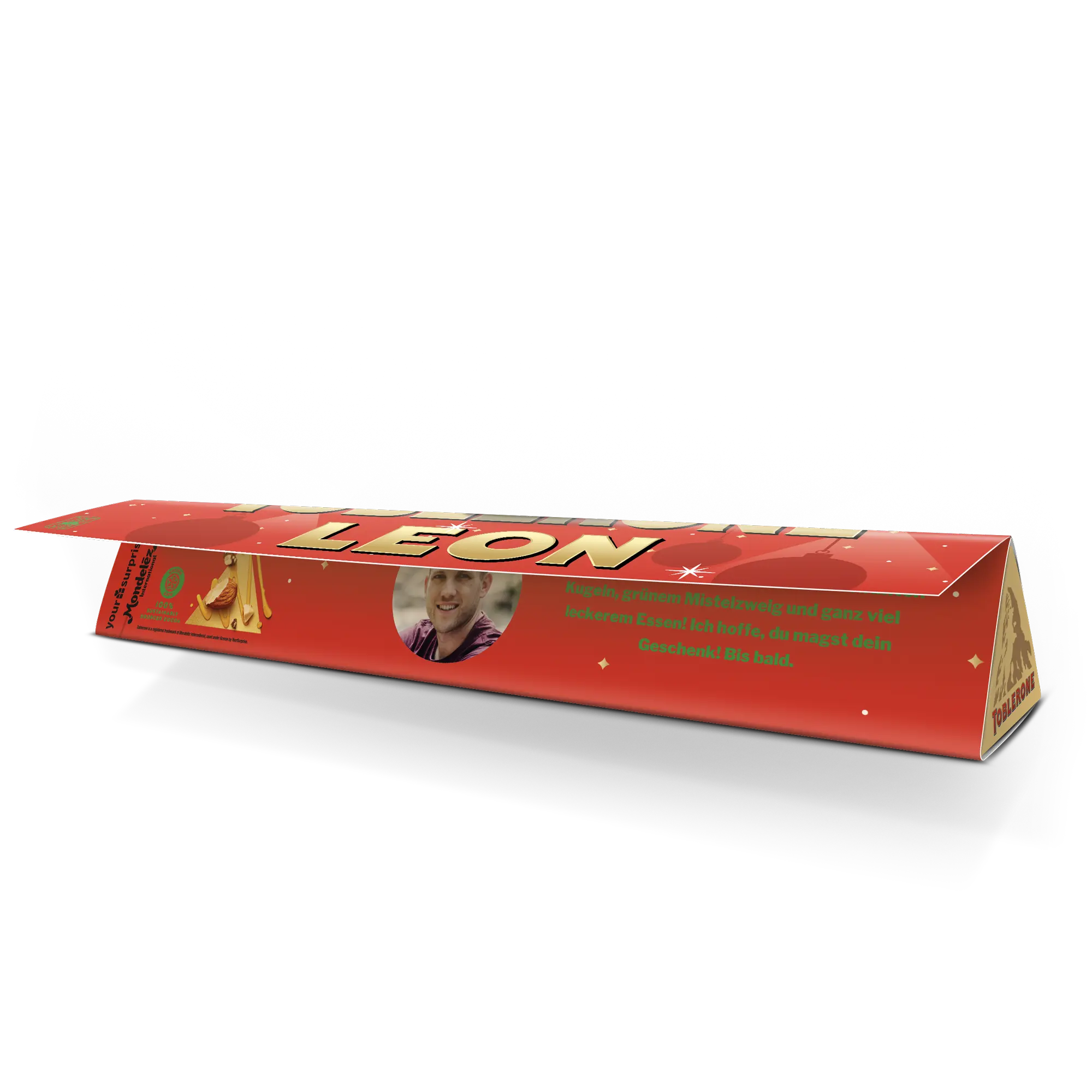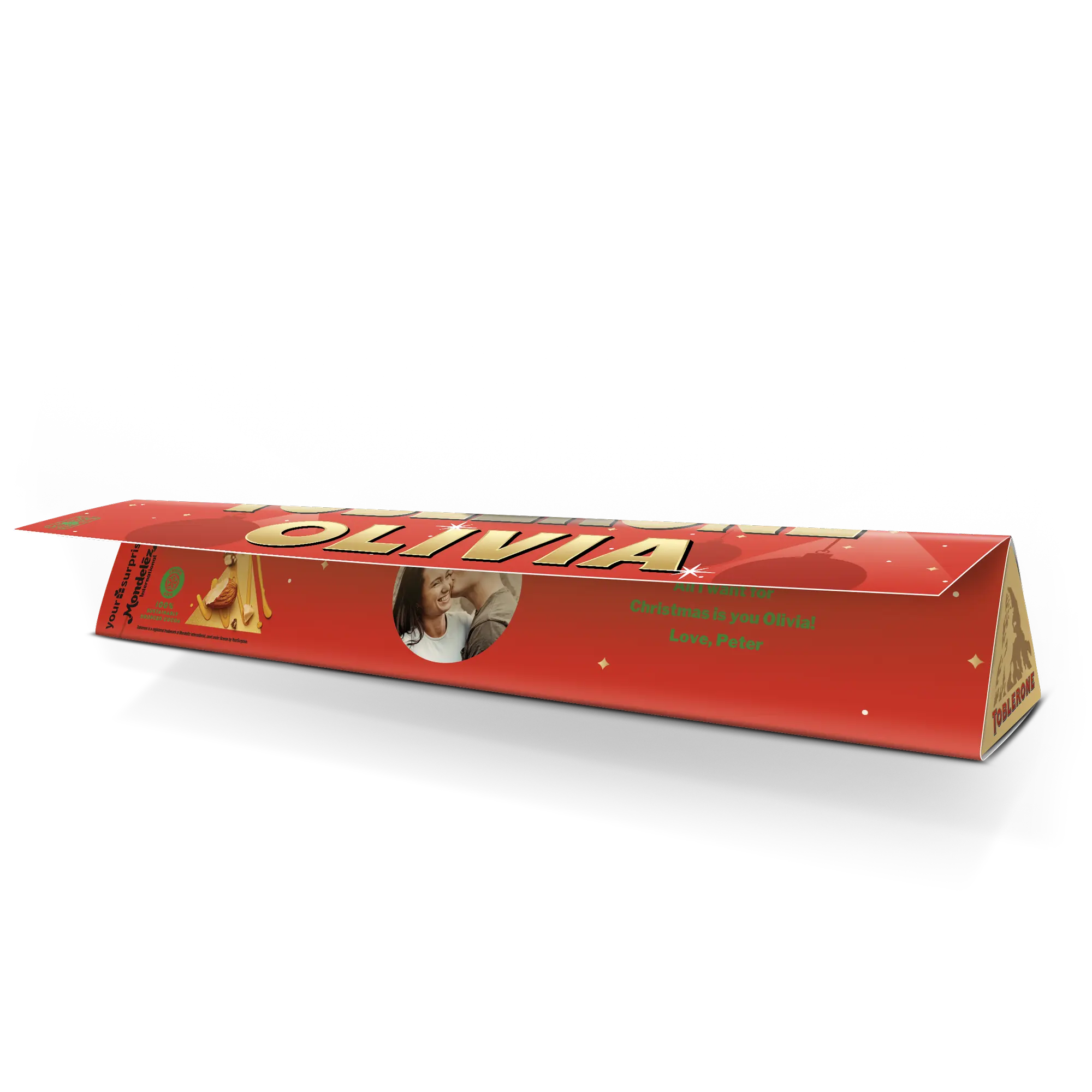 Hayatınızdaki çikolata tutkunlarını, seçtiğiniz isim, fotoğraf ve mesajla kişiselleştirilmiş bir Noel Toblerone çikolatasıyla şaşırtın!