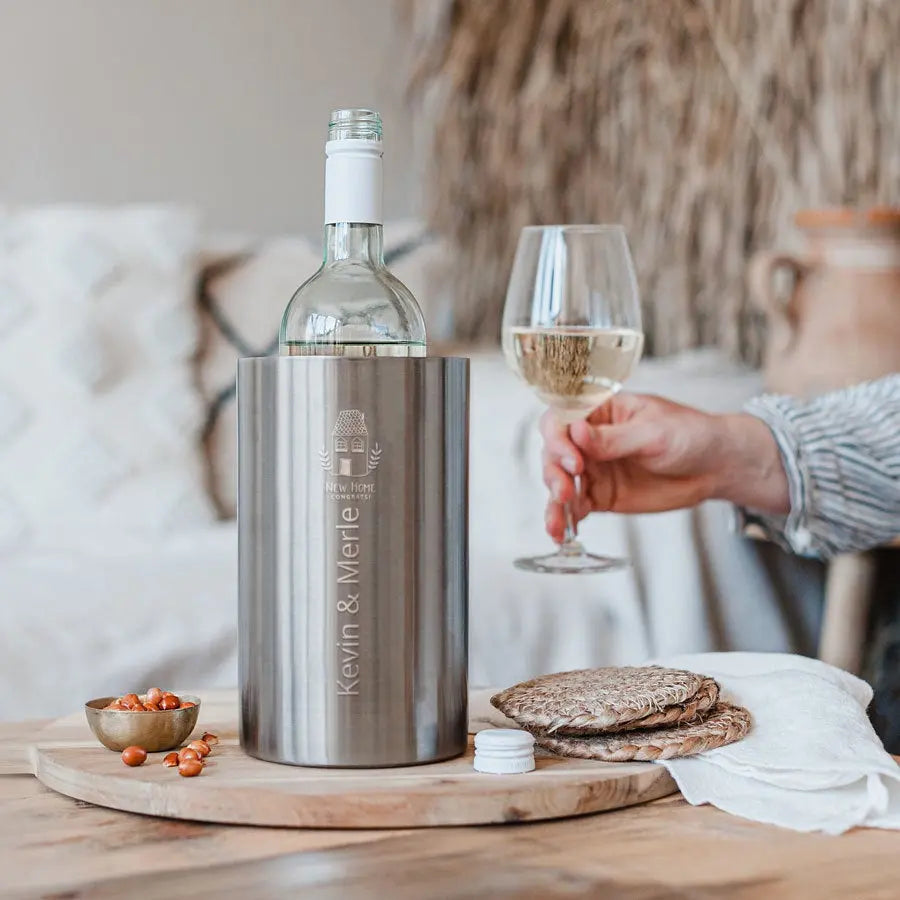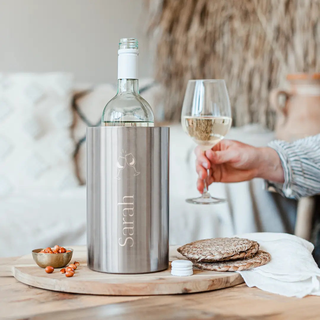 Eğer lüks bir kişisel hediye arıyorsanız, istediğiniz isim veya metinle kişiselleştirilmiş bu gravürlü şarap soğutucusunu tercih edebilirsiniz.
