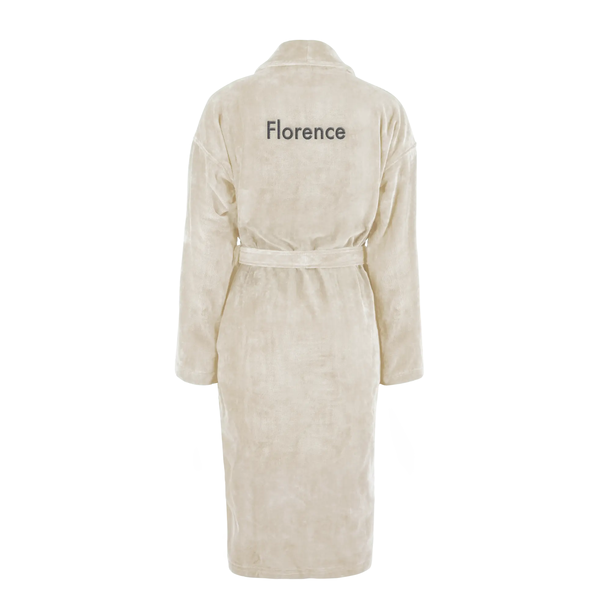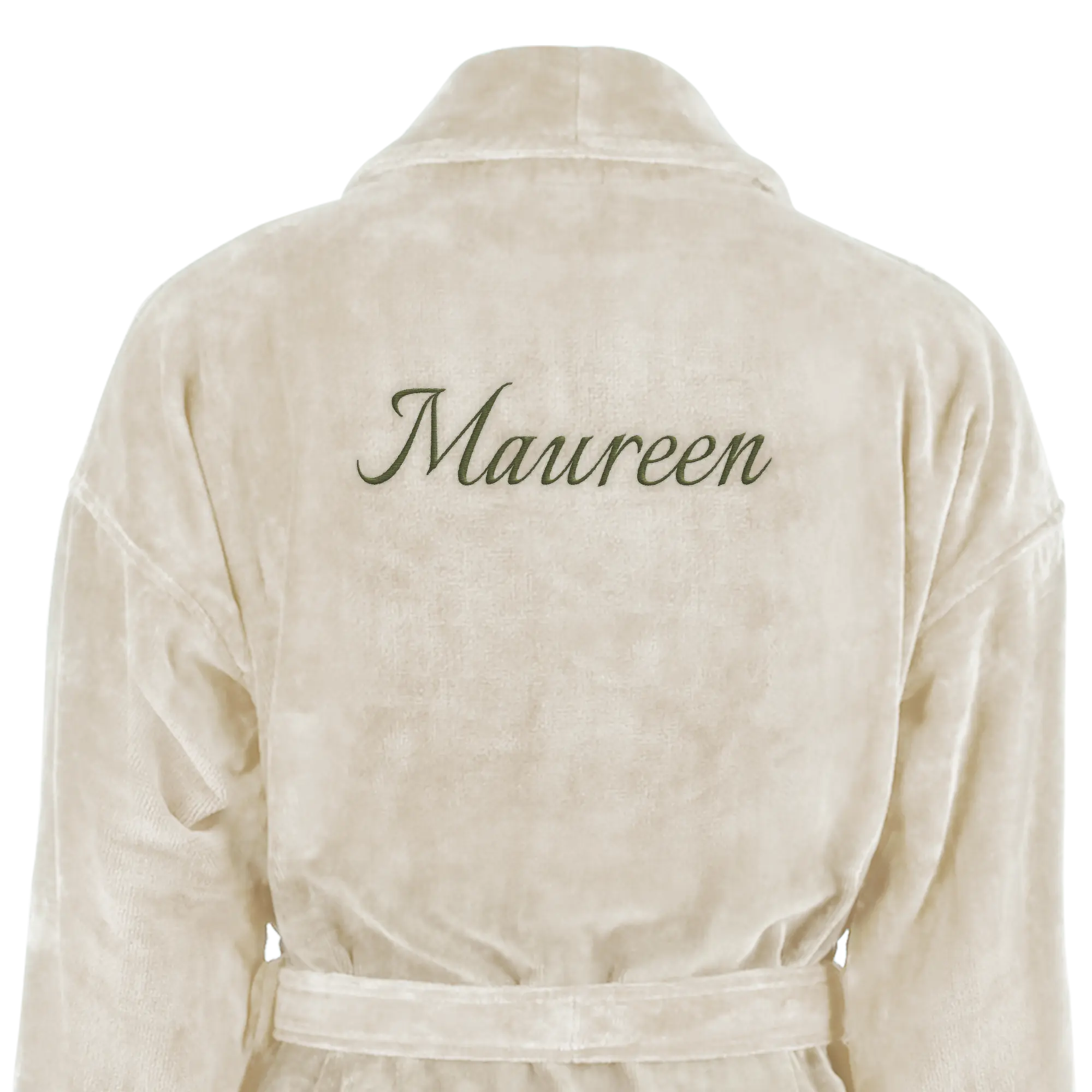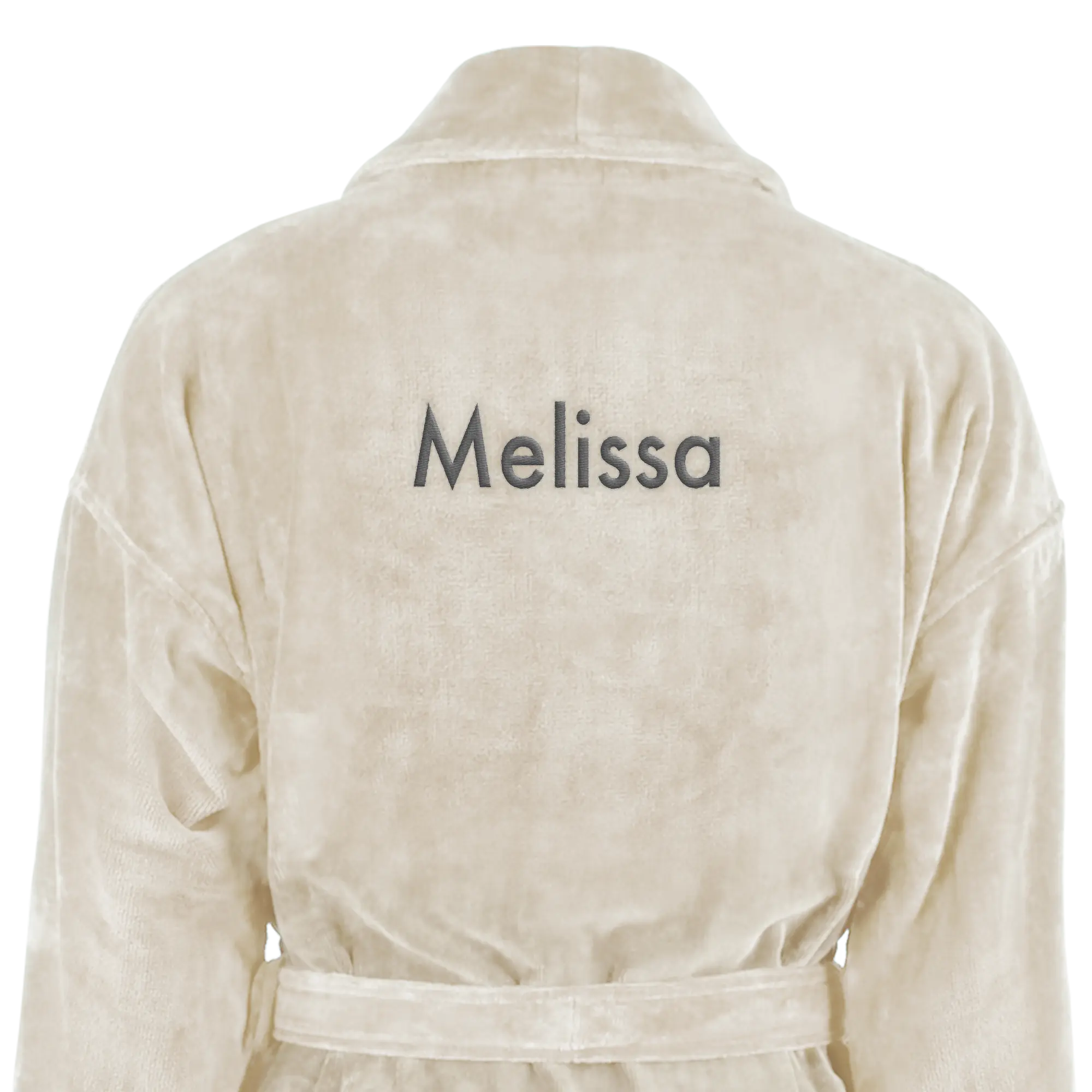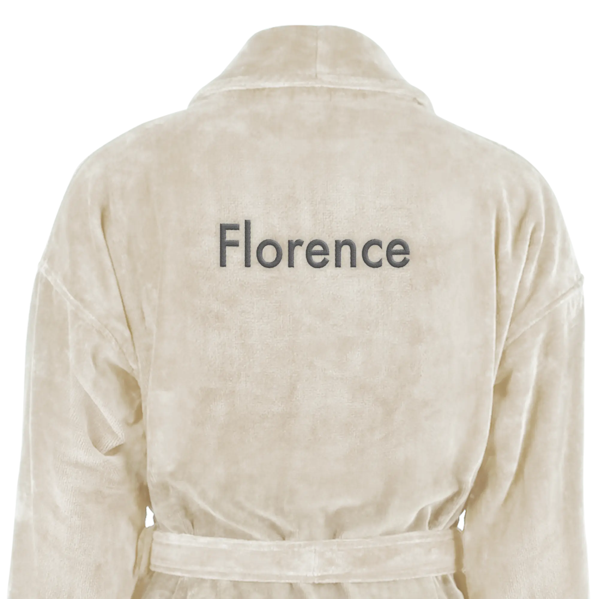 Kadınlar için kişiye özel, istediğiniz isim veya metinle işlenmiş bornoz. Şimdi kendi bornozunuzu oluşturun!