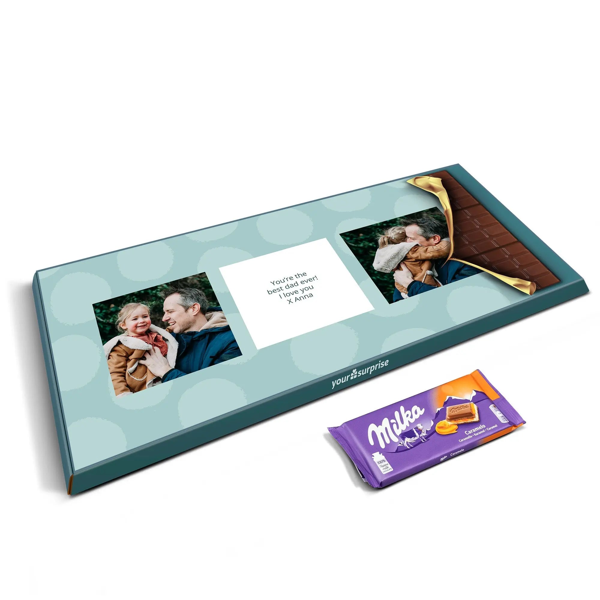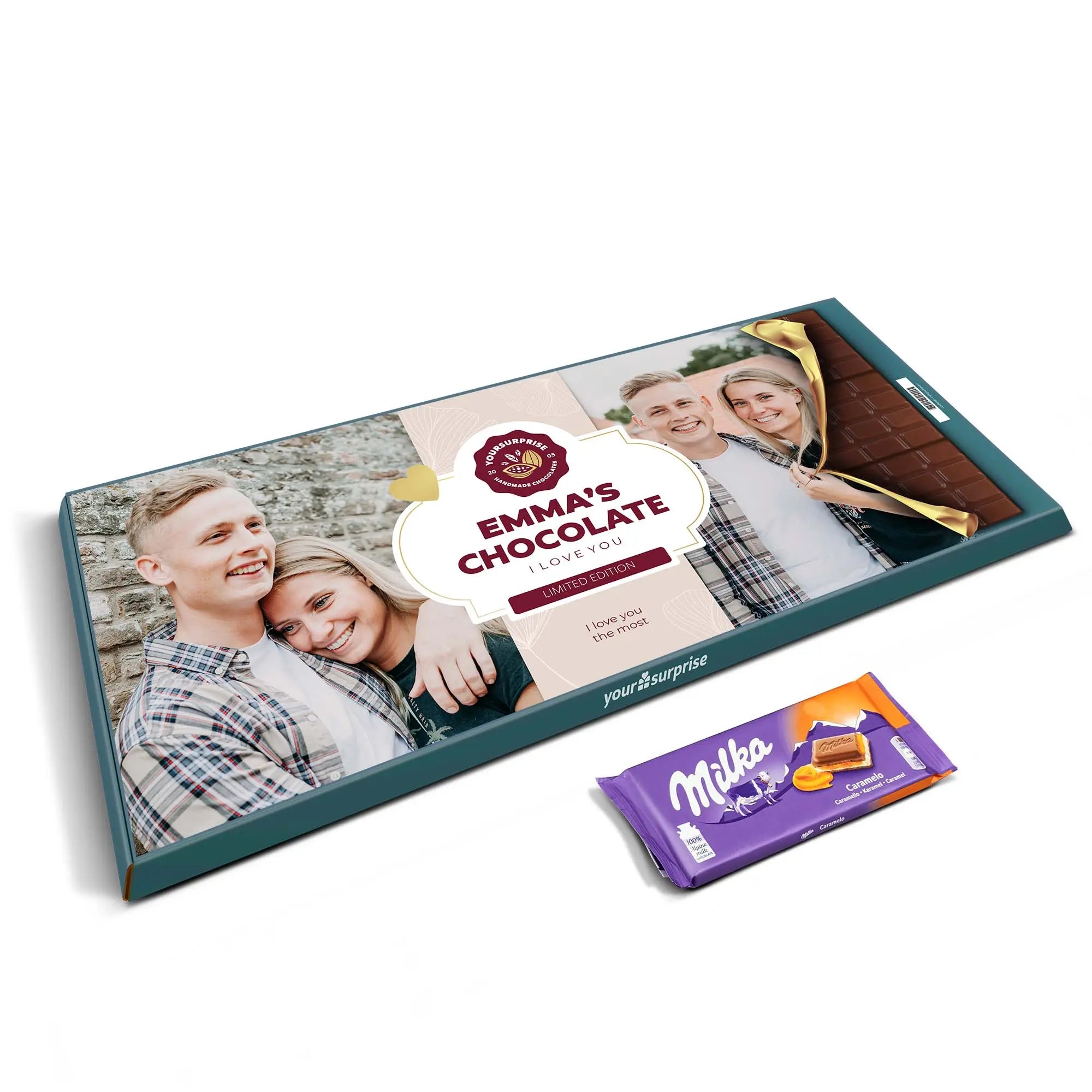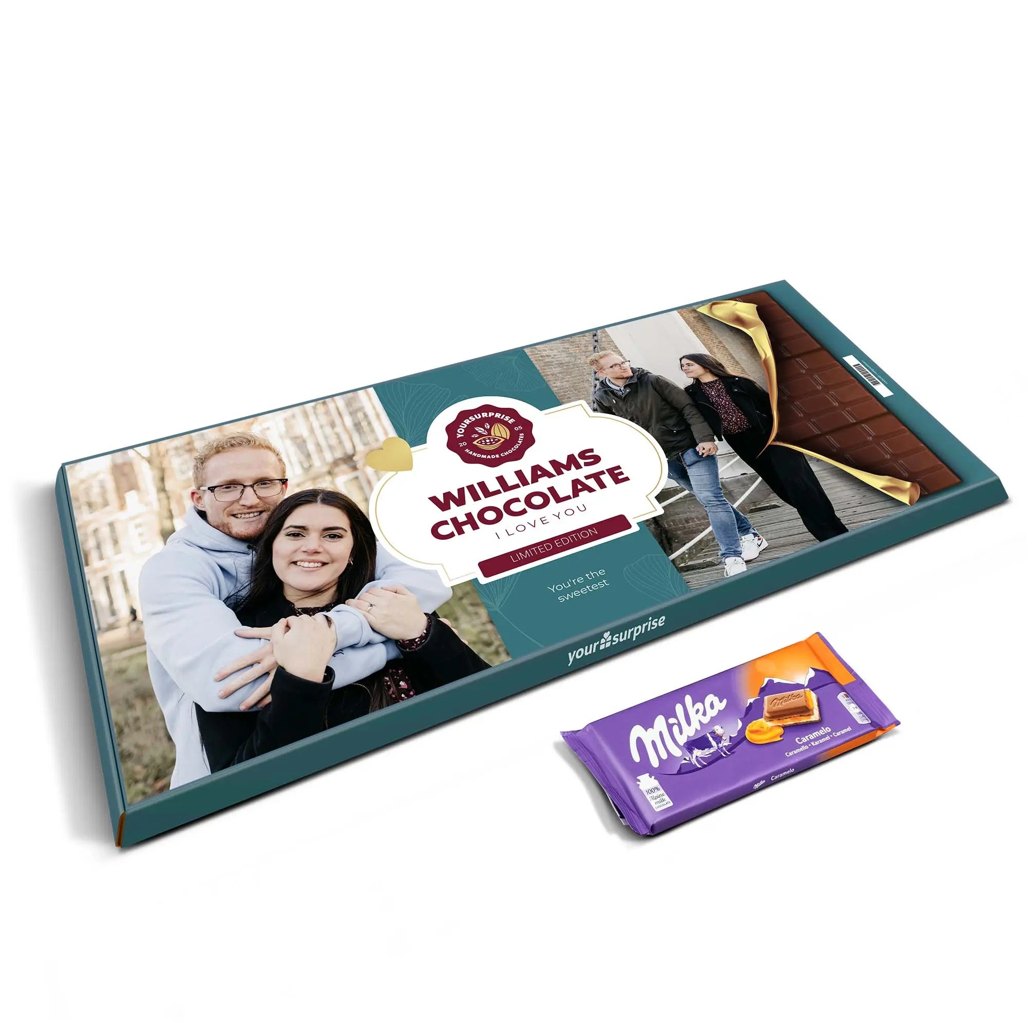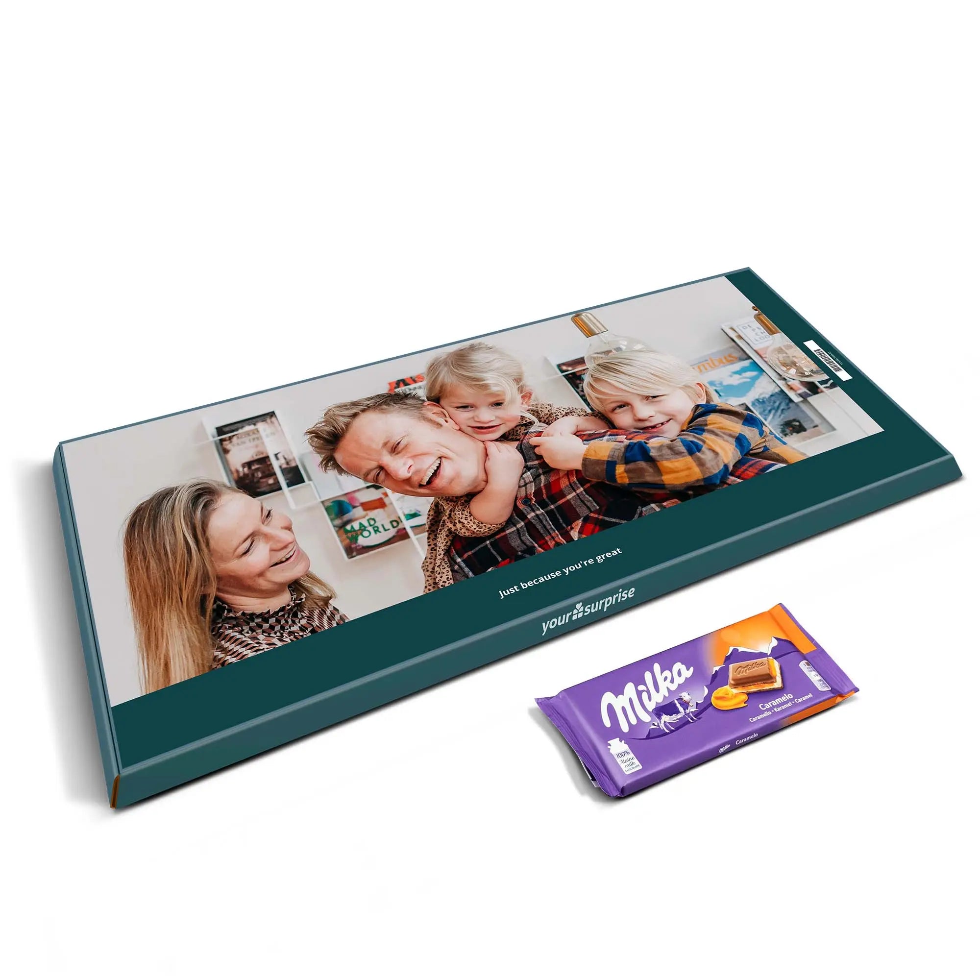 Bu XXL Noel çikolata barı, en az 9 adet Milka çikolata barı içeriyor. Seçtiğiniz fotoğraf ve/veya isimle gerçekten benzersiz!