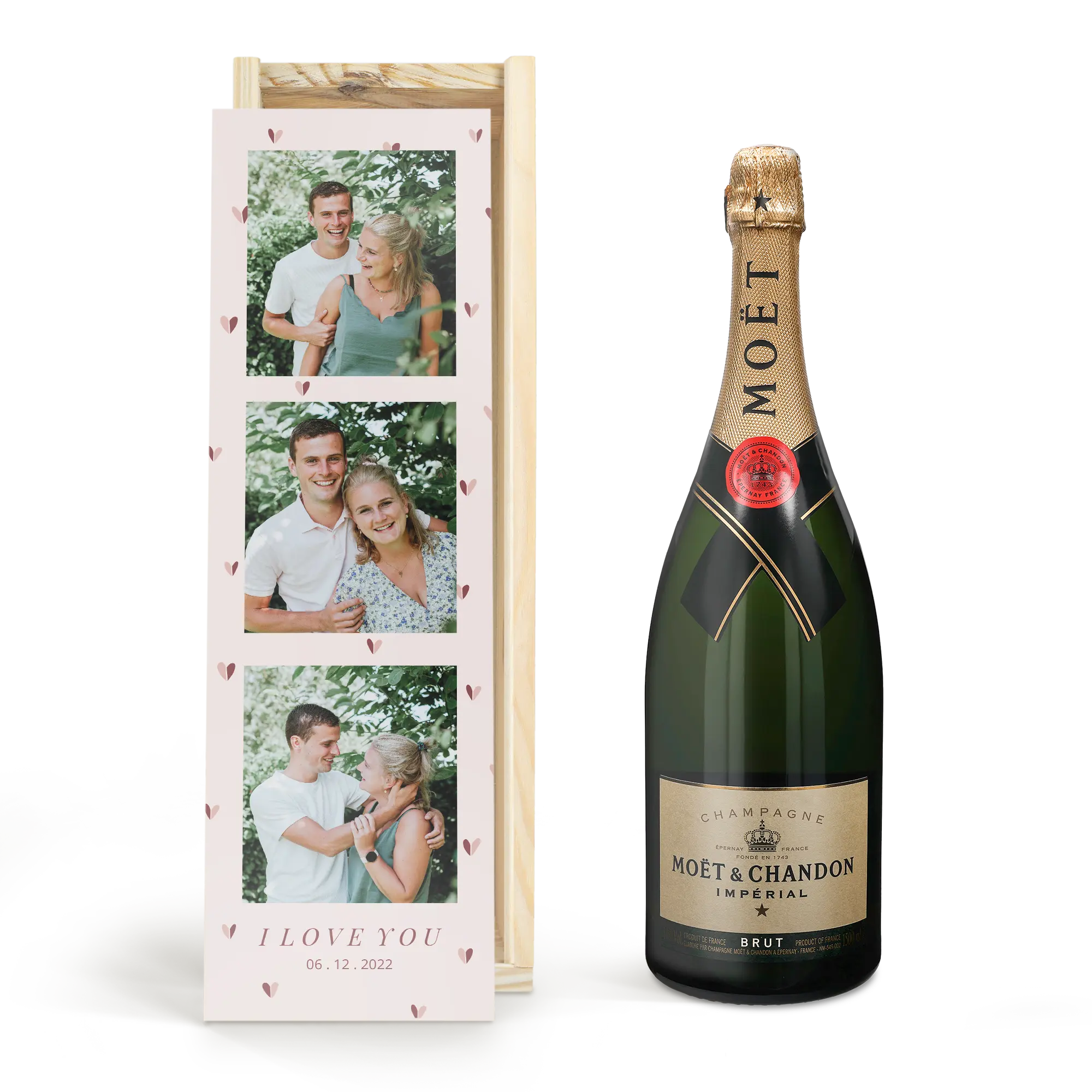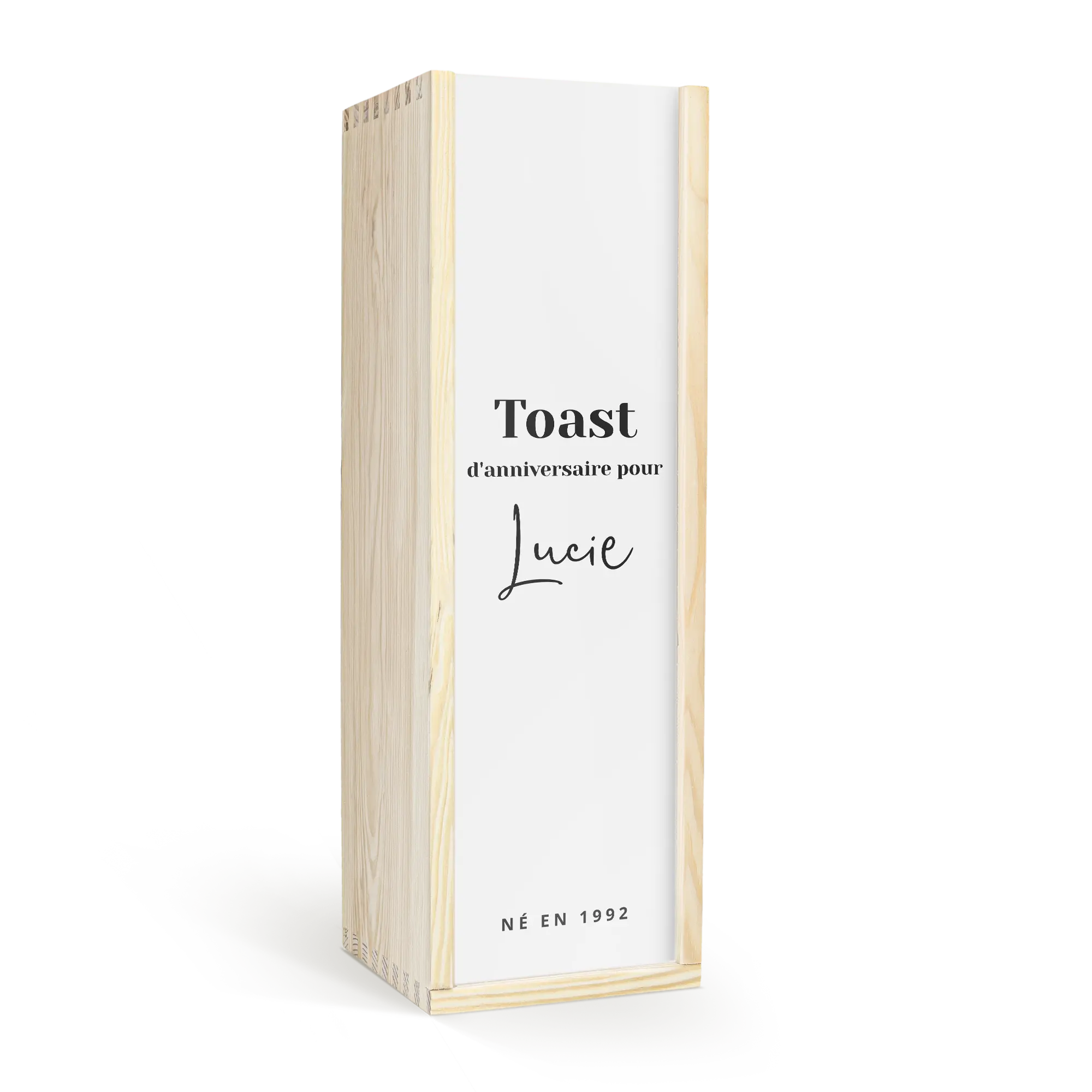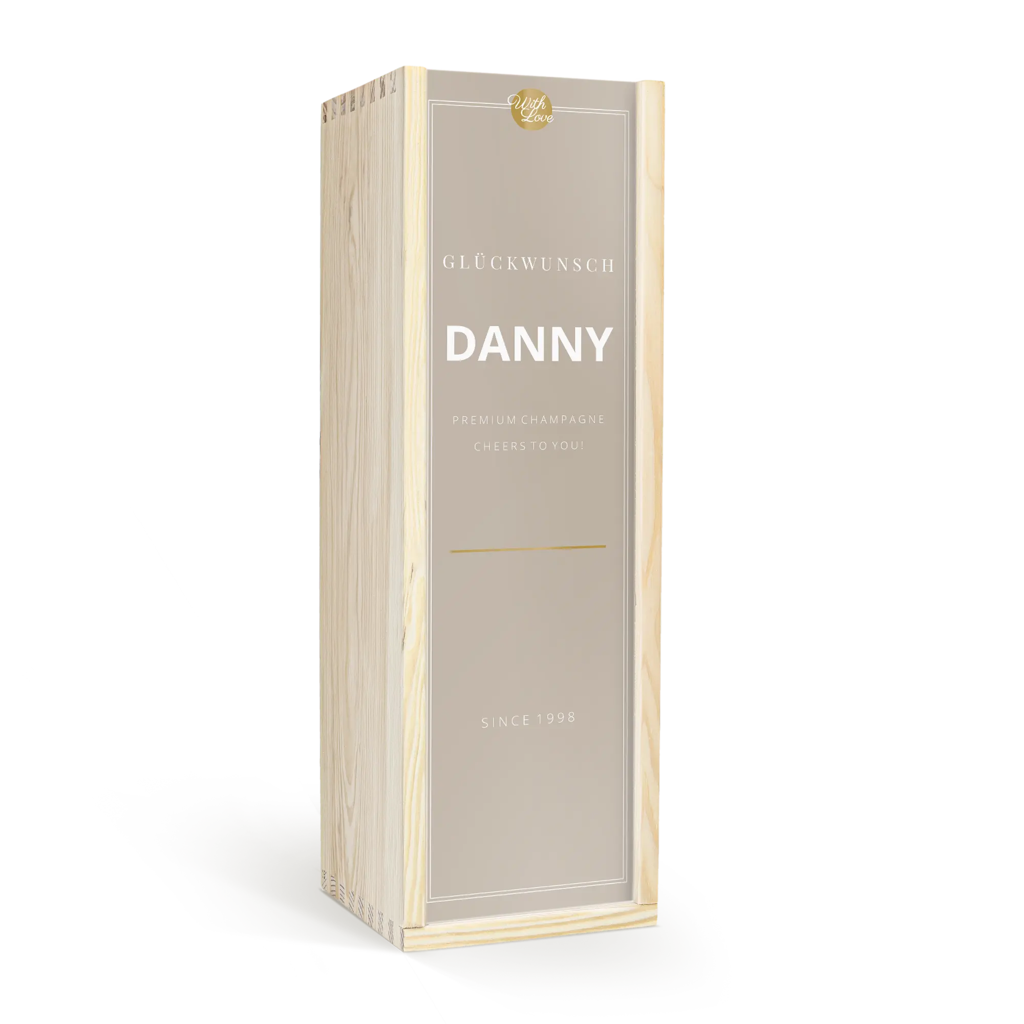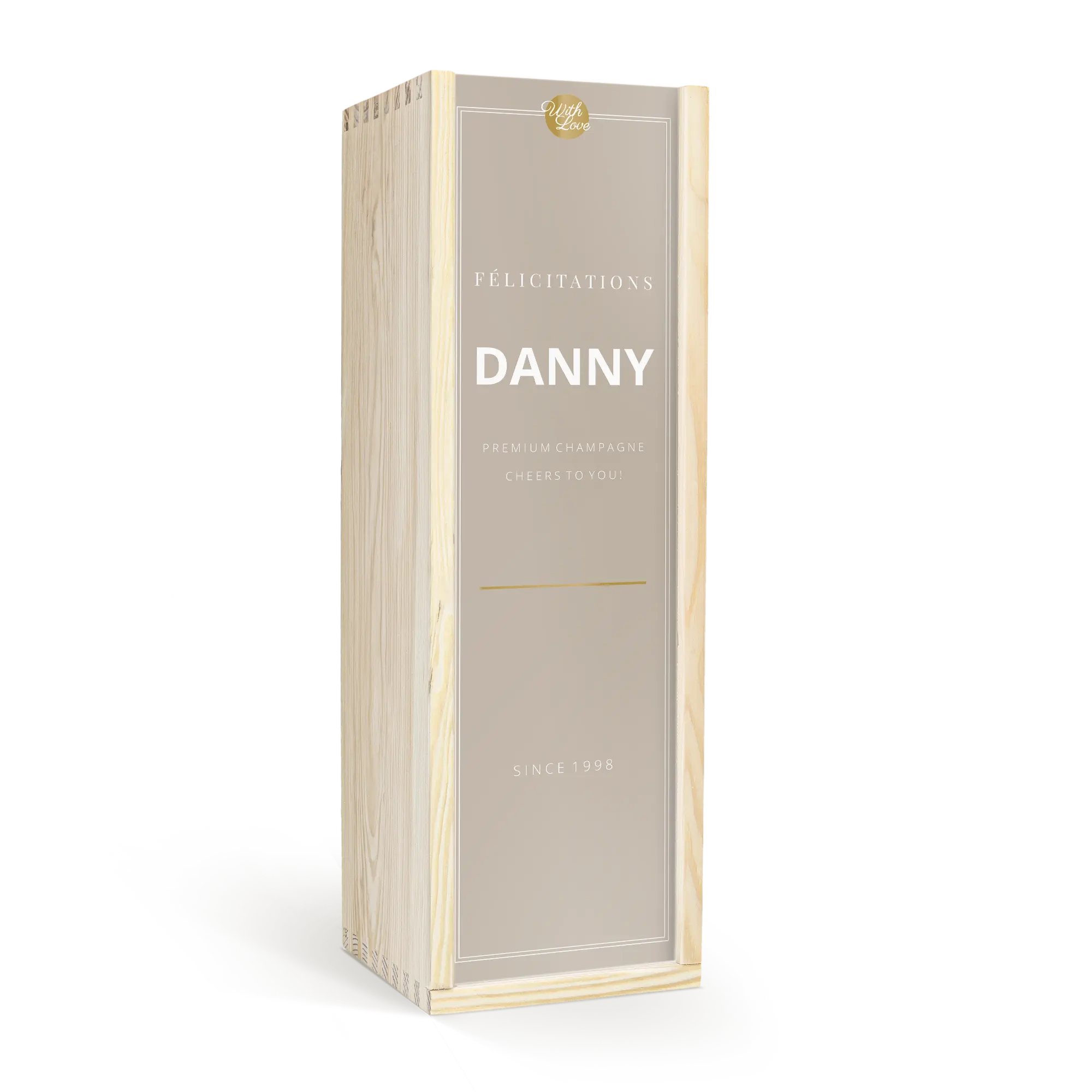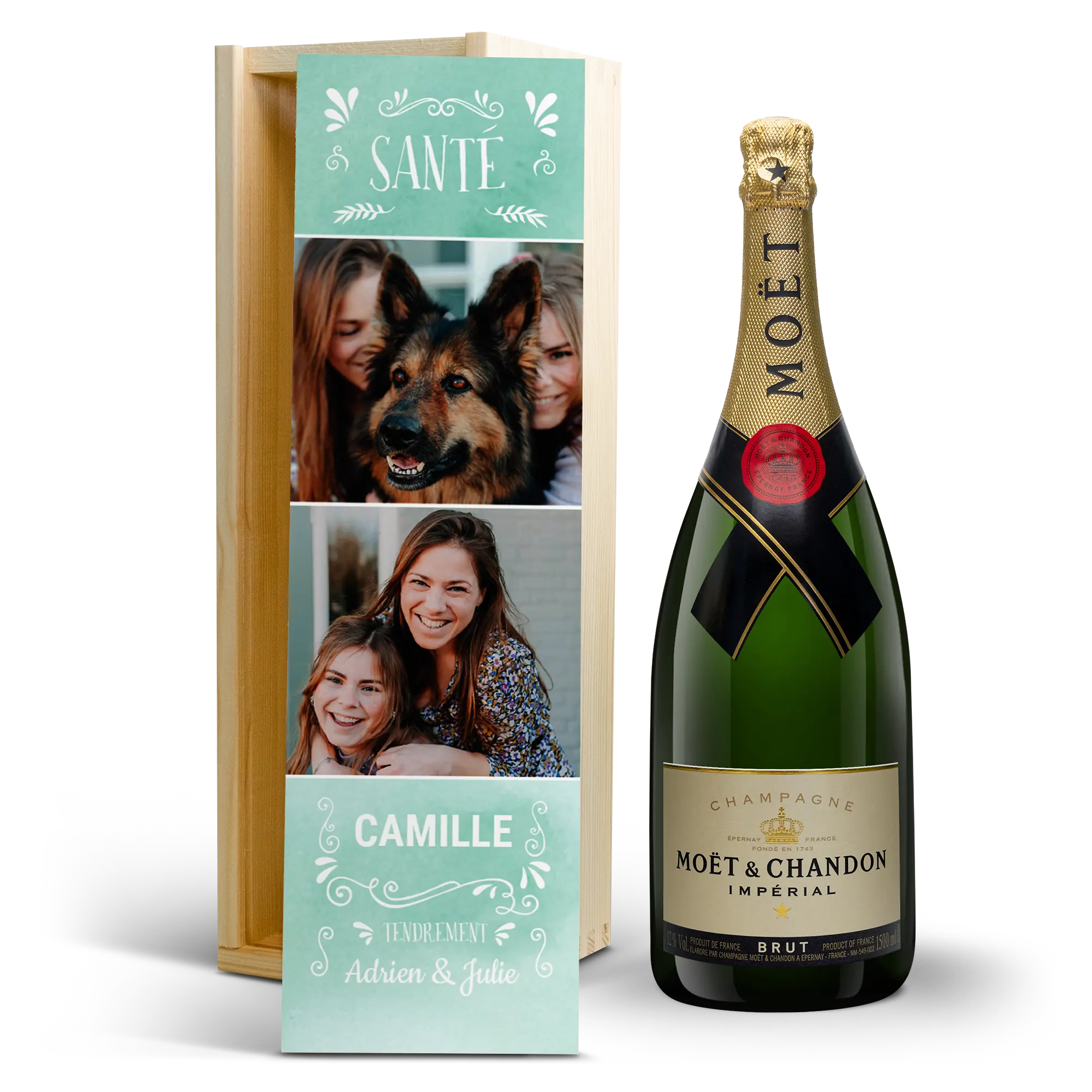 Kişiselleştirilmiş bir ahşap kutuda, adınız veya metninizle birlikte sunulan lezzetli bir Moët & Chandon şampanyası. Farklı şişe boyutları mevcut!