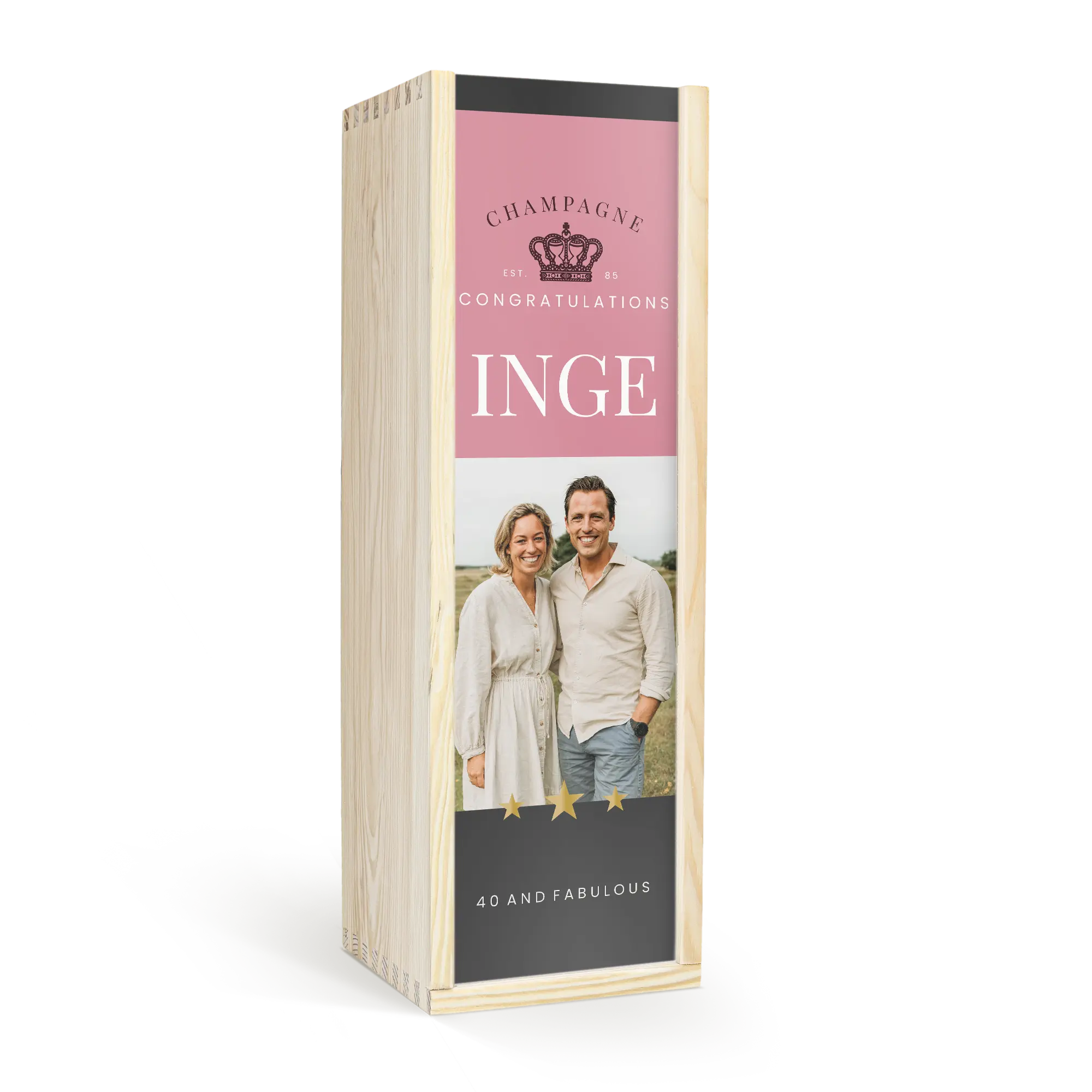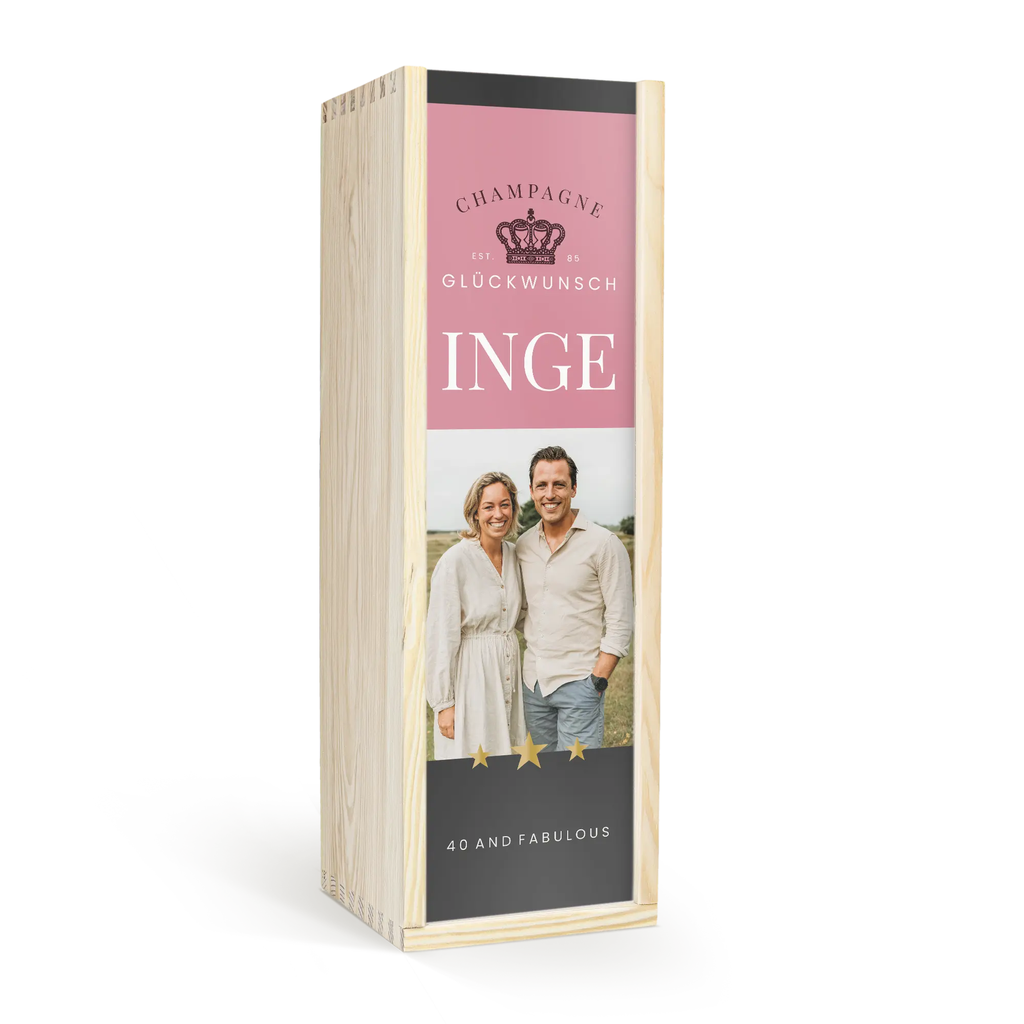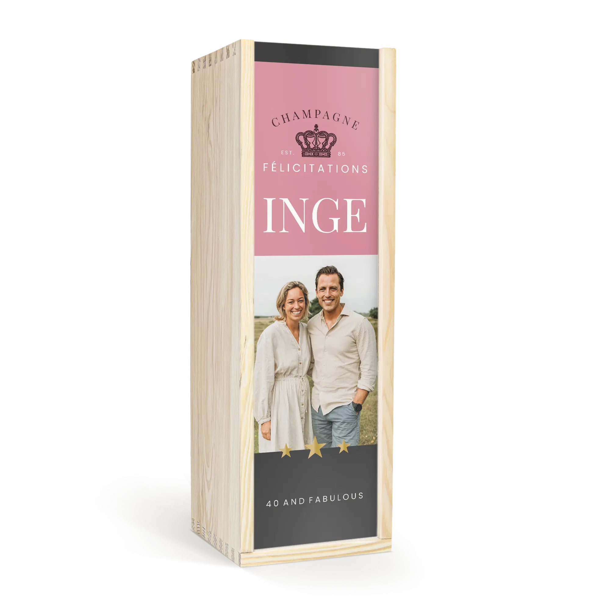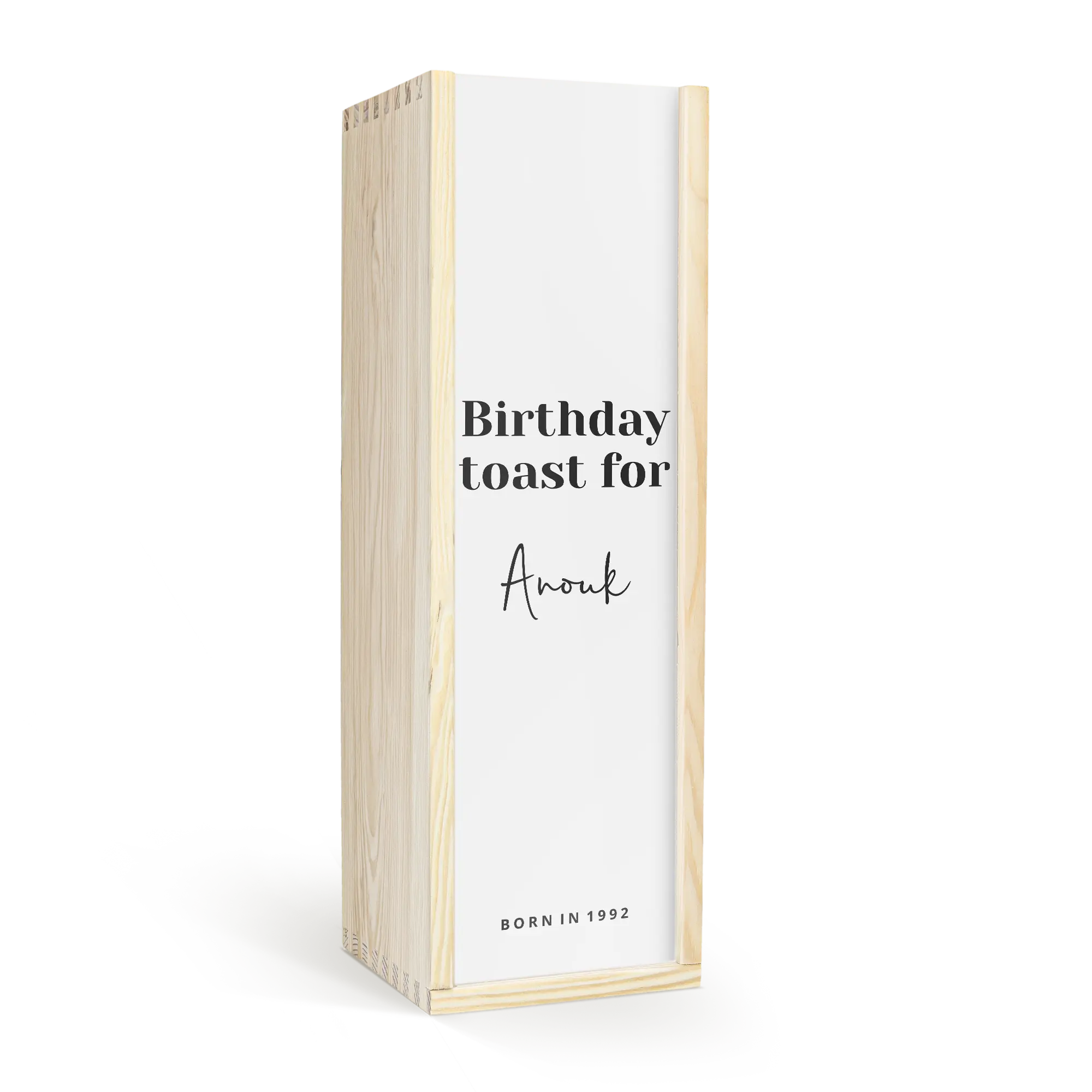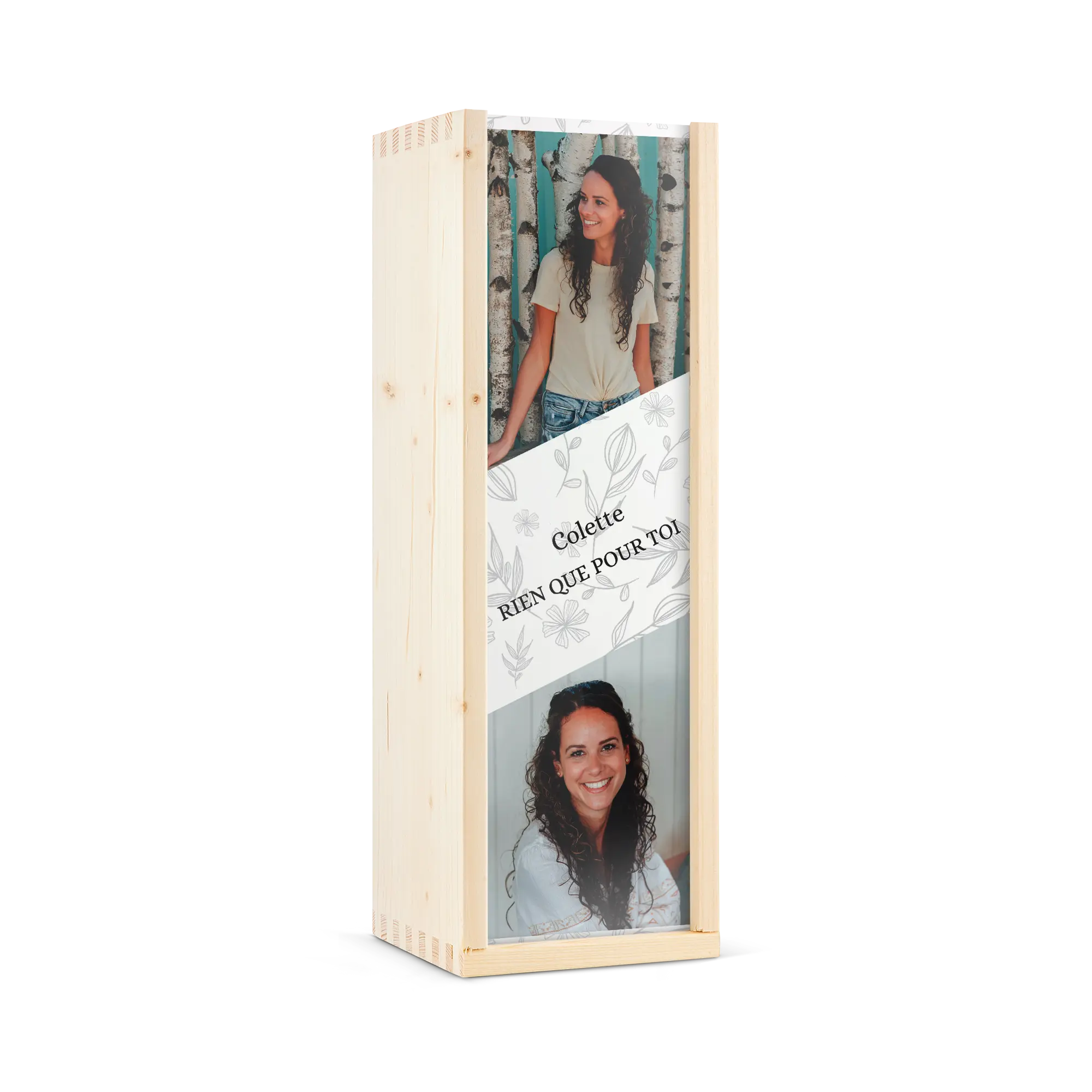 Kişiselleştirilmiş bir ahşap kutuda, adınız veya metninizle birlikte sunulan lezzetli bir Moët & Chandon şampanyası. Farklı şişe boyutları mevcut!