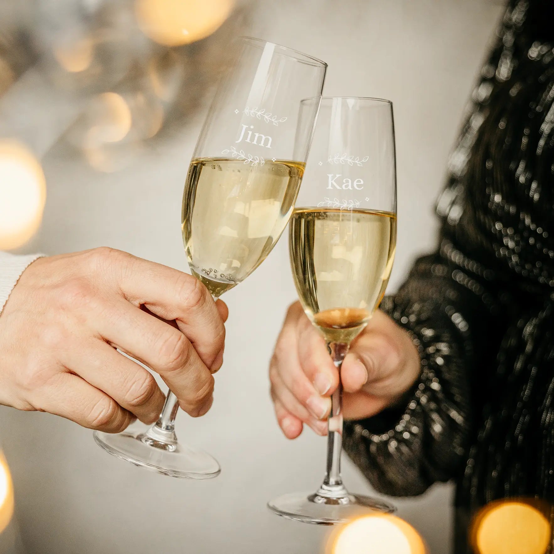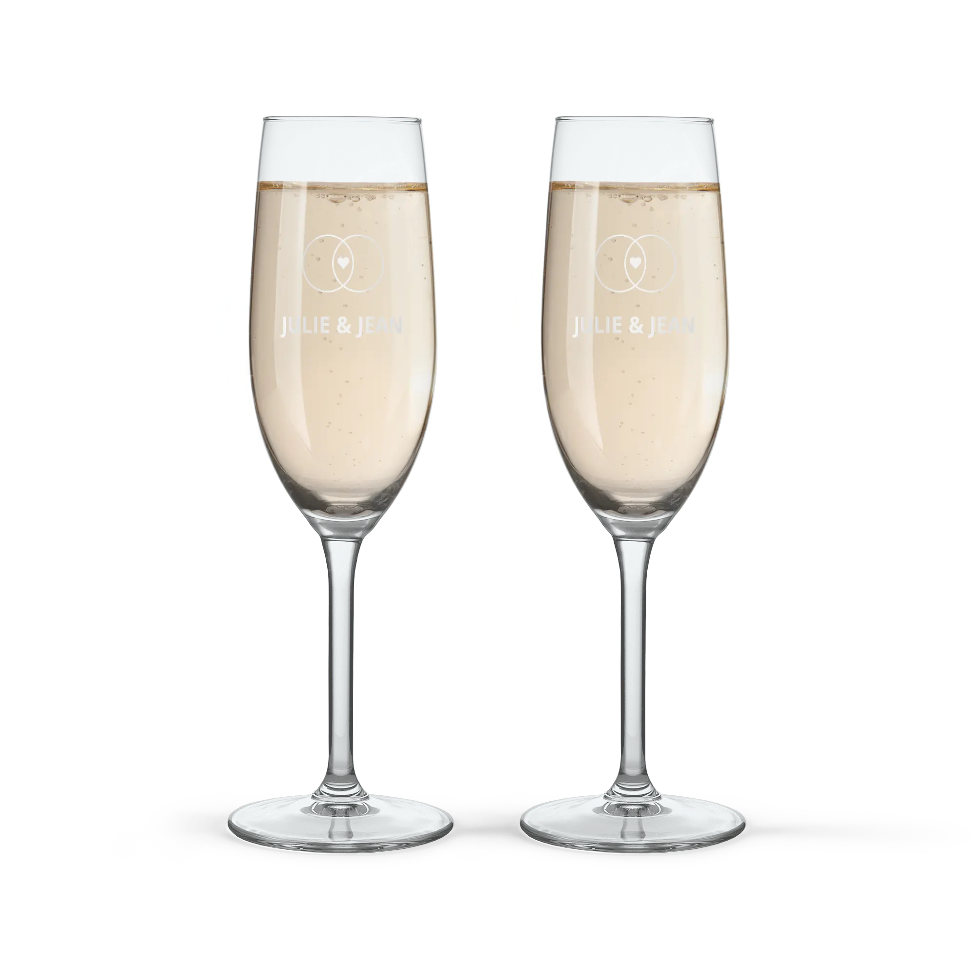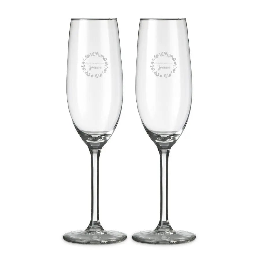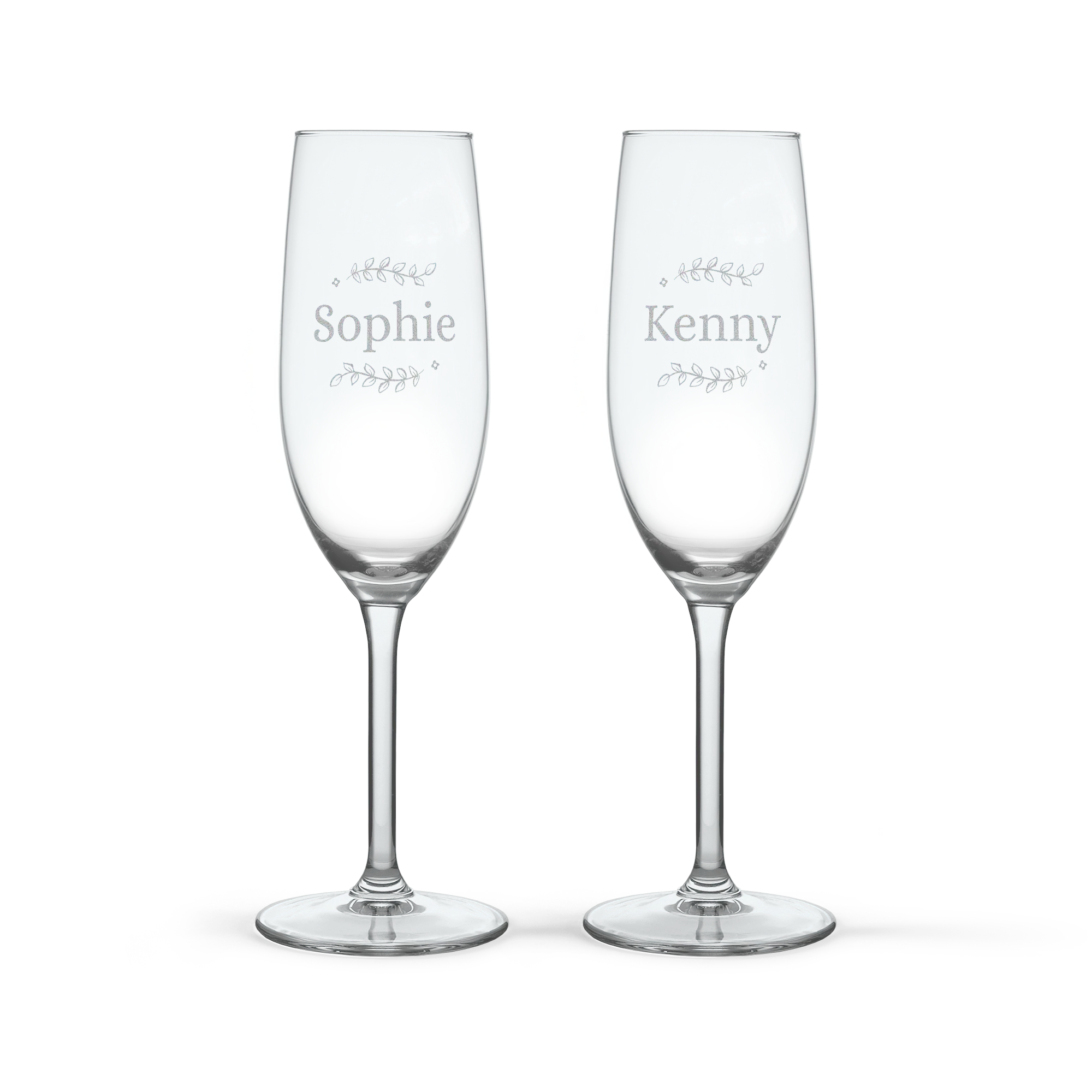 Kendi metniniz veya adınızla gravürlü güzel şampanya kadehleri.