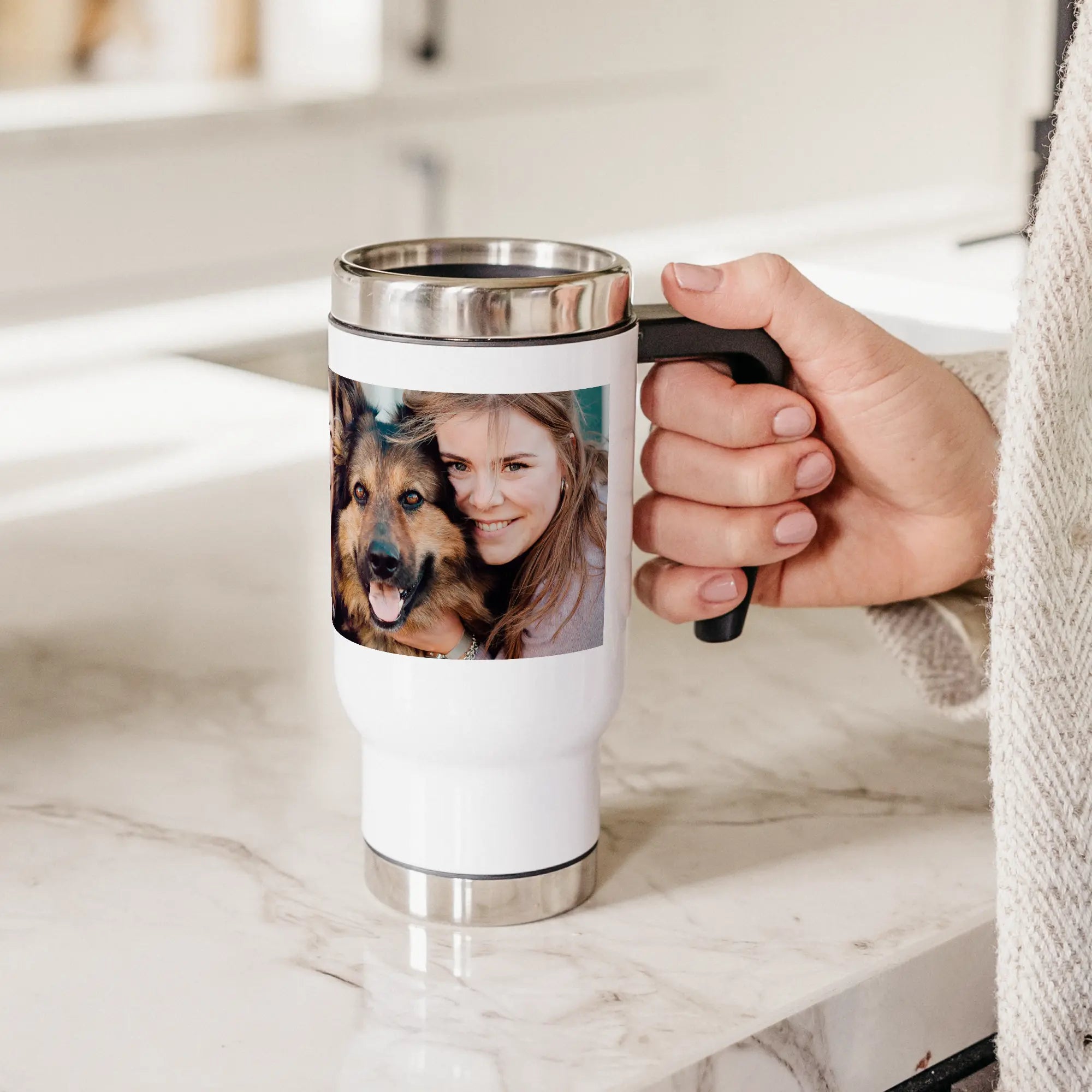 Bir termos kupa pratik bir hediye yapar. Kendi fotoğrafınızı ve metninizi termos kupaya bastırın ve harika bir hediye elde edin!