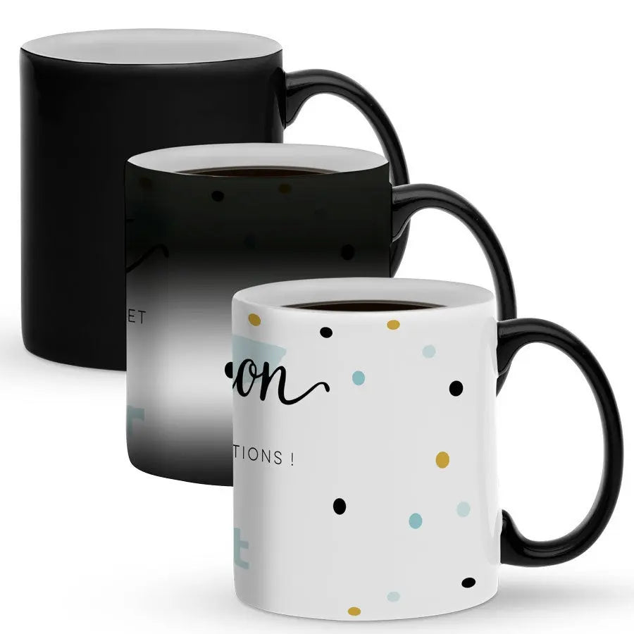 Sihirli kupa hakkında daha fazla bilgi: Malzeme: seramik Yükseklik: 9,5 cm / 3.7" Çap: 8,2 cm / 3.2" Kapasite: 325 ml Lütfen dikkat: Kupa teslim edildiğinde tamamen siyah olacaktır. Tasarımınız, kupayı sıcak bir içecek ile doldurduktan sonra görünür hale gelecektir. Görüntü her zaman sihirli katmanın üzerinden hafifçe görünür olacak ve bulaşık makinesinde yıkanamaz, mikrodalgaya uygun değildir!