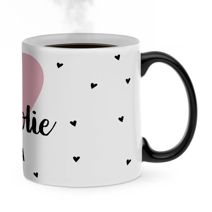 Sizin adınız veya favori metninizle kişiselleştirilmiş sihirli bir kupa. Eşsiz: Kupa sıcak bir içecek ile doldurulduğunda görüntü ortaya çıkıyor! Harika bir hediye!