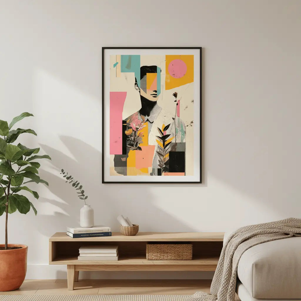 Cesur şekilleri ve modern ritmi harmanlayan renkli, geometrik bir portre. Taze ve canlı bir hediye seçimi.