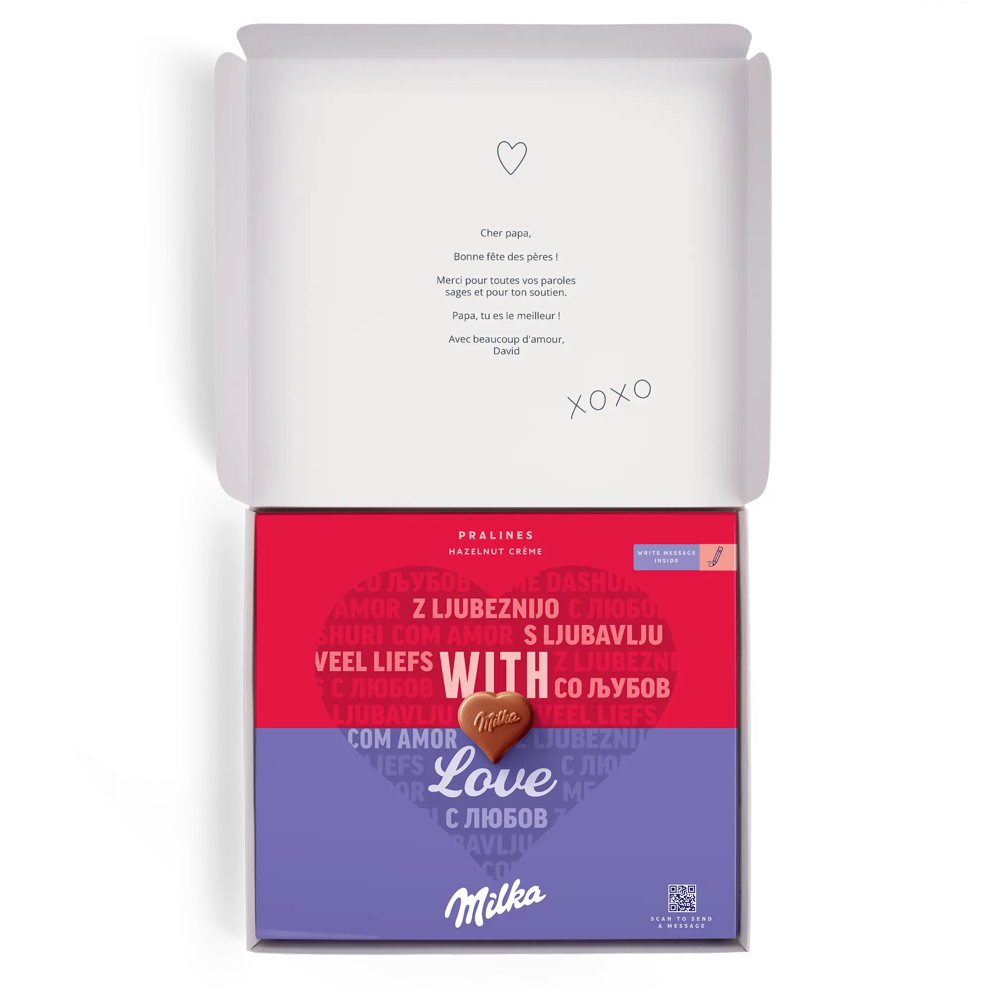 Babanızı bu özel Milka hediye kutusuyla şaşırtın! Lezzetli kalp şeklindeki çikolatalar. Eğlenceli Babalar Günü tasarımları!