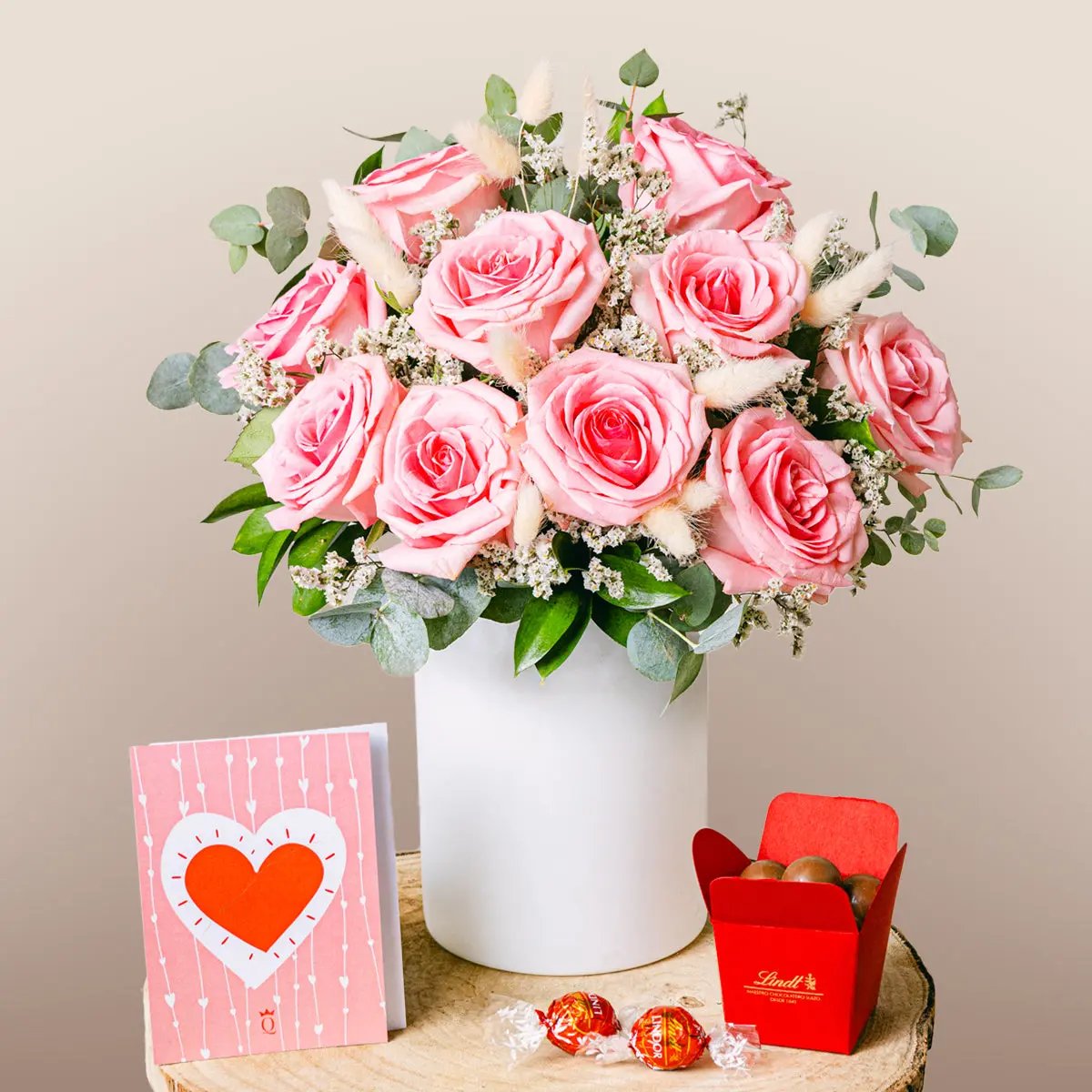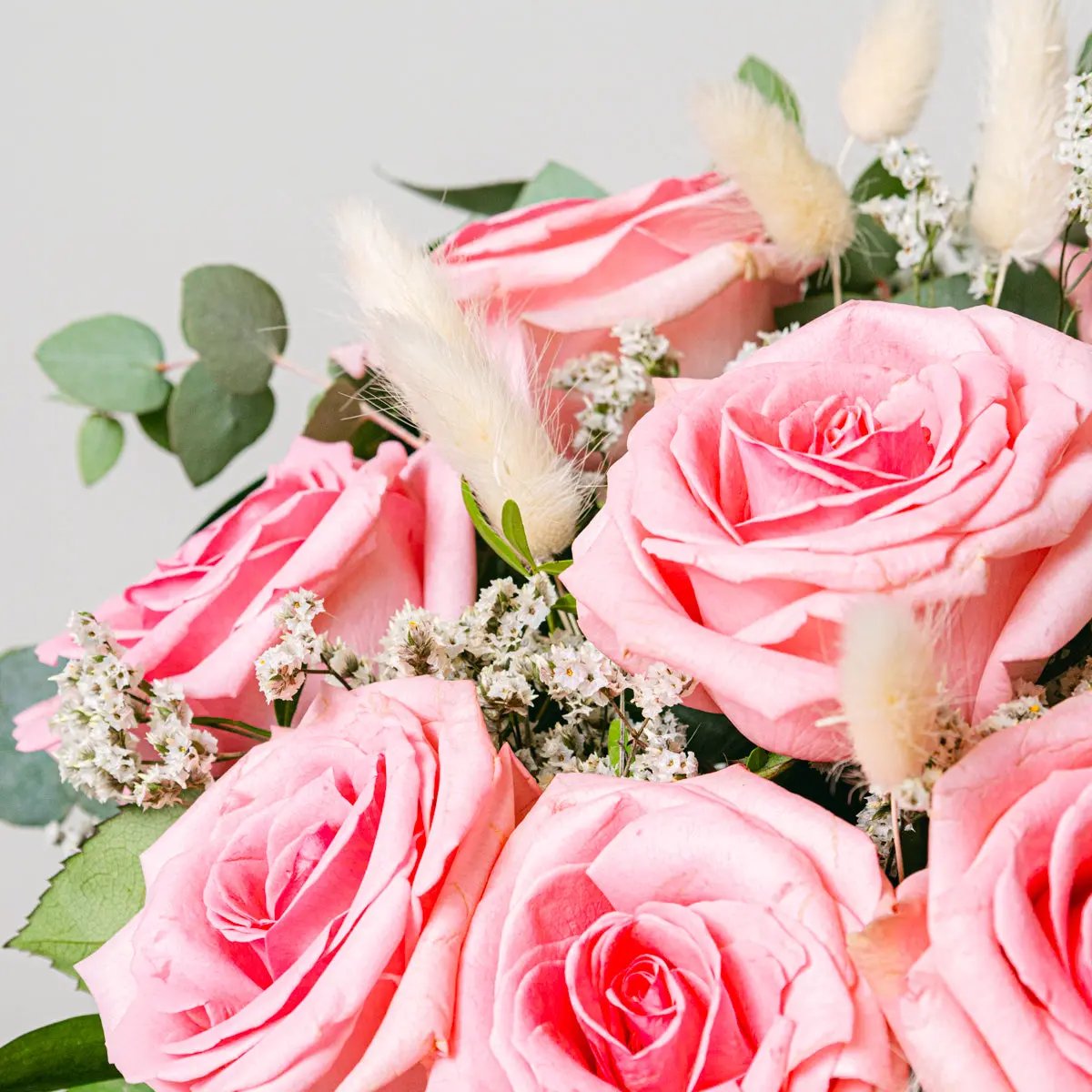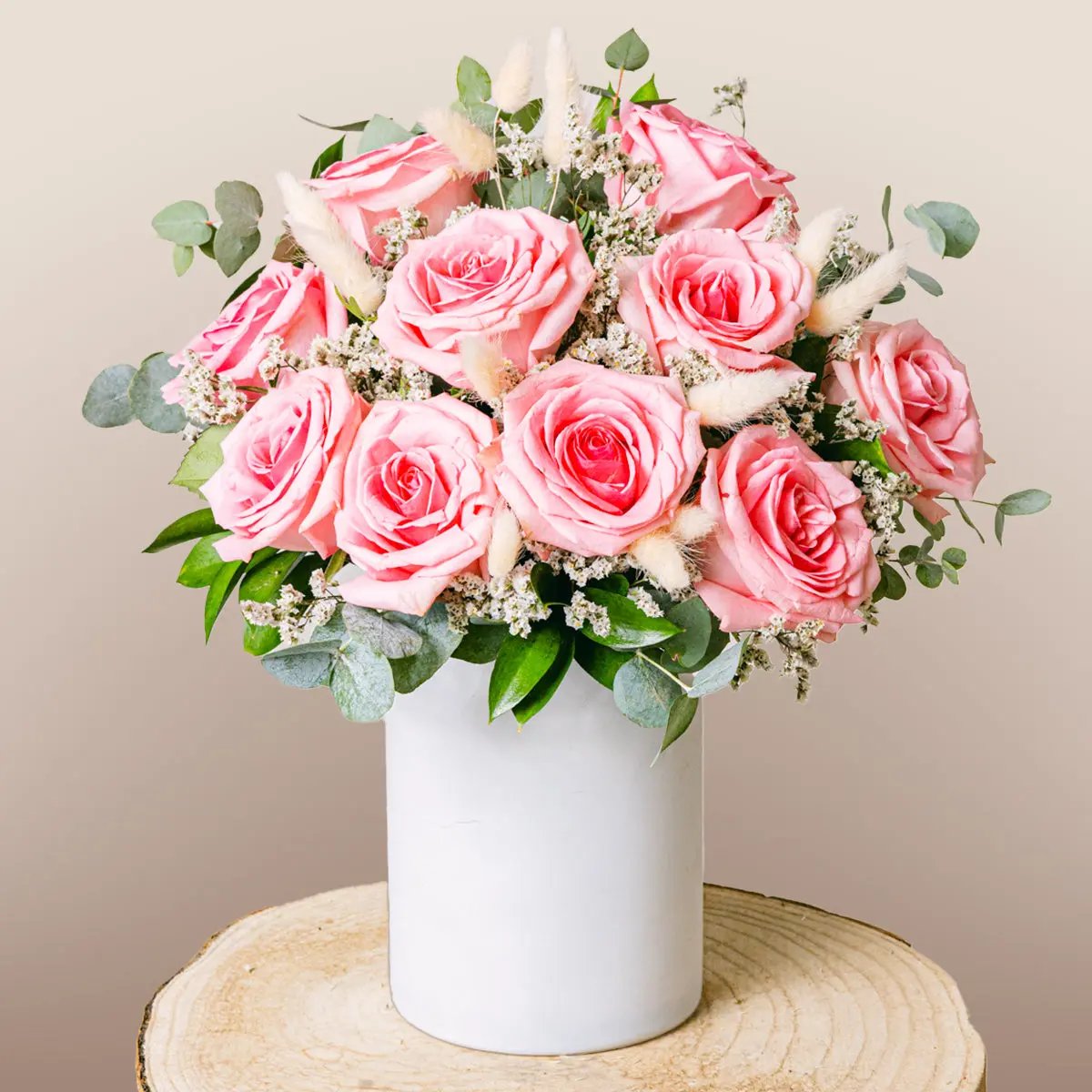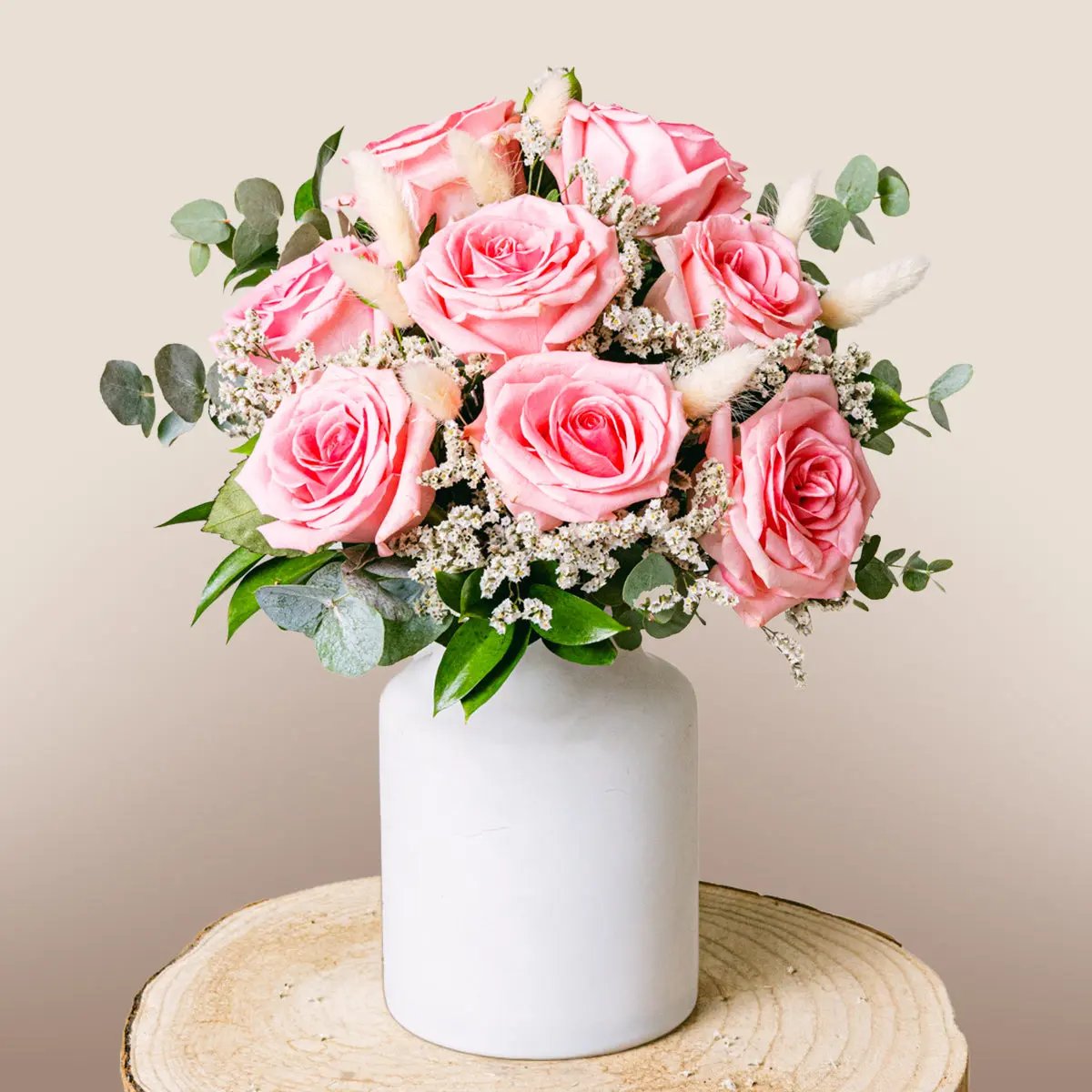 Klasik bir seçim olan soluk pembe güllerle asla yanılmayacaksınız. Özellikle onları limonyum ve beyaz lagurus gibi karşı konulmaz detaylarla birleştirdiğinizde. Sadelik, tüm zarafetin anahtarıdır, bu hiç bu kadar doğru olmamıştı.