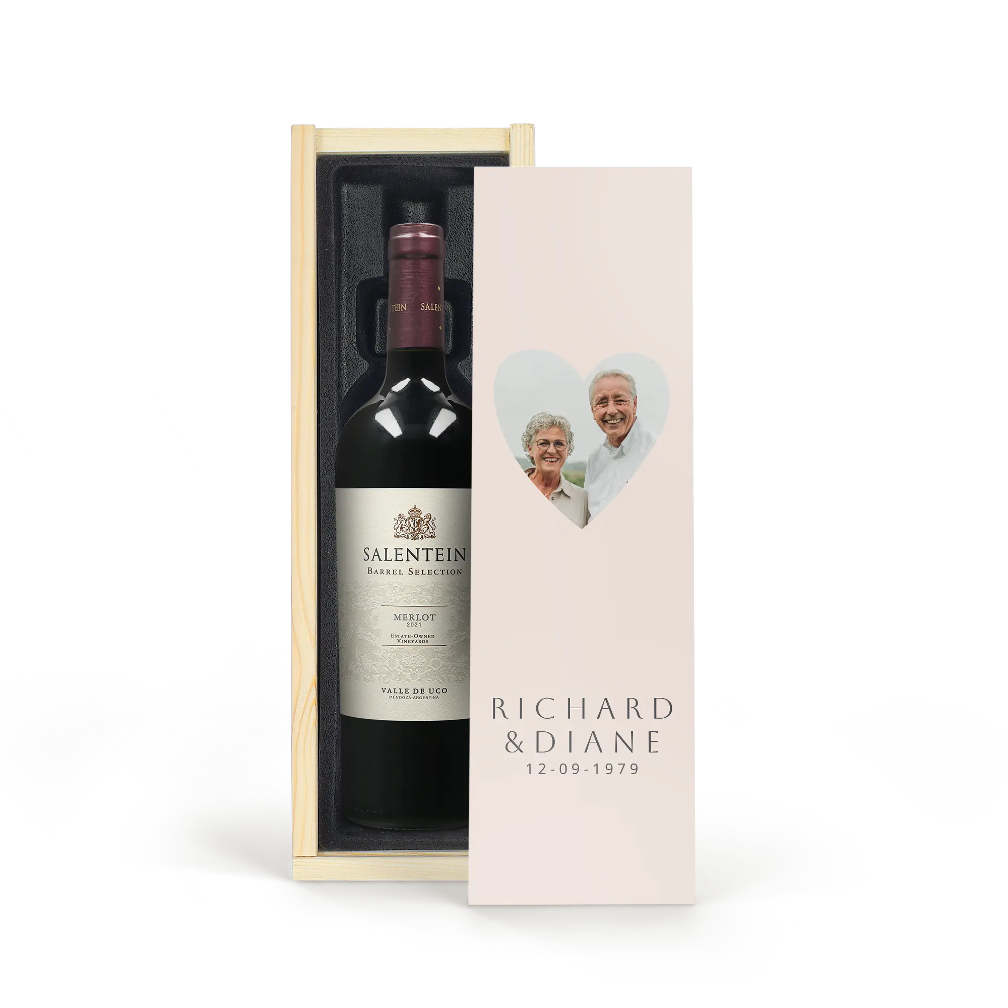 Kişiselleştirme hakkında daha fazla bilgi: Kişiselleştirme: kapakta Baskı: HD fotoğraf kalitesinde tam renkliKutu boyutları: 36,5 x 12 x 11 cmKapağın boyutları: 36,5 x 10,2 x 0,3 cm Ekstra: ahşap kutu FSC sertifikalıBu şarap hakkında daha fazla bilgi:İsim: Salentein MerlotMenşei: ArjantinŞarap türü: KırmızıÜzüm: MerlotÖzellikler: Tatlı yaban mersini aromaları, otlar, nane ve sedir ağacı ipuçlarıyla. Bu şarap güçlü, meyvemsi, yapılı ve mükemmel bir dengeye sahip.Bizden bir ipucu: Bu şarap, kırmızı et, kuzu, pate ve çeşitli peynirlerle harika bir uyum sağlar.