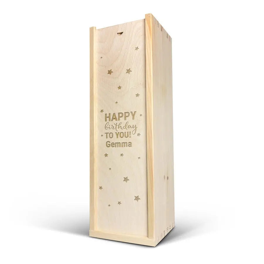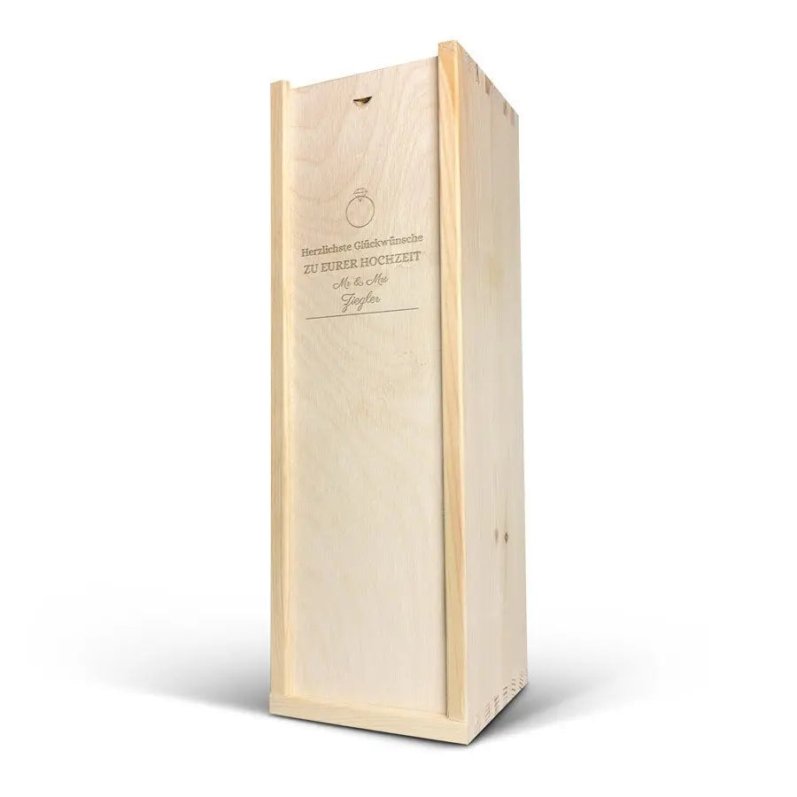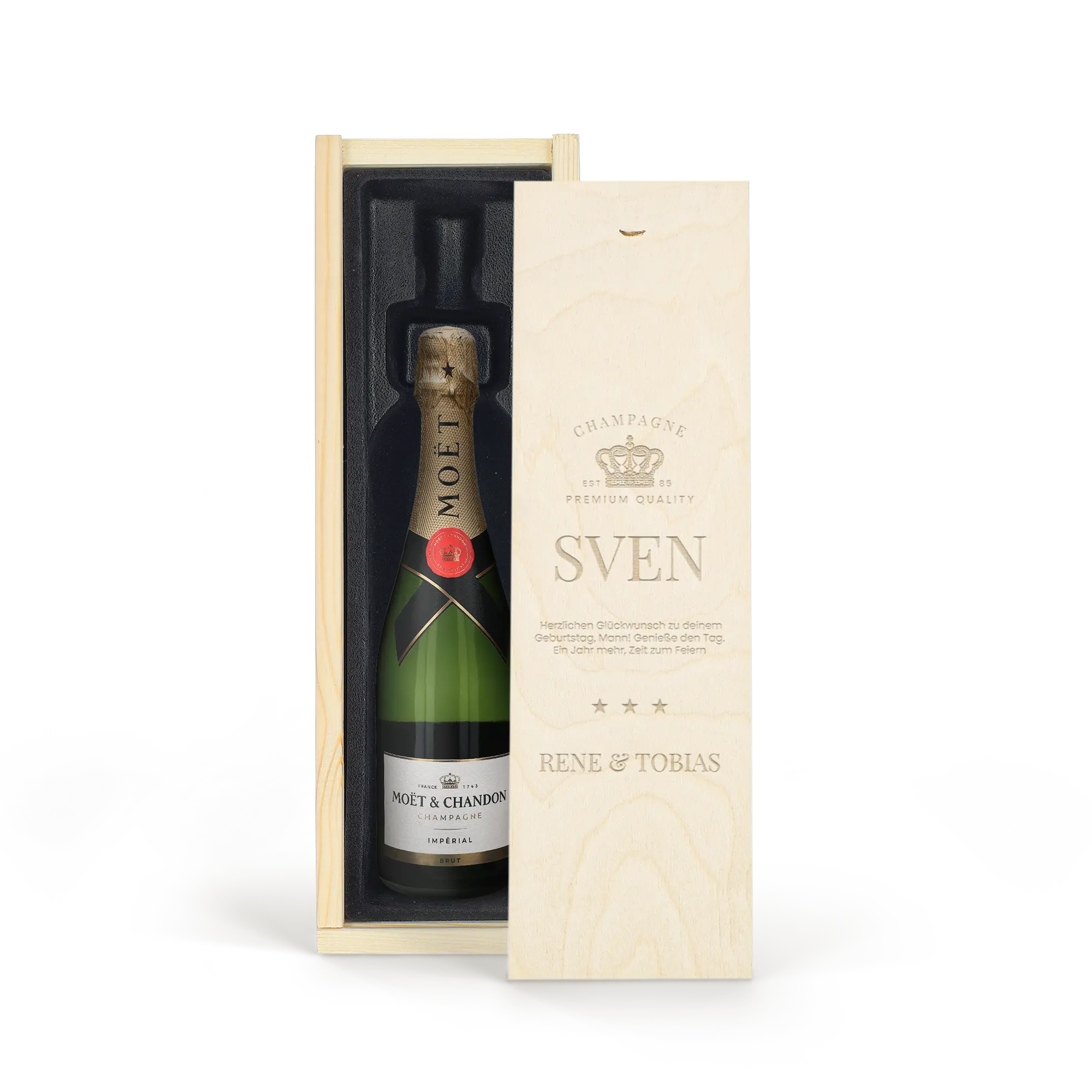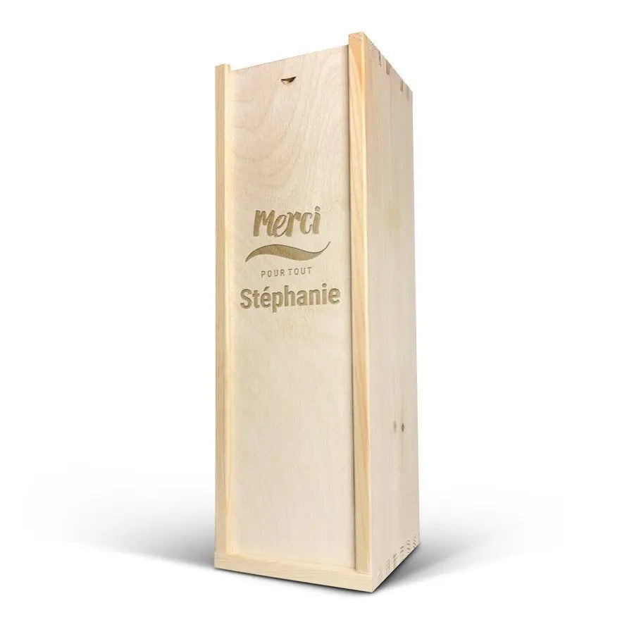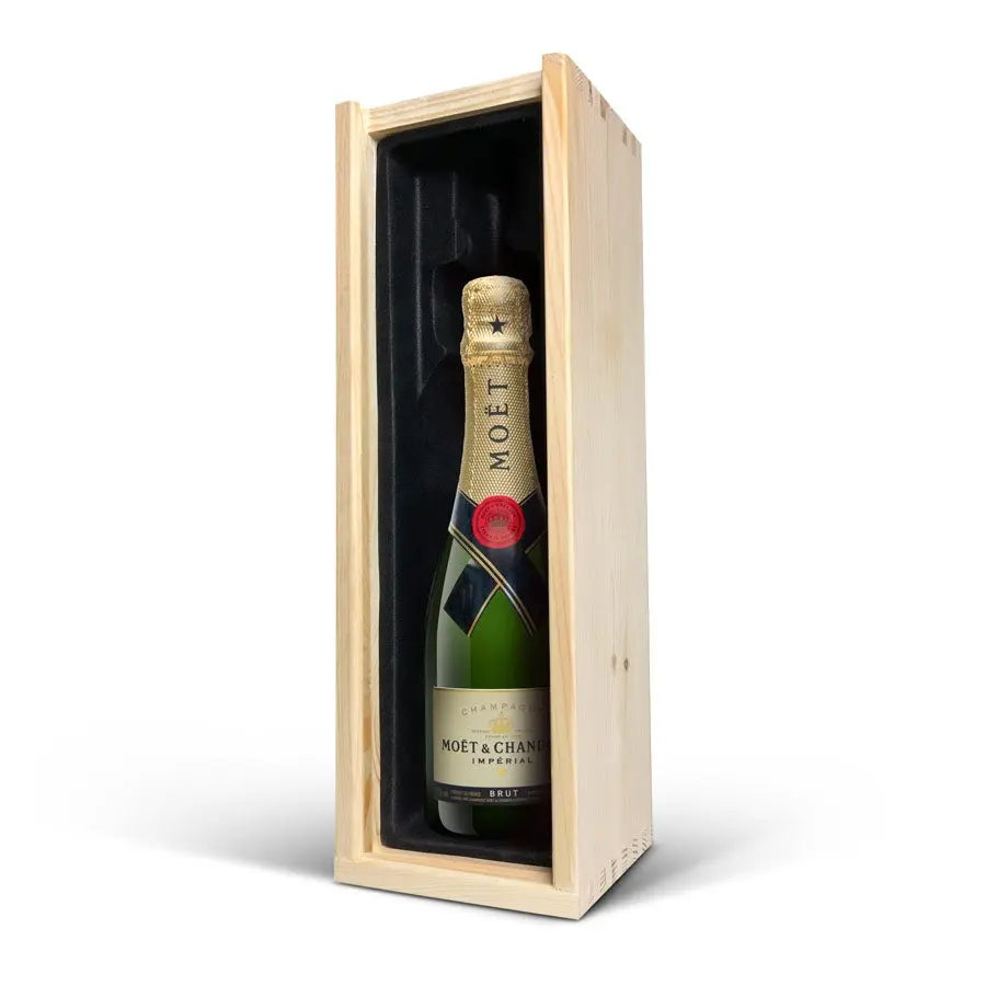 Kişisel adınız veya metninizle birlikte, özel bir ahşap kutuda sunulan lezzetli bir Moët & Chandon şampanyası.