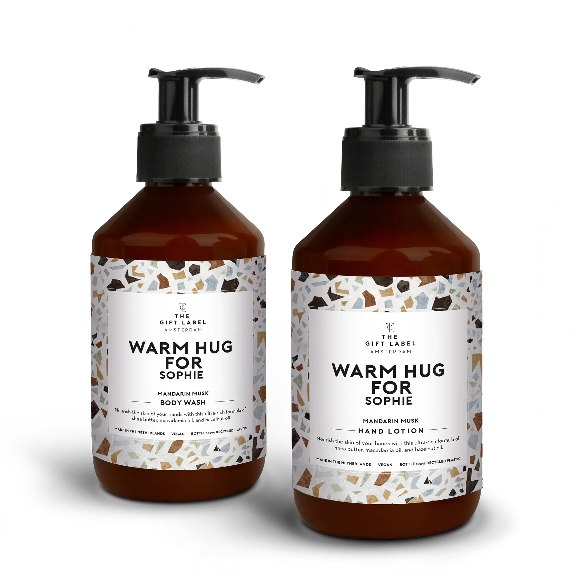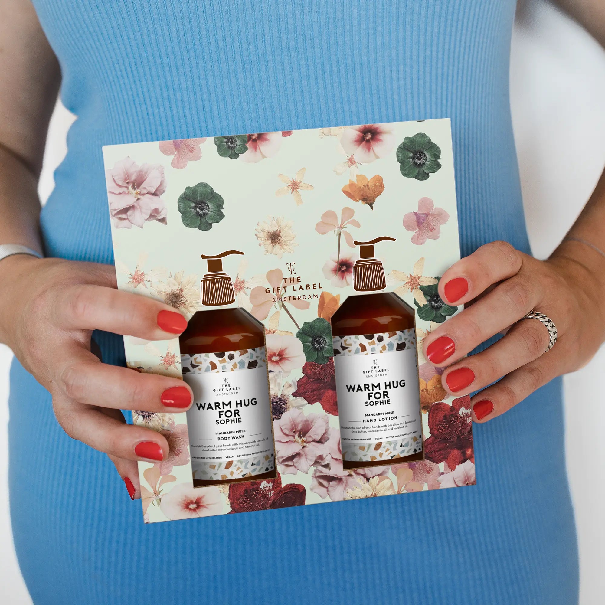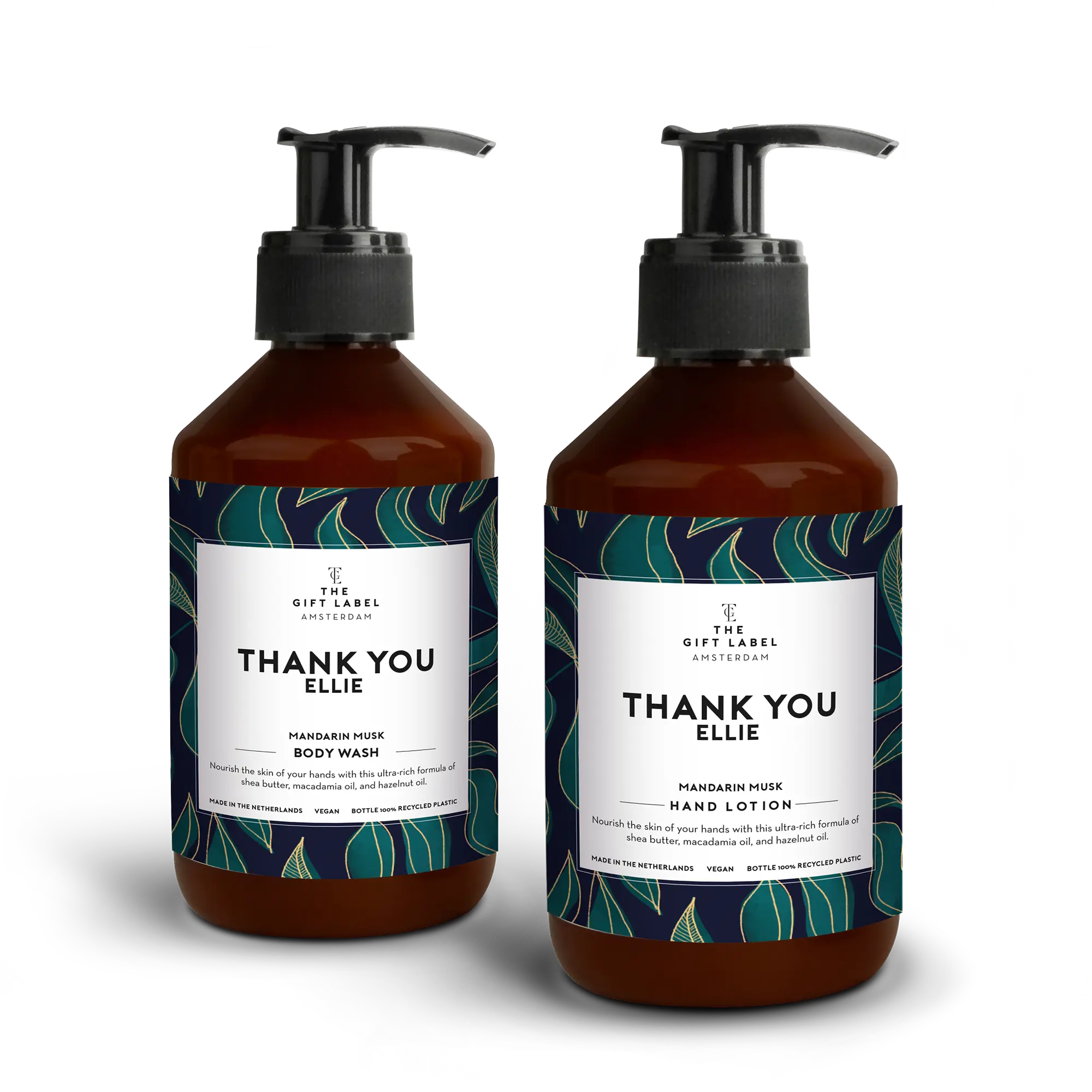 Hediye seti hakkında daha fazla bilgi: Hediye seti içeriği: Duş jeli (250 ml) ve el sabunu (250 ml) Koku: Mandalina Misk Baskı: Tam baskılı etiketler, mükemmel fotoğraf ve tam renkli Kişiselleştirme: metin ve kişisel mesaj Ek bilgi: Şişeler sağlam bir hediye kutusunun içinde yer almaktadır. Teknik nedenlerden dolayı, Kiril, Asya, Arap, Yunan, Türk veya özel karakterlerin kullanılması mümkün değildir.