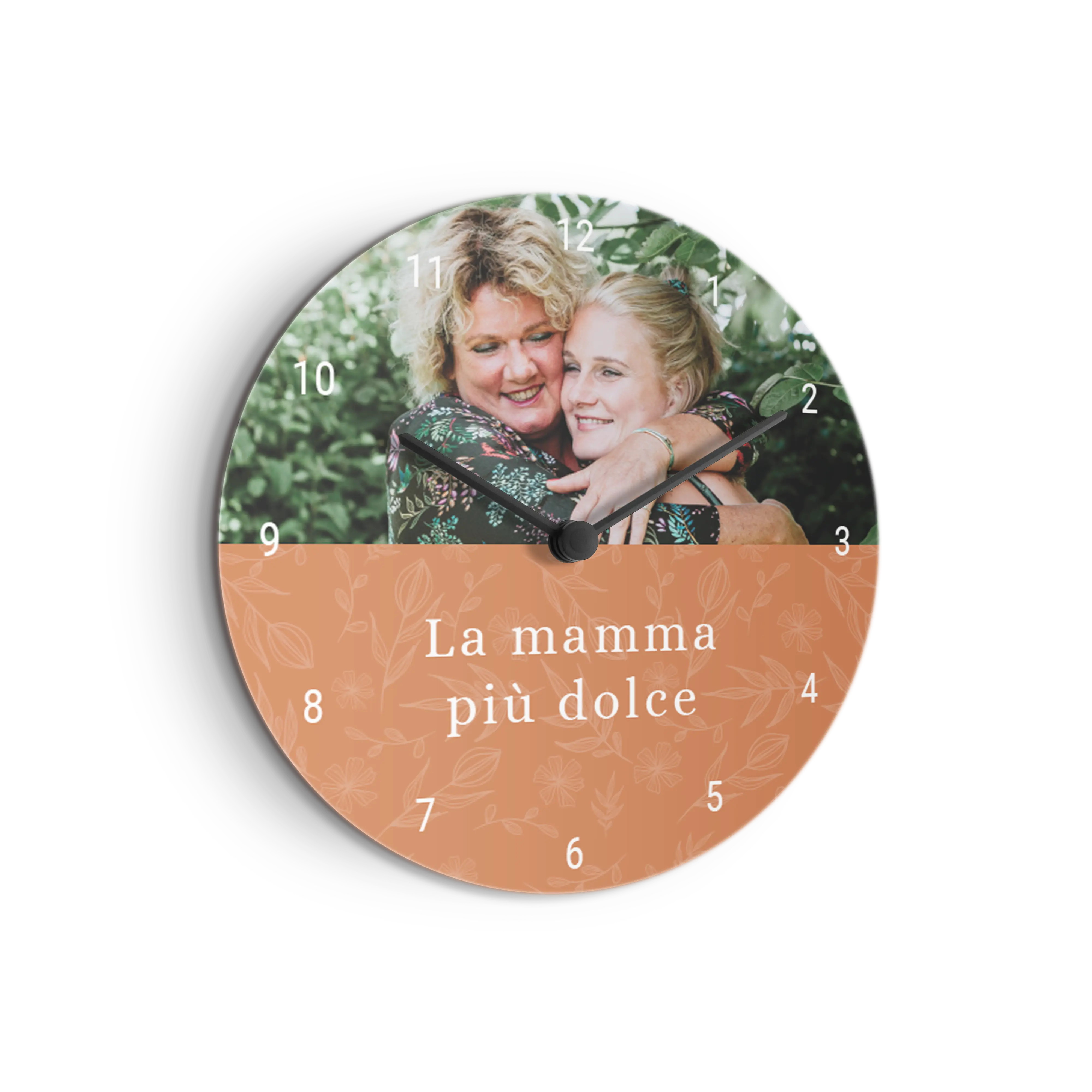 Kendi fotoğrafınız ve metninizle kişiselleştirilmiş küçük bir sert tahtadan saat! Çapı 20,5 cm / 8.1".